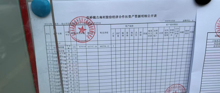 2026年古南村股份经济合作社3月定期财务公示
