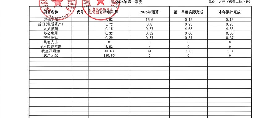 2026年周泾村股份经济合作社3月财务公示