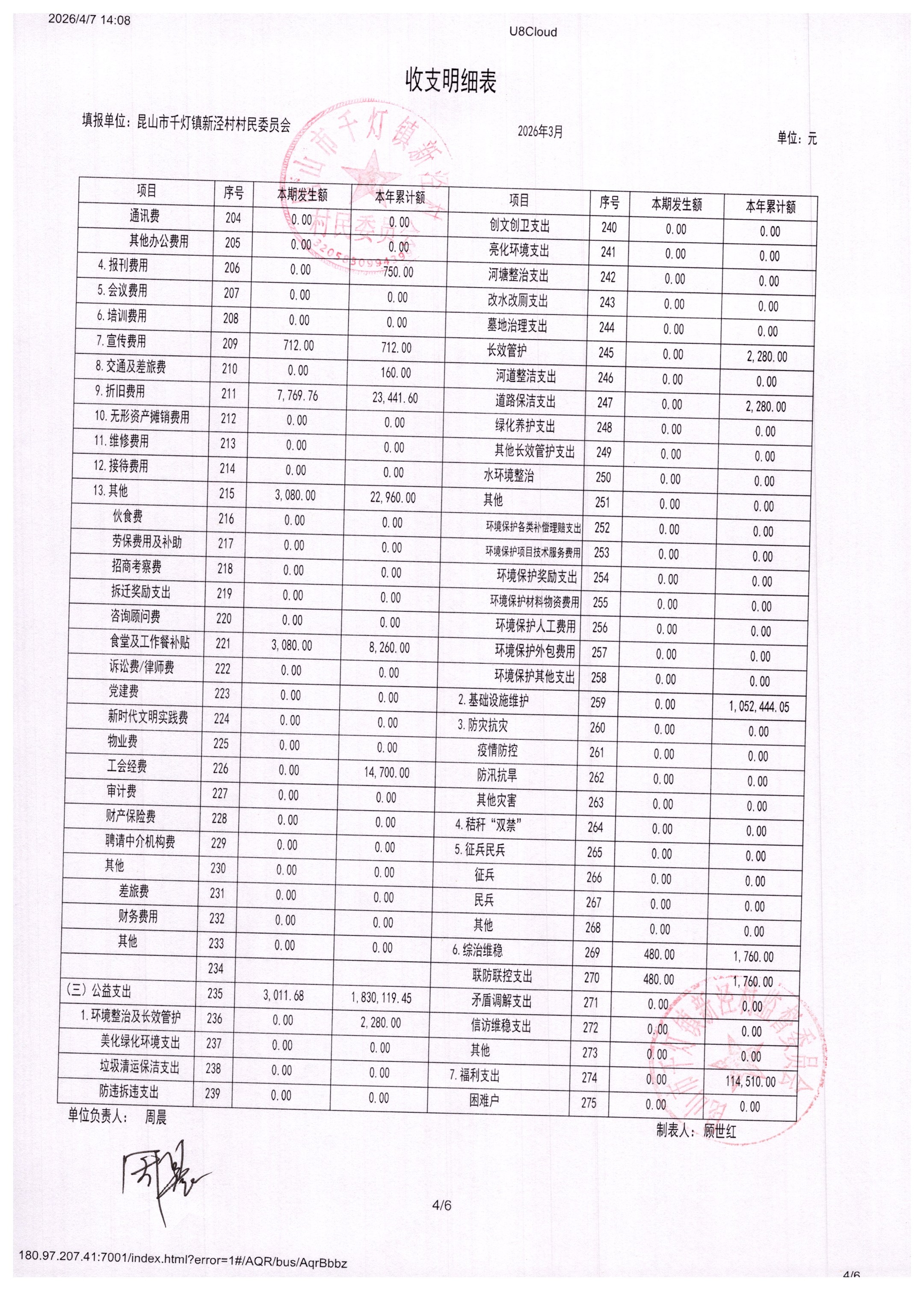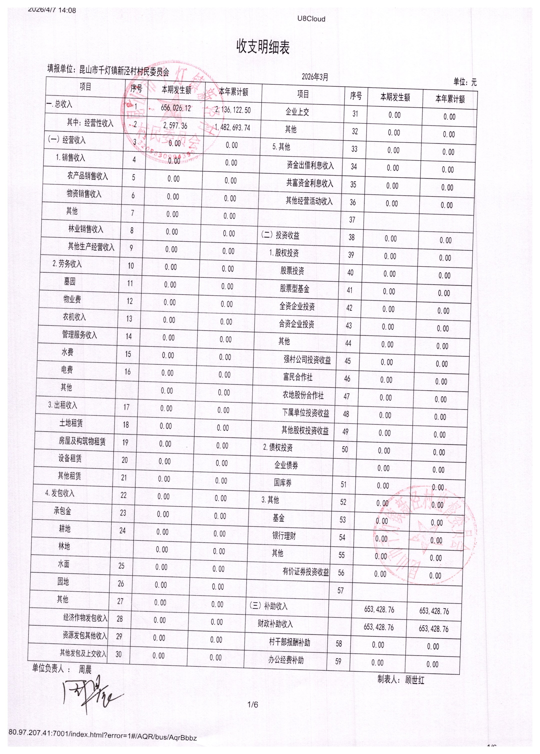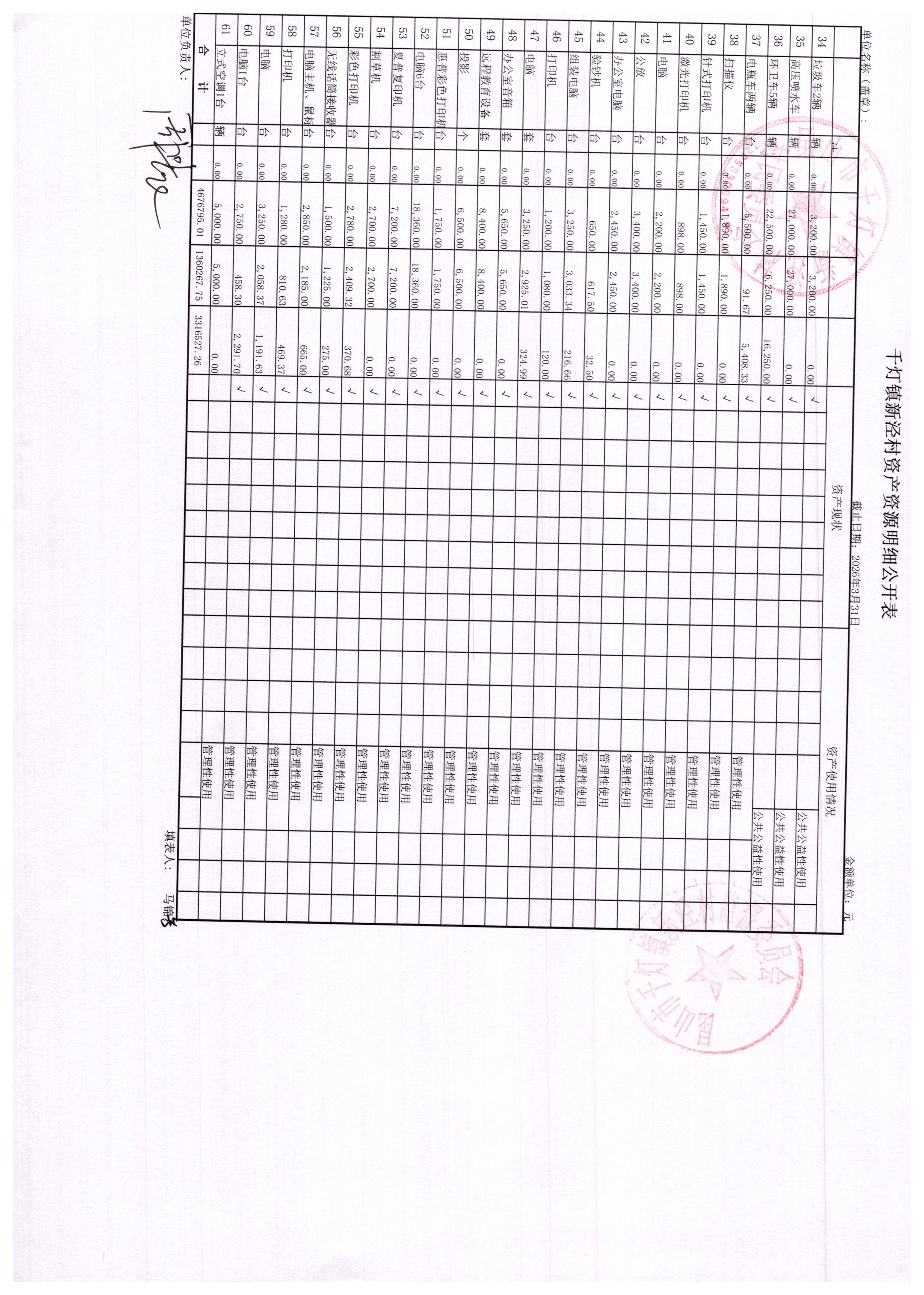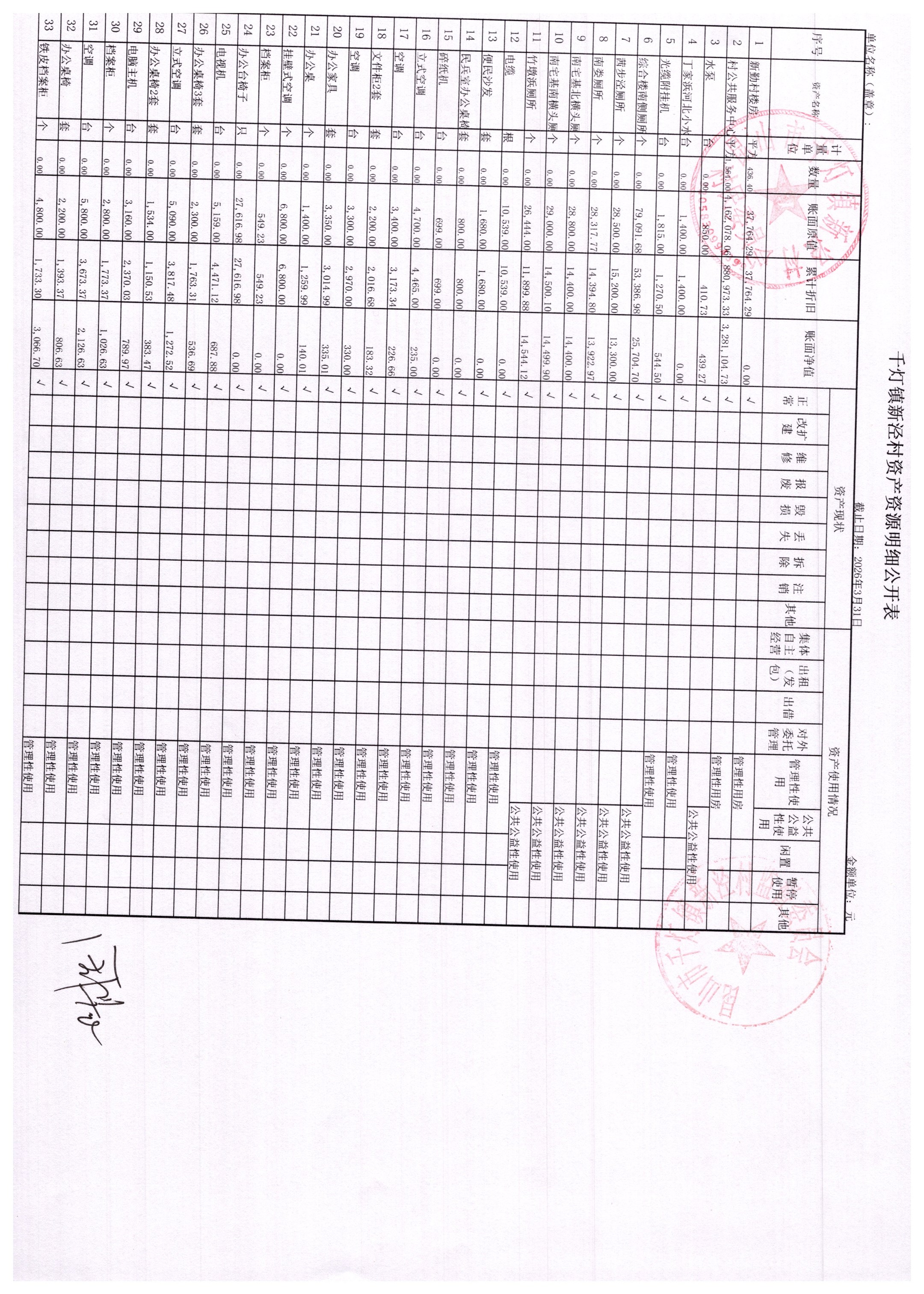 新泾村3月财务公开
