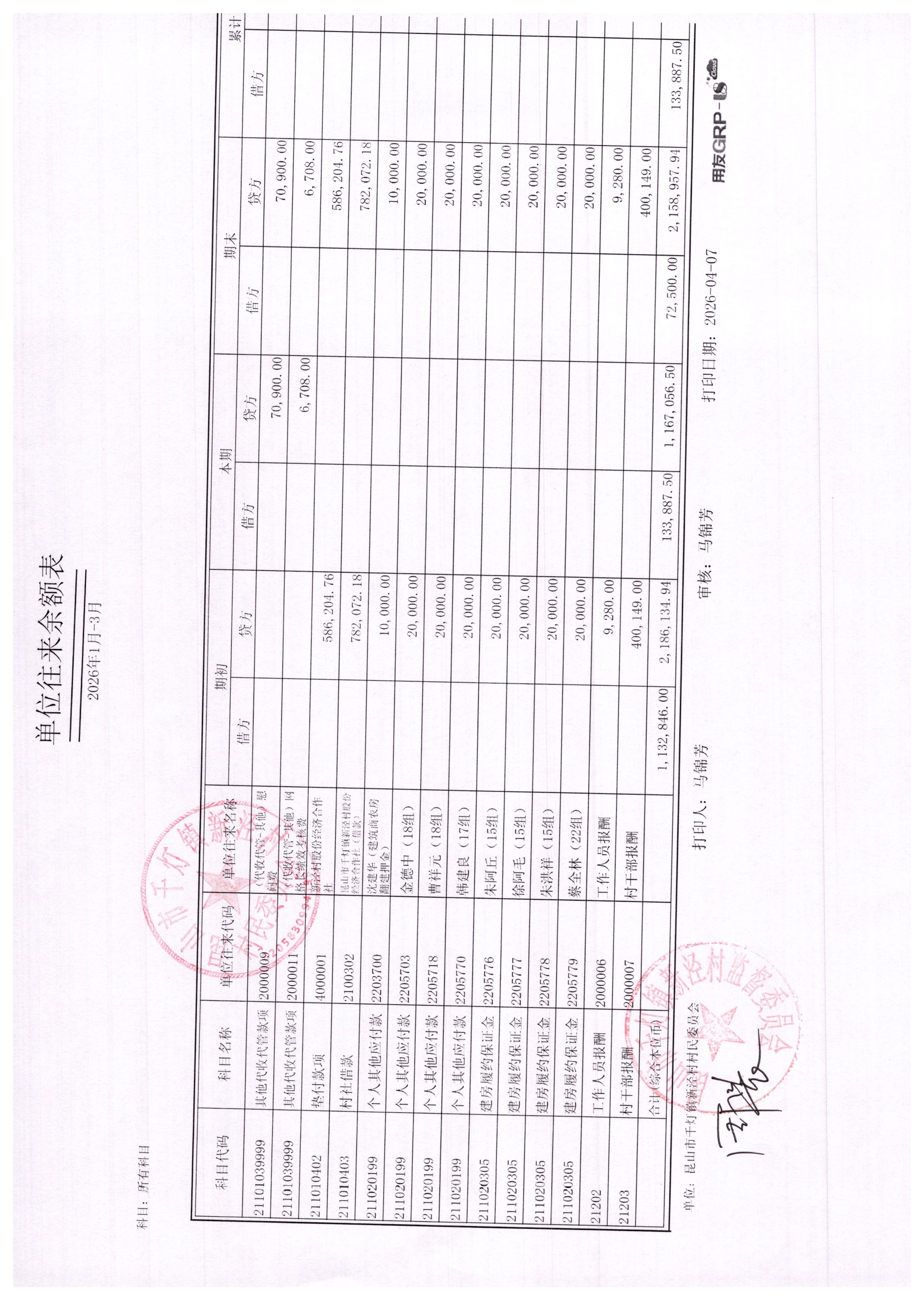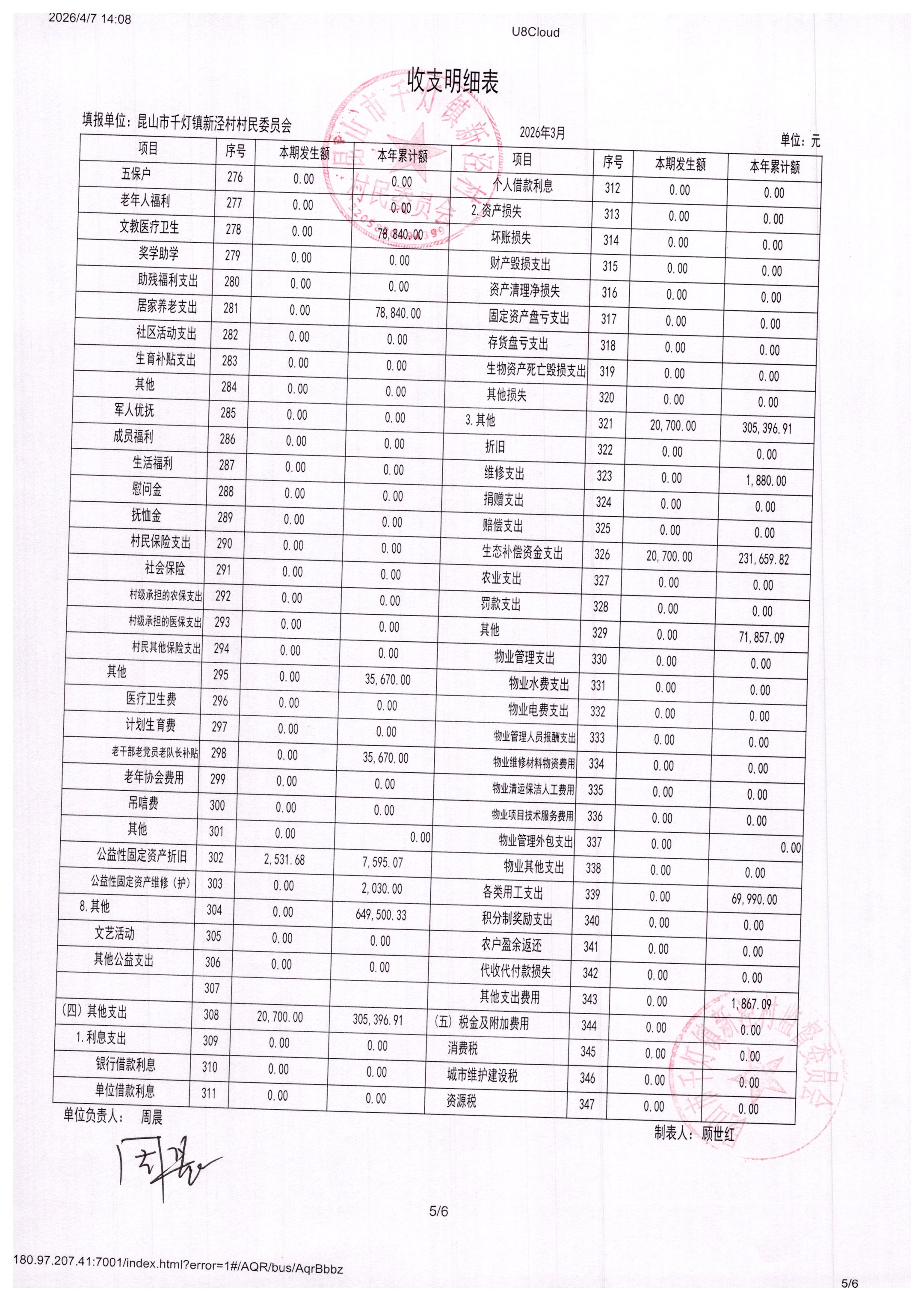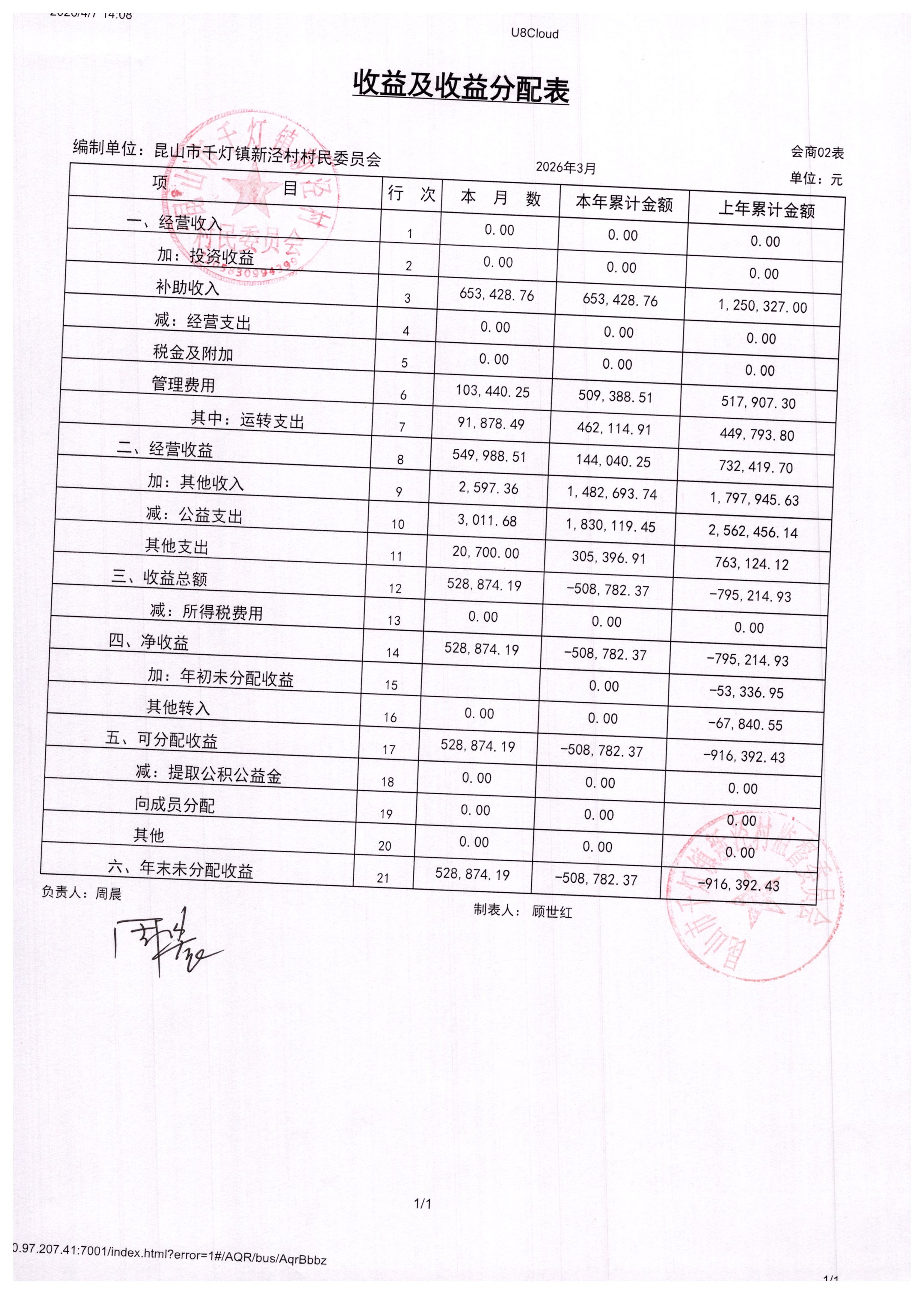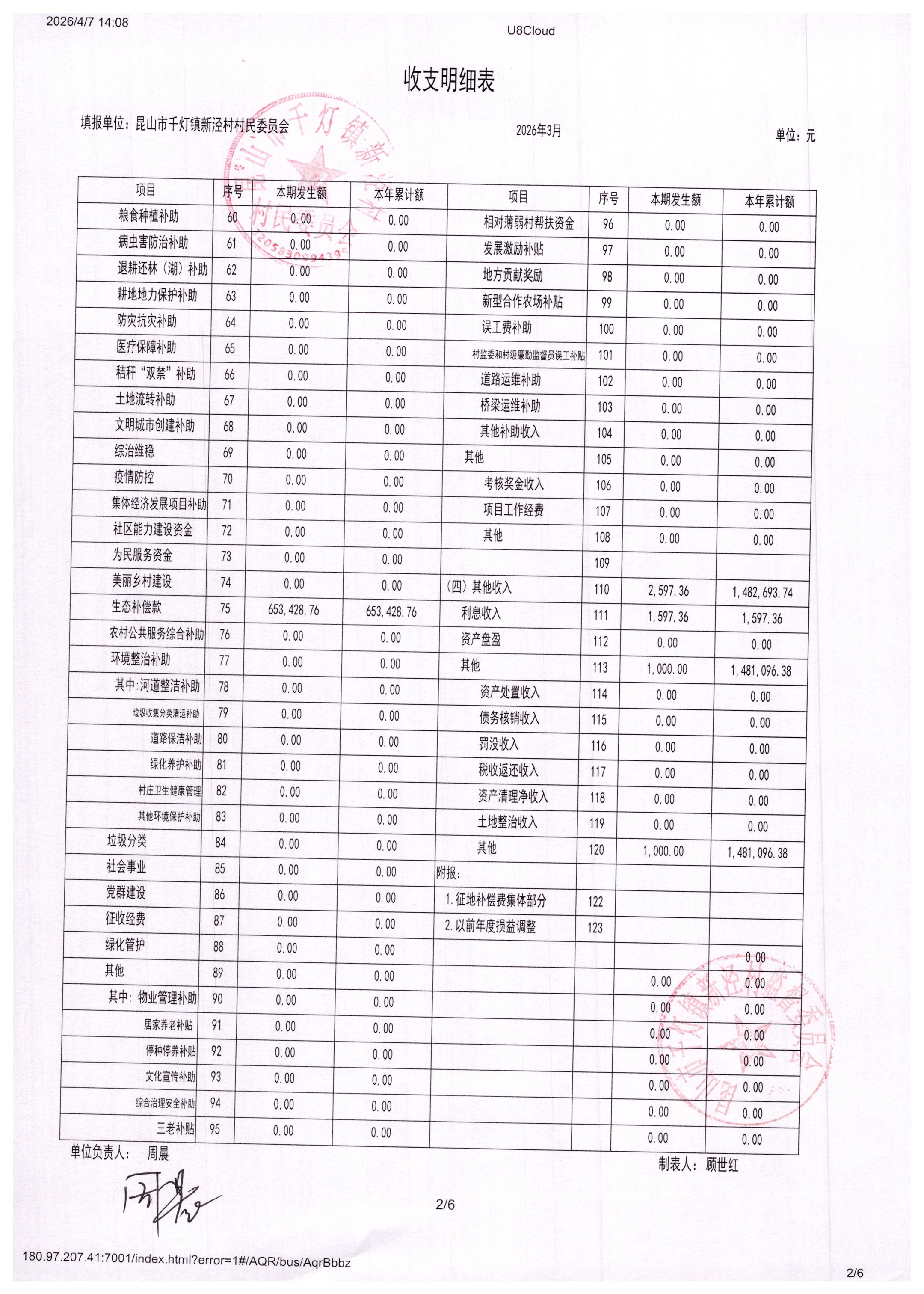 新泾村3月财务公开