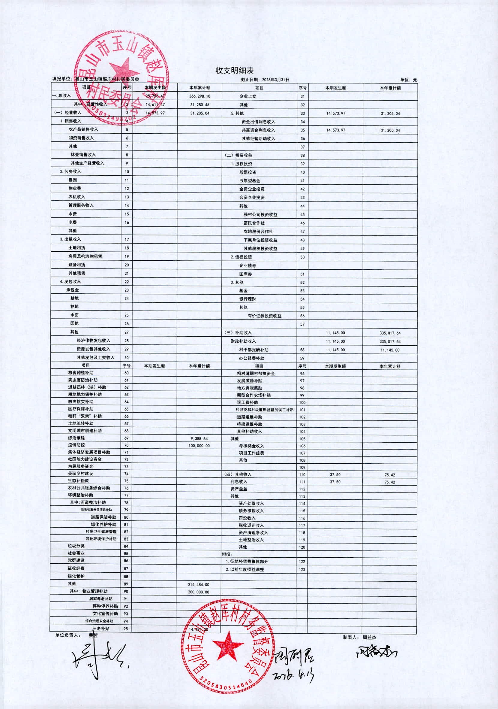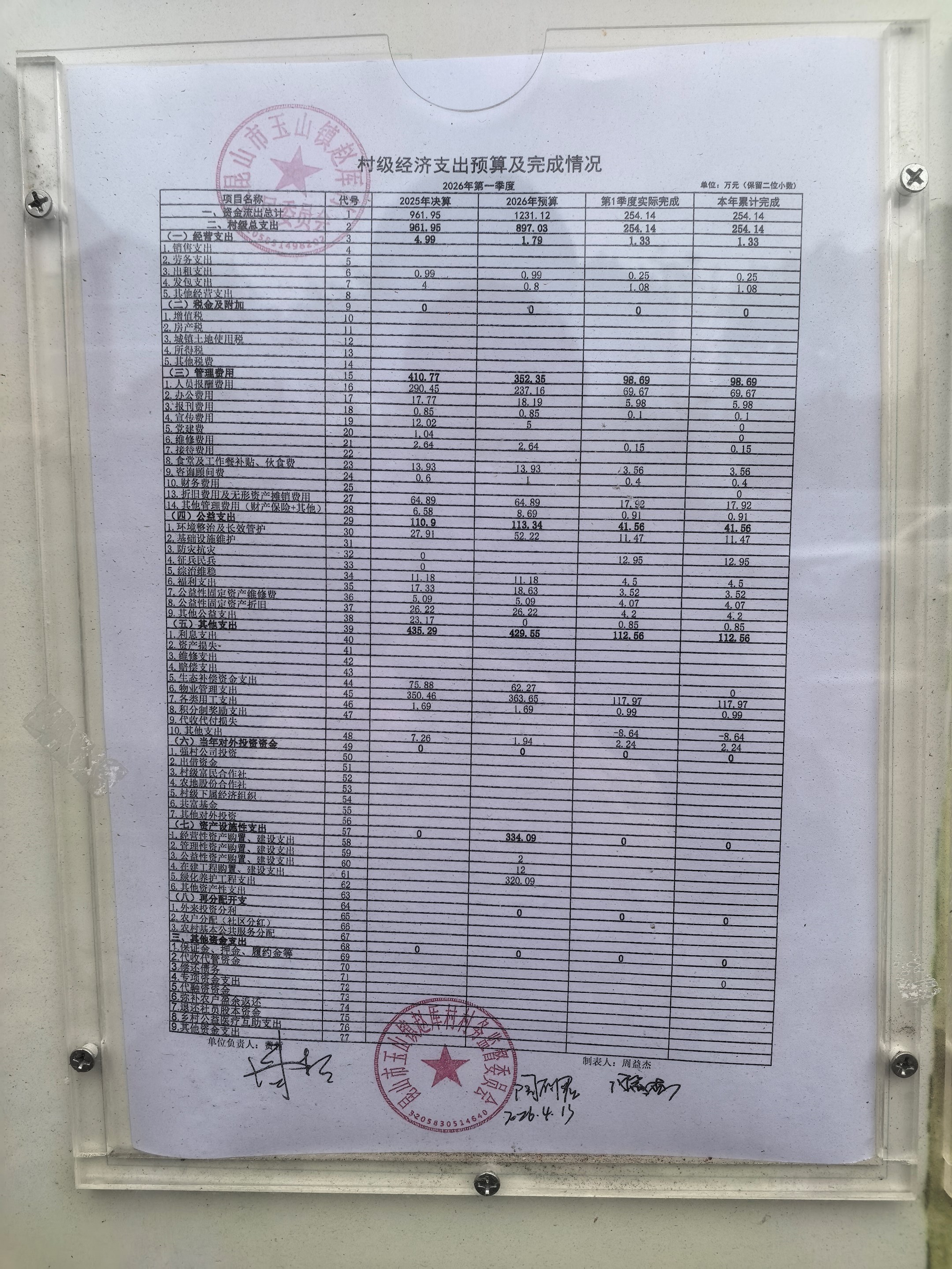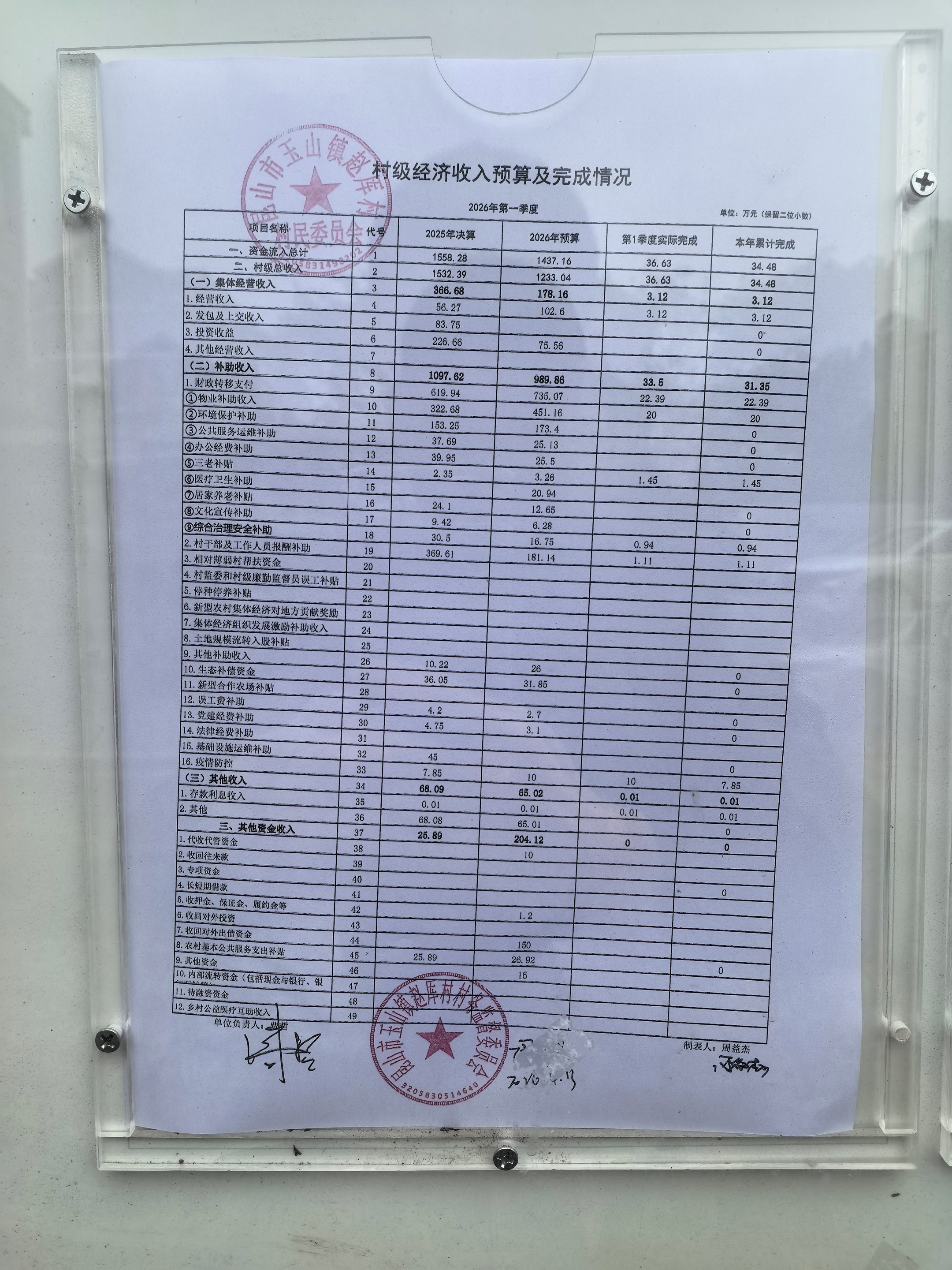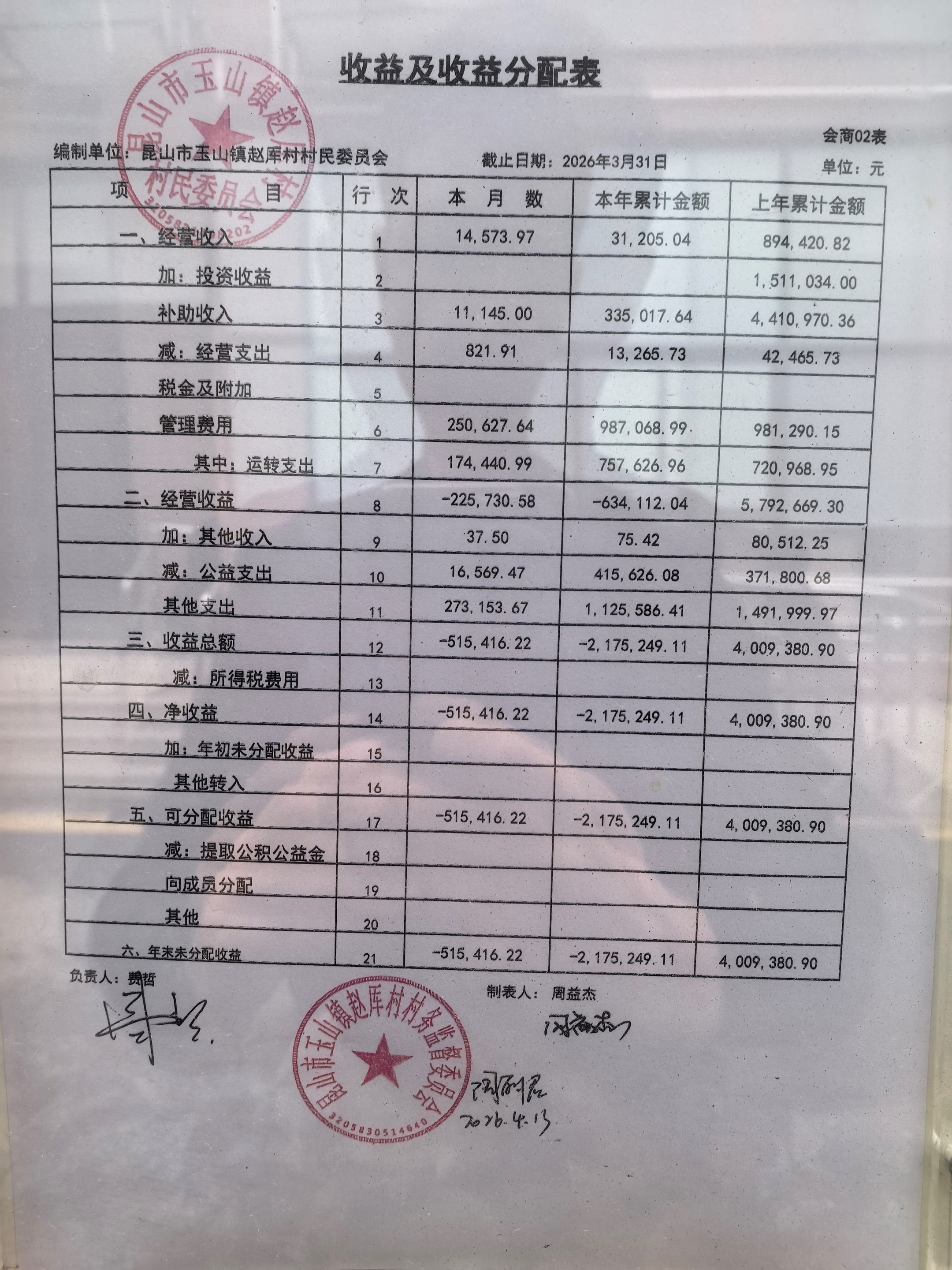 2026年赵厍村村委会4月财务公开及公示照片
