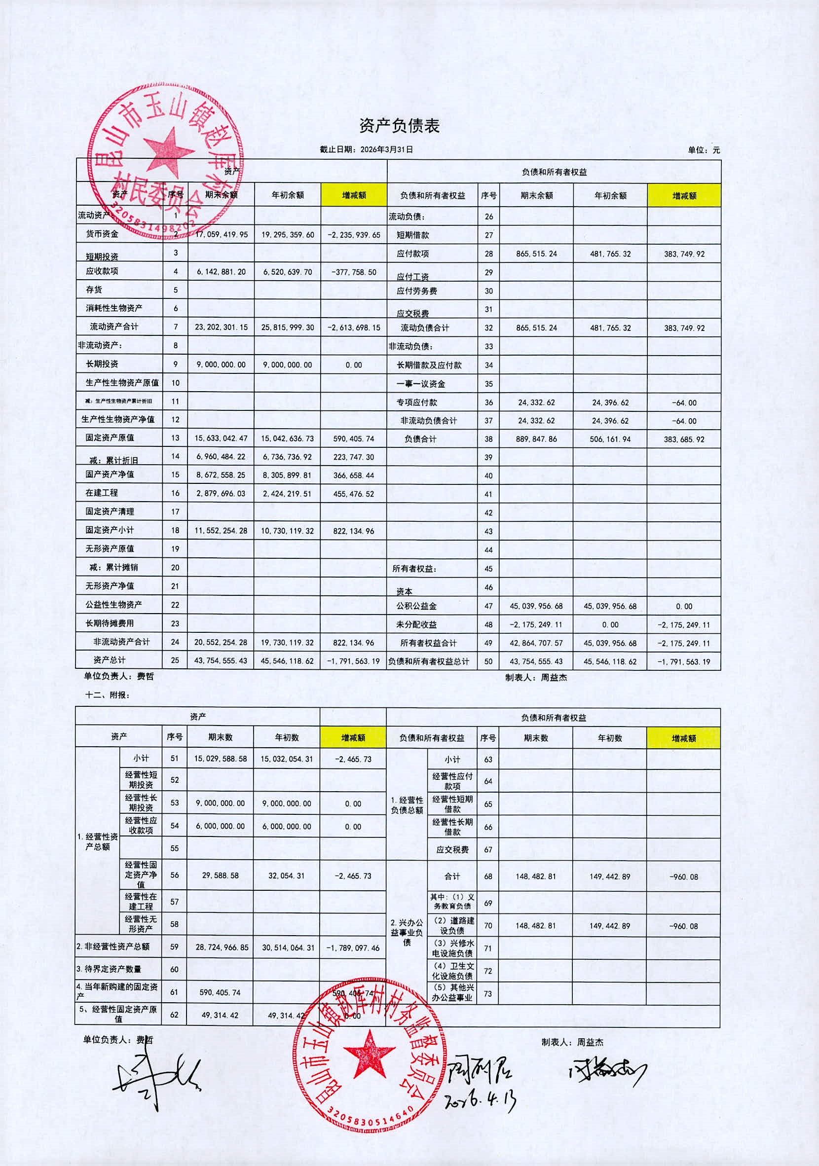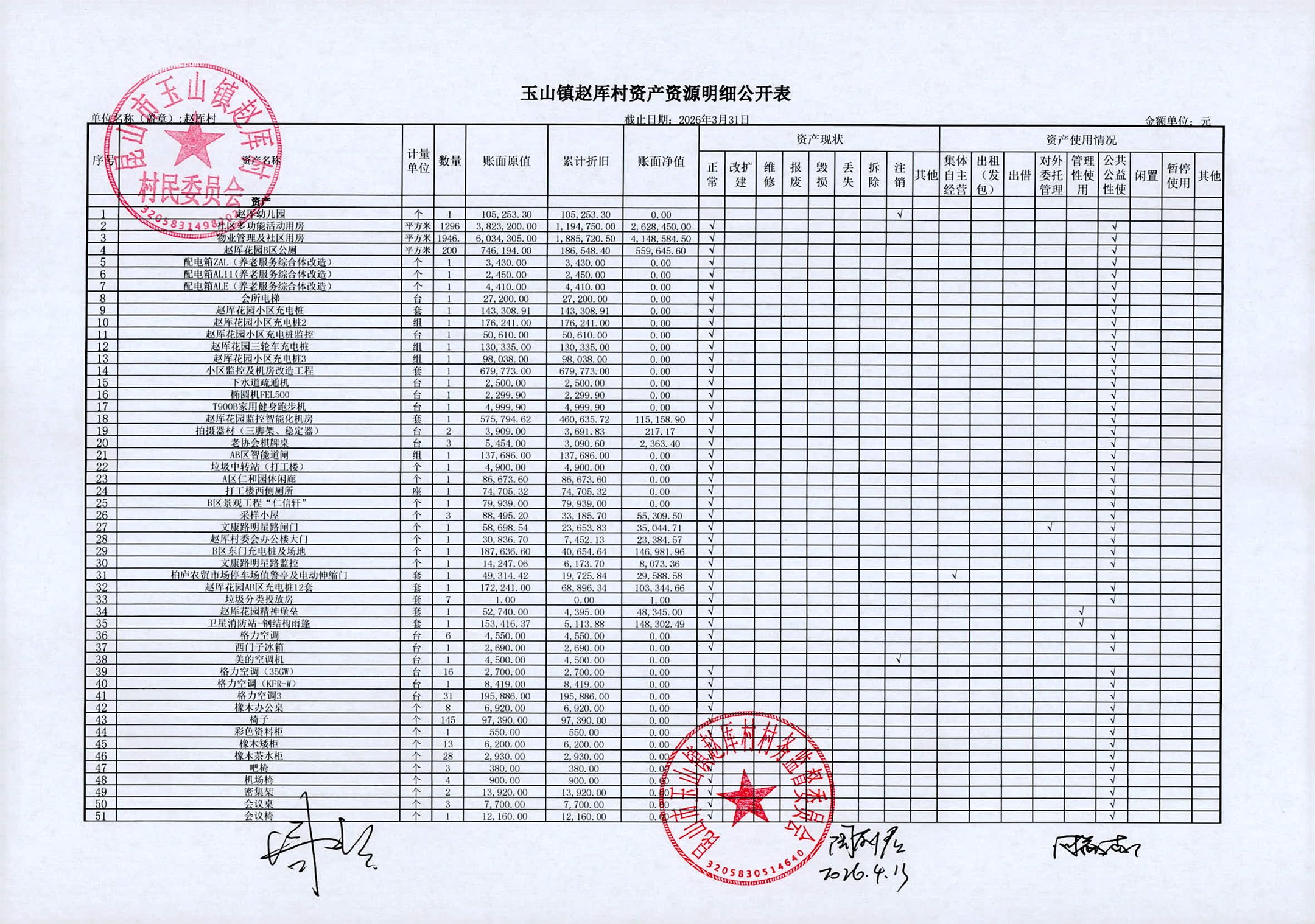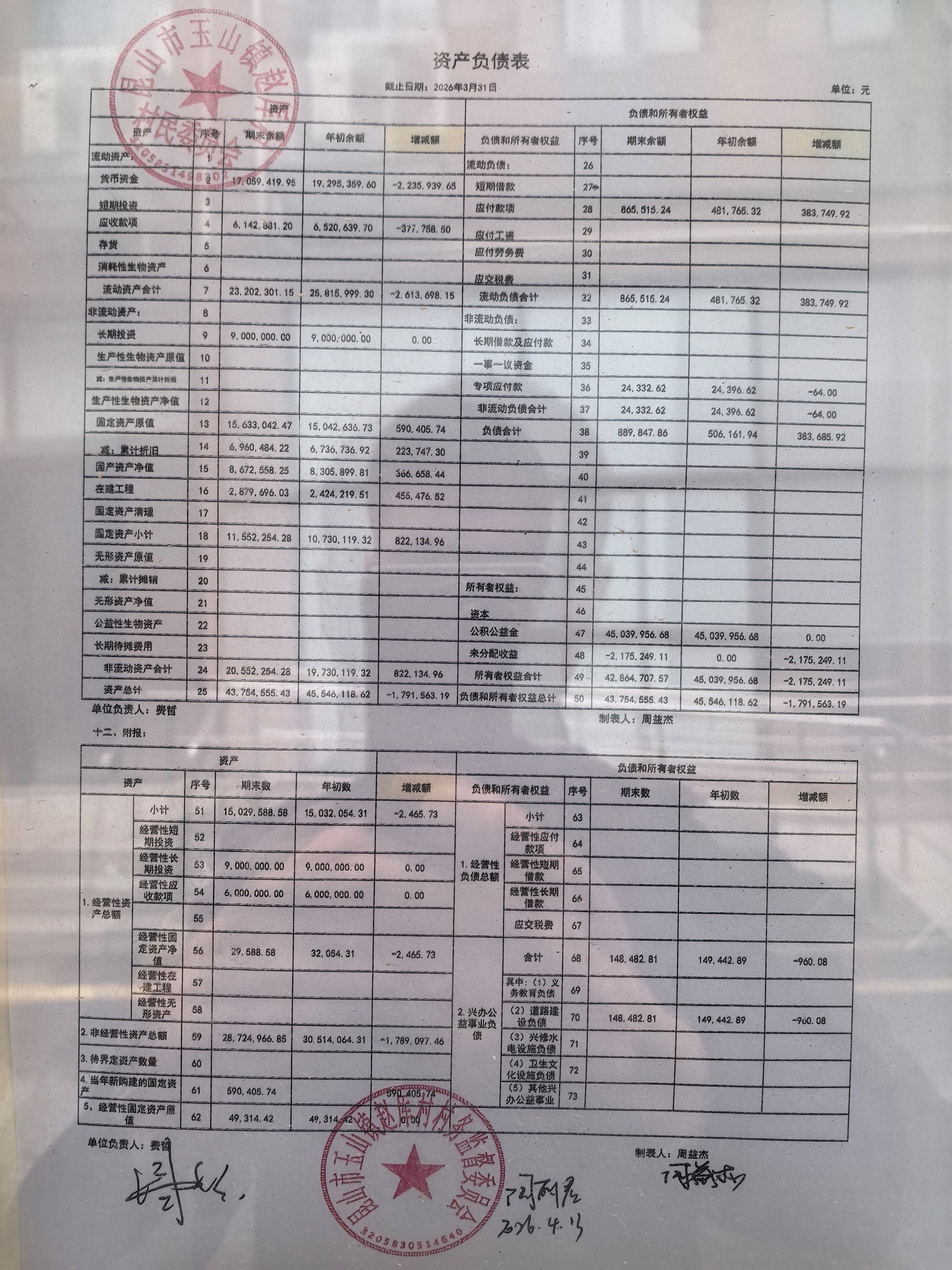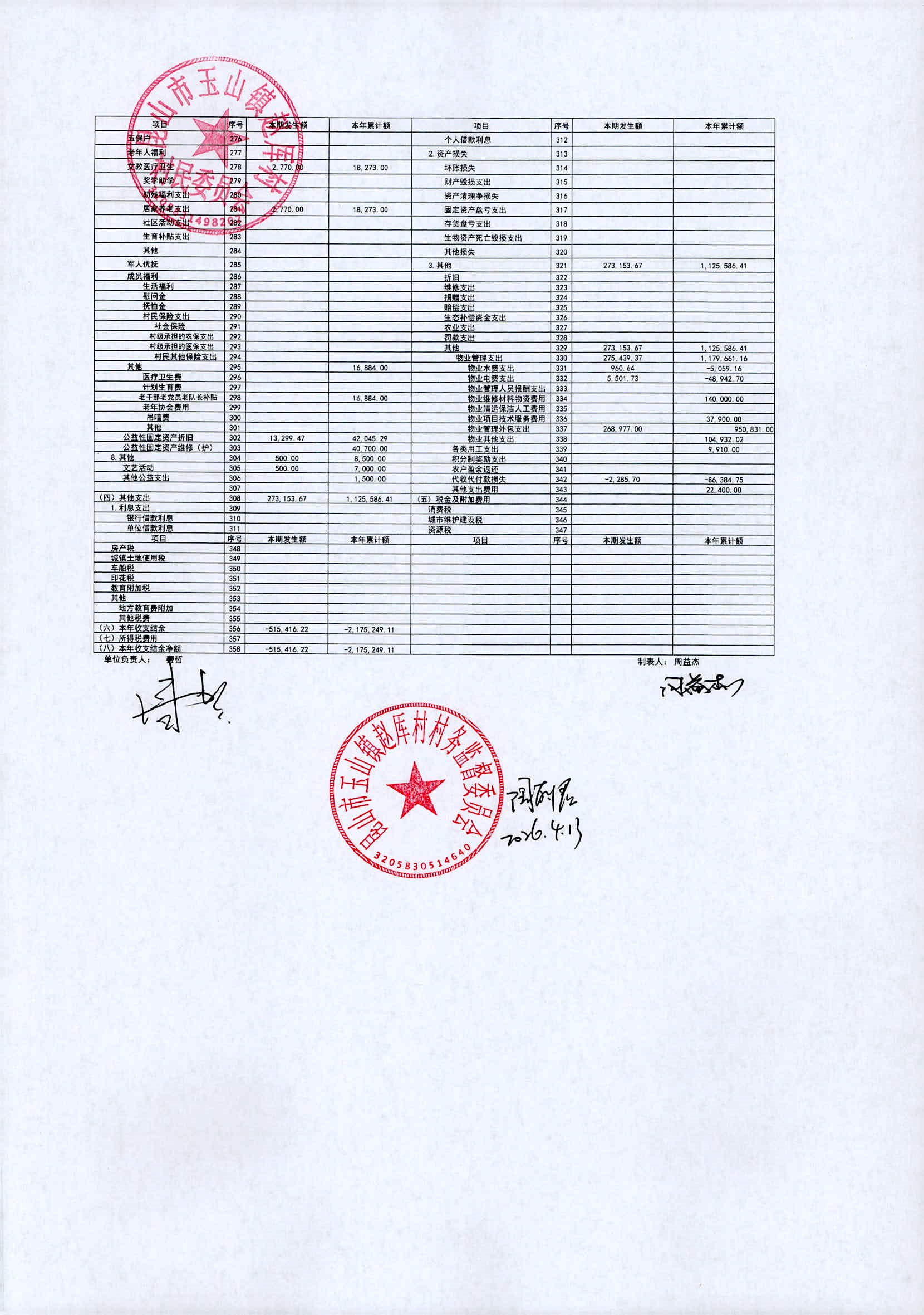 2026年赵厍村村委会4月财务公开及公示照片