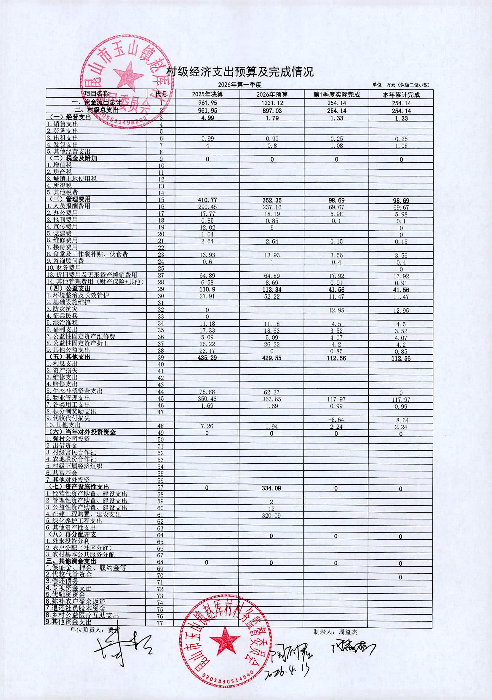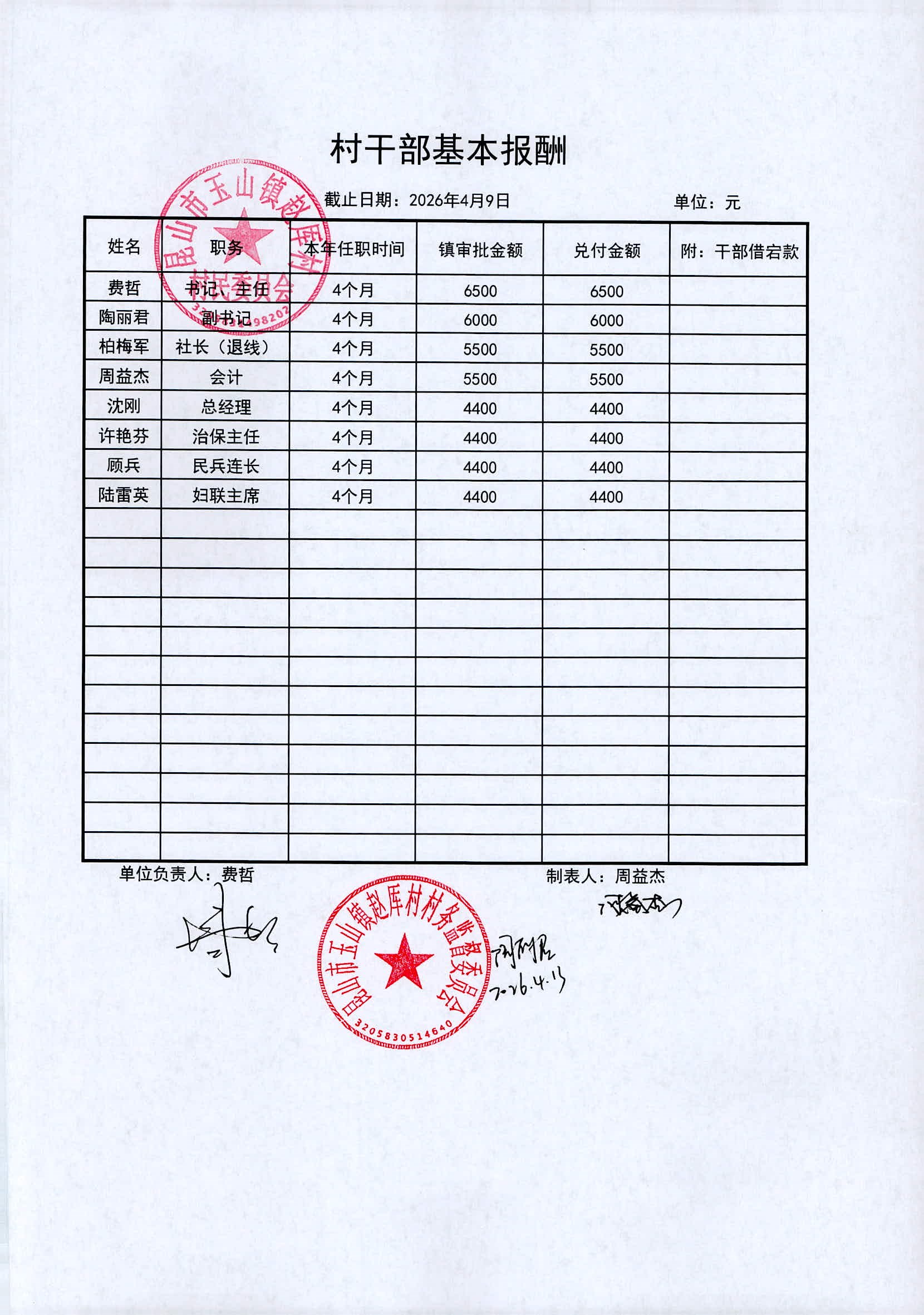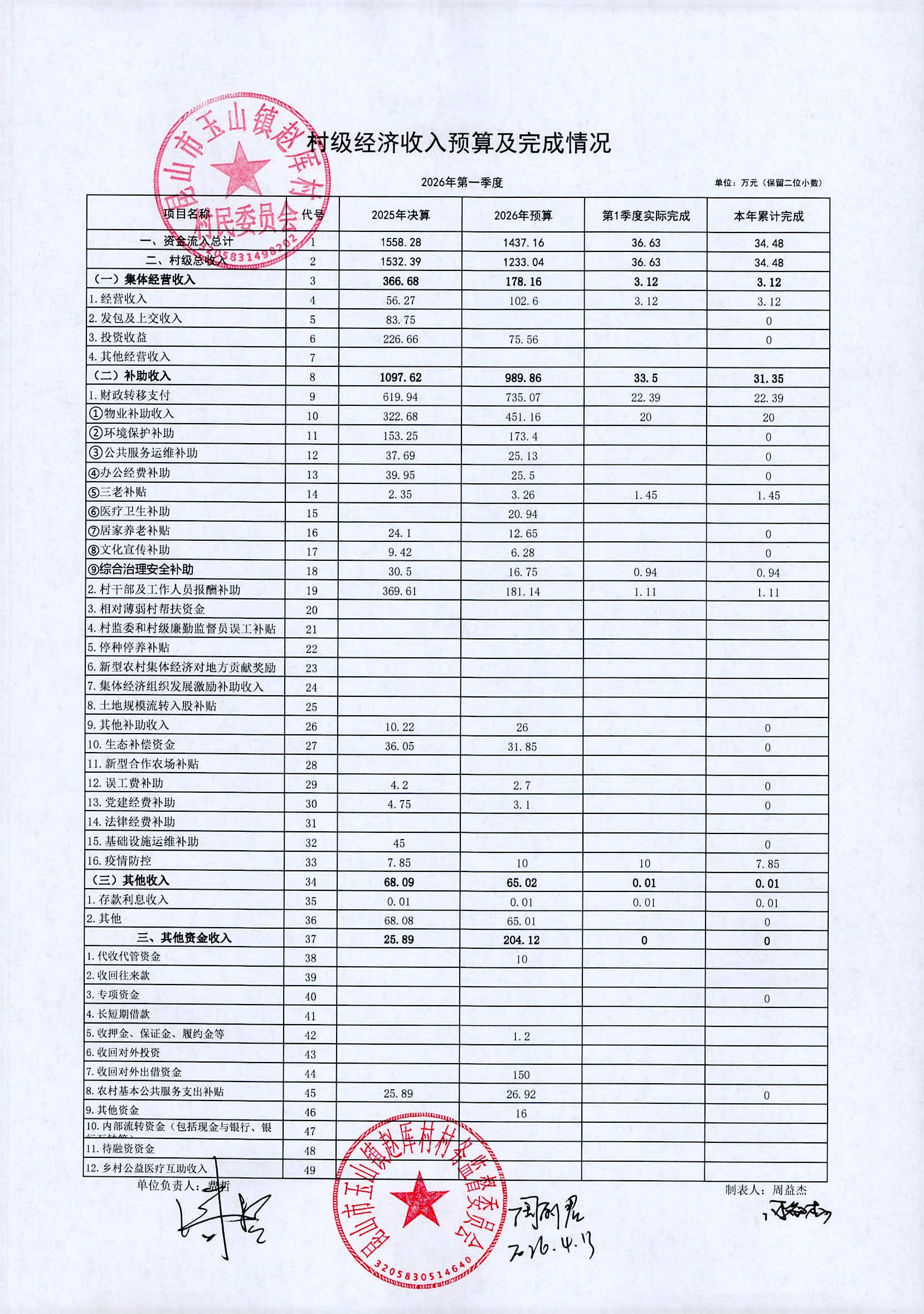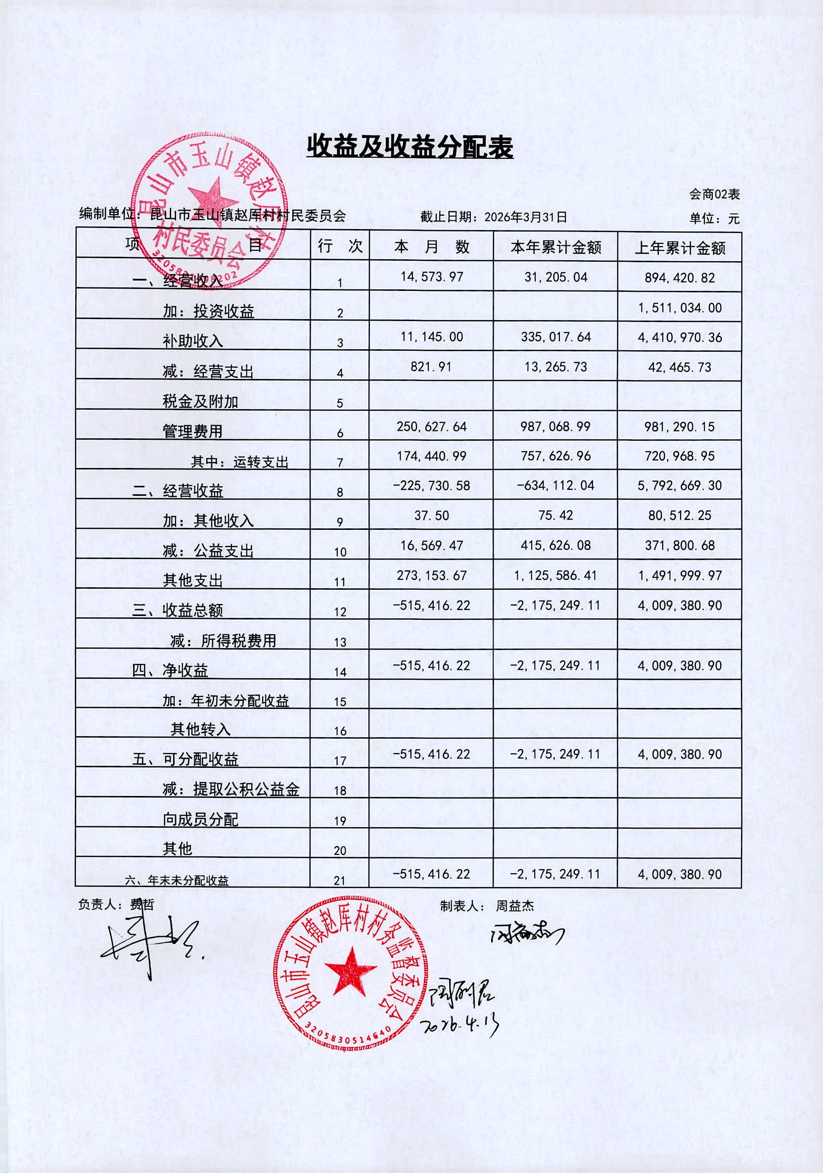2026年赵厍村村委会4月财务公开及公示照片