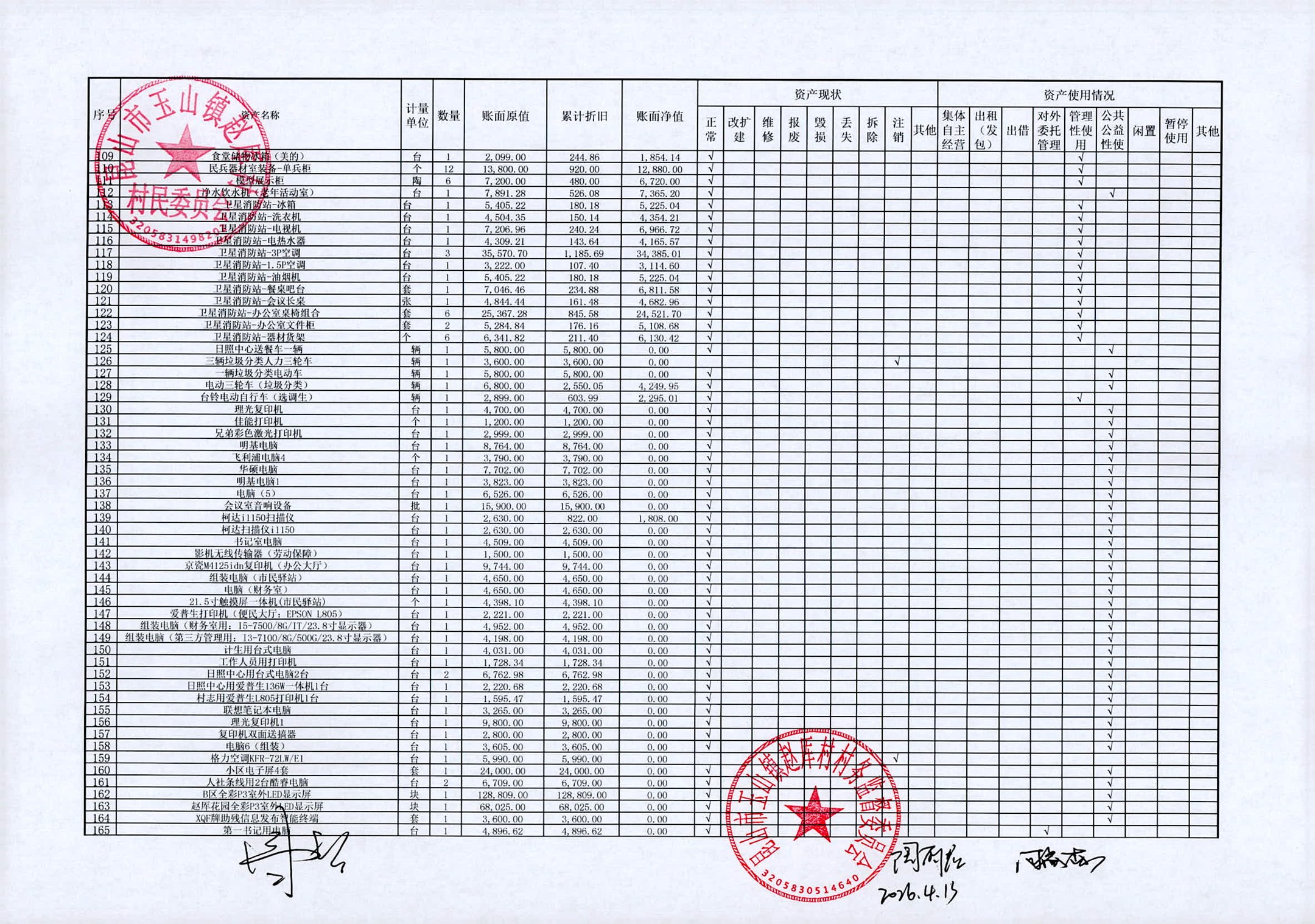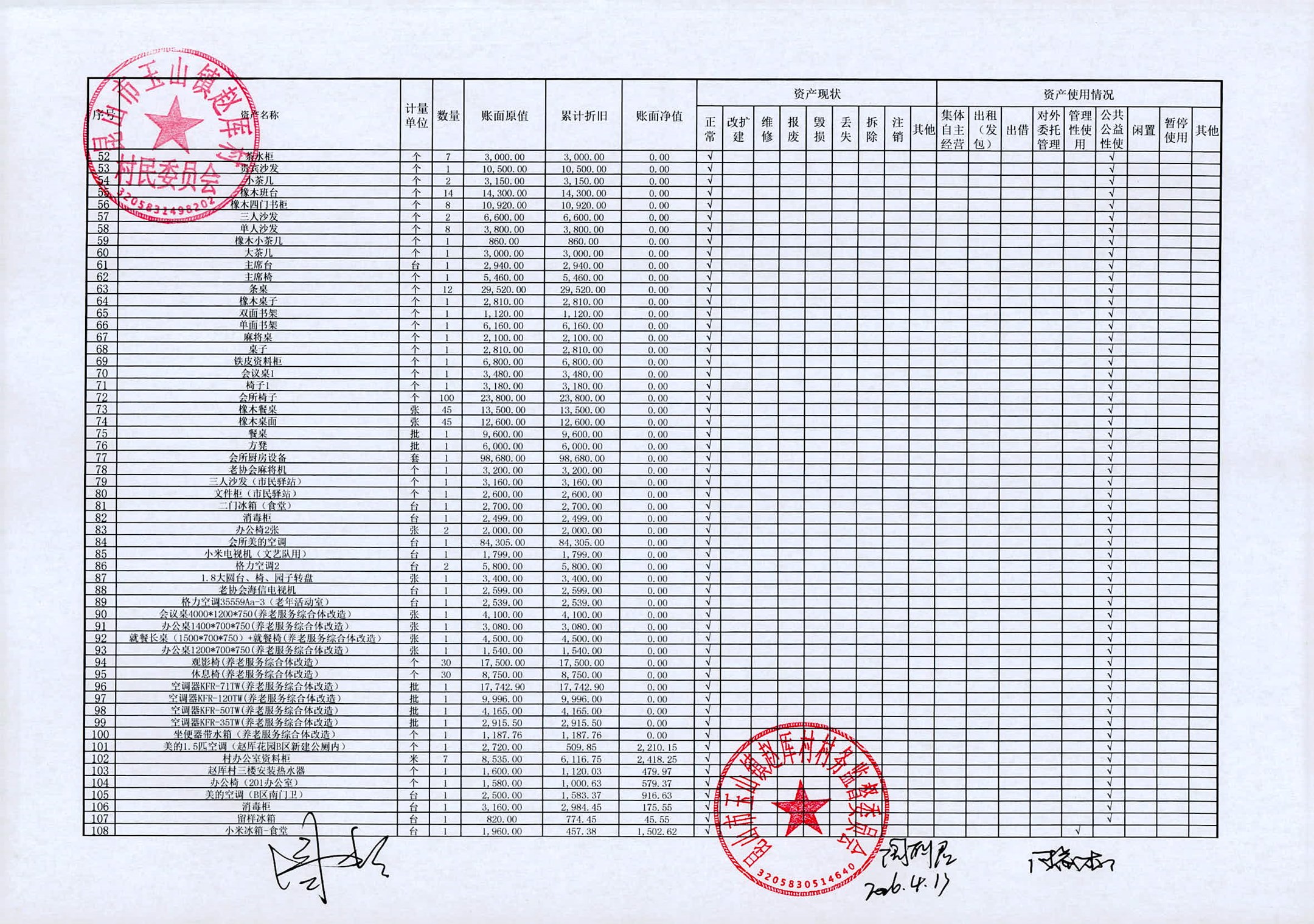 村盖章事项名录