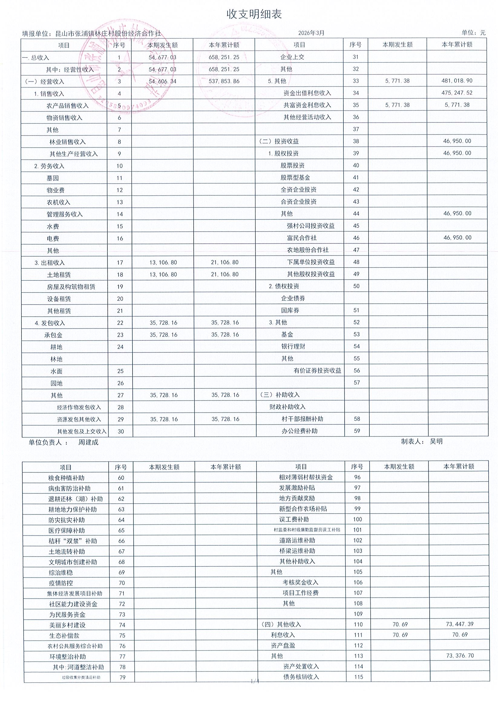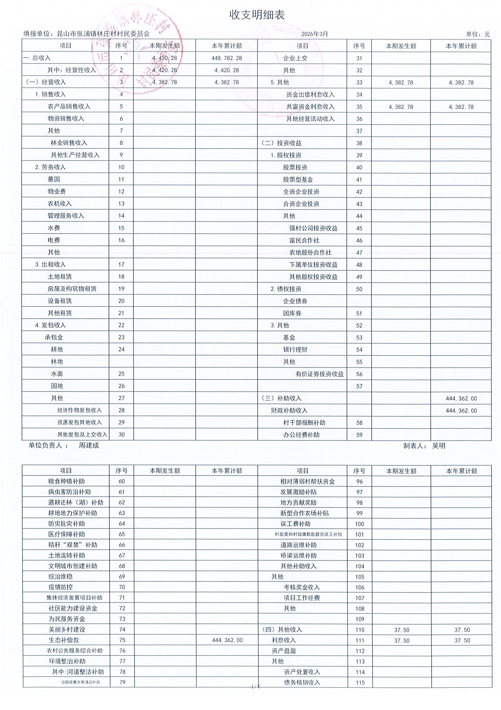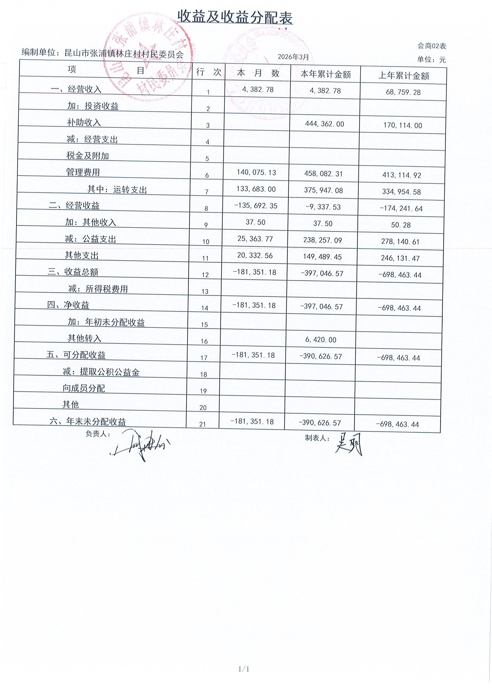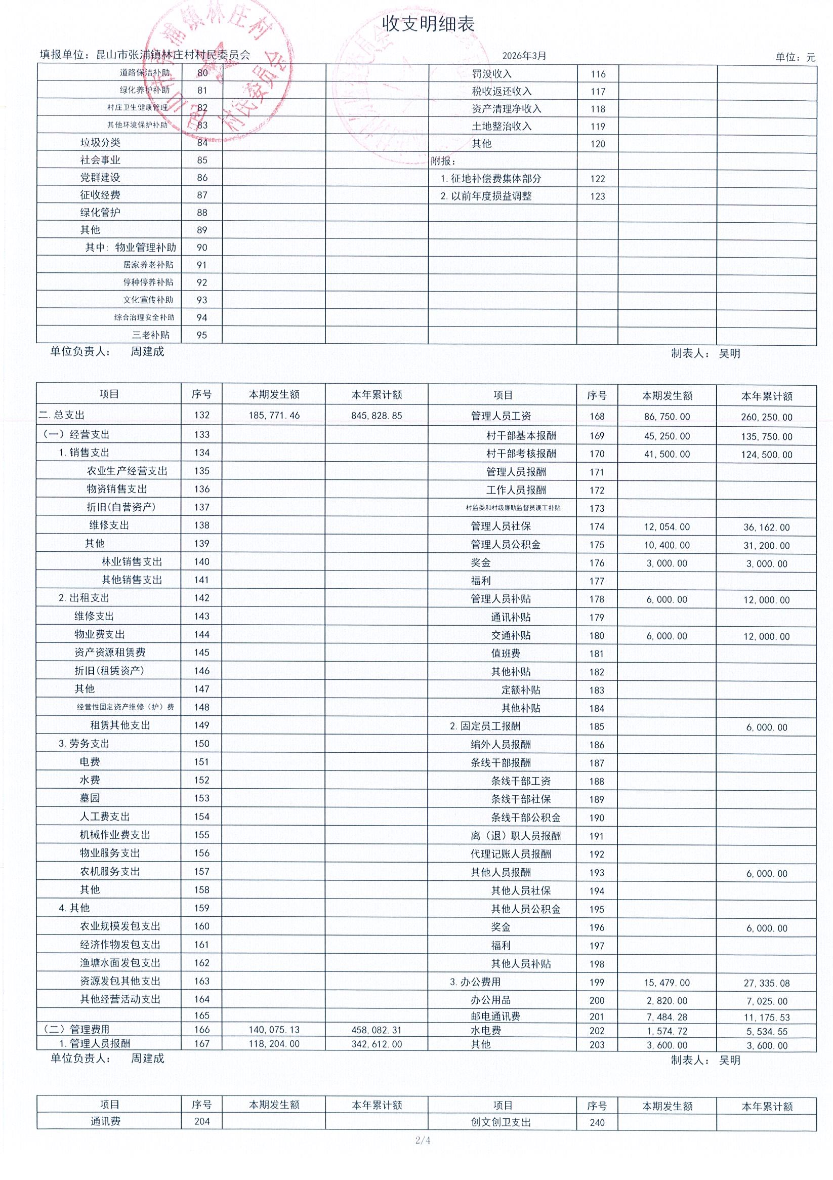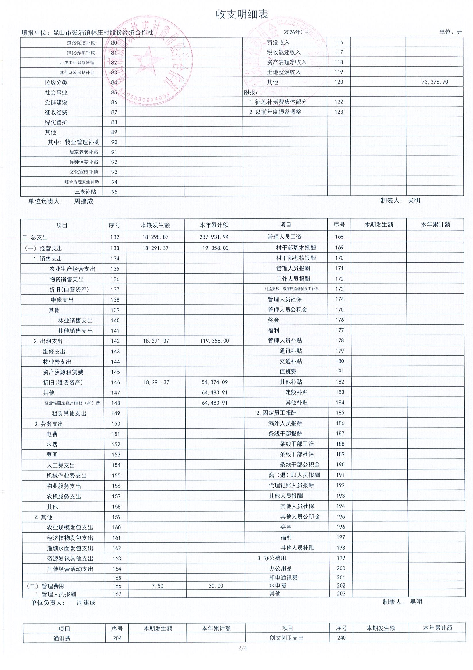 2026年林庄村及股份经济合作社3月财务公开