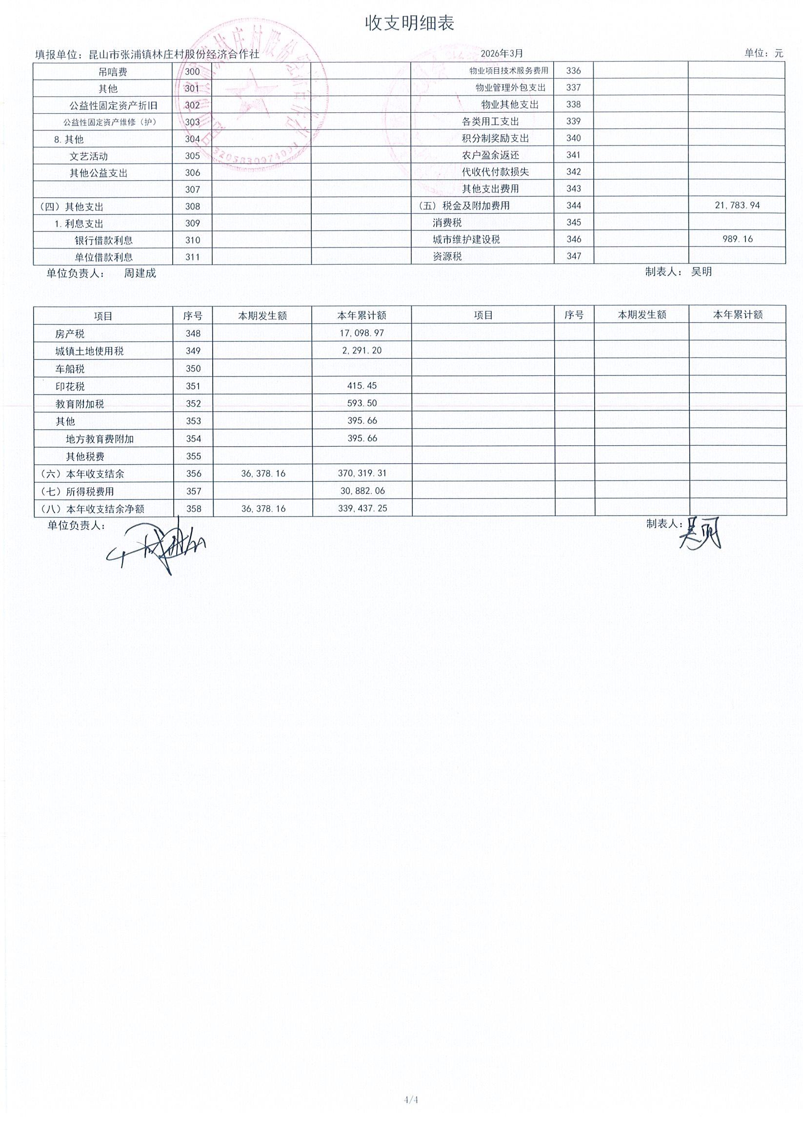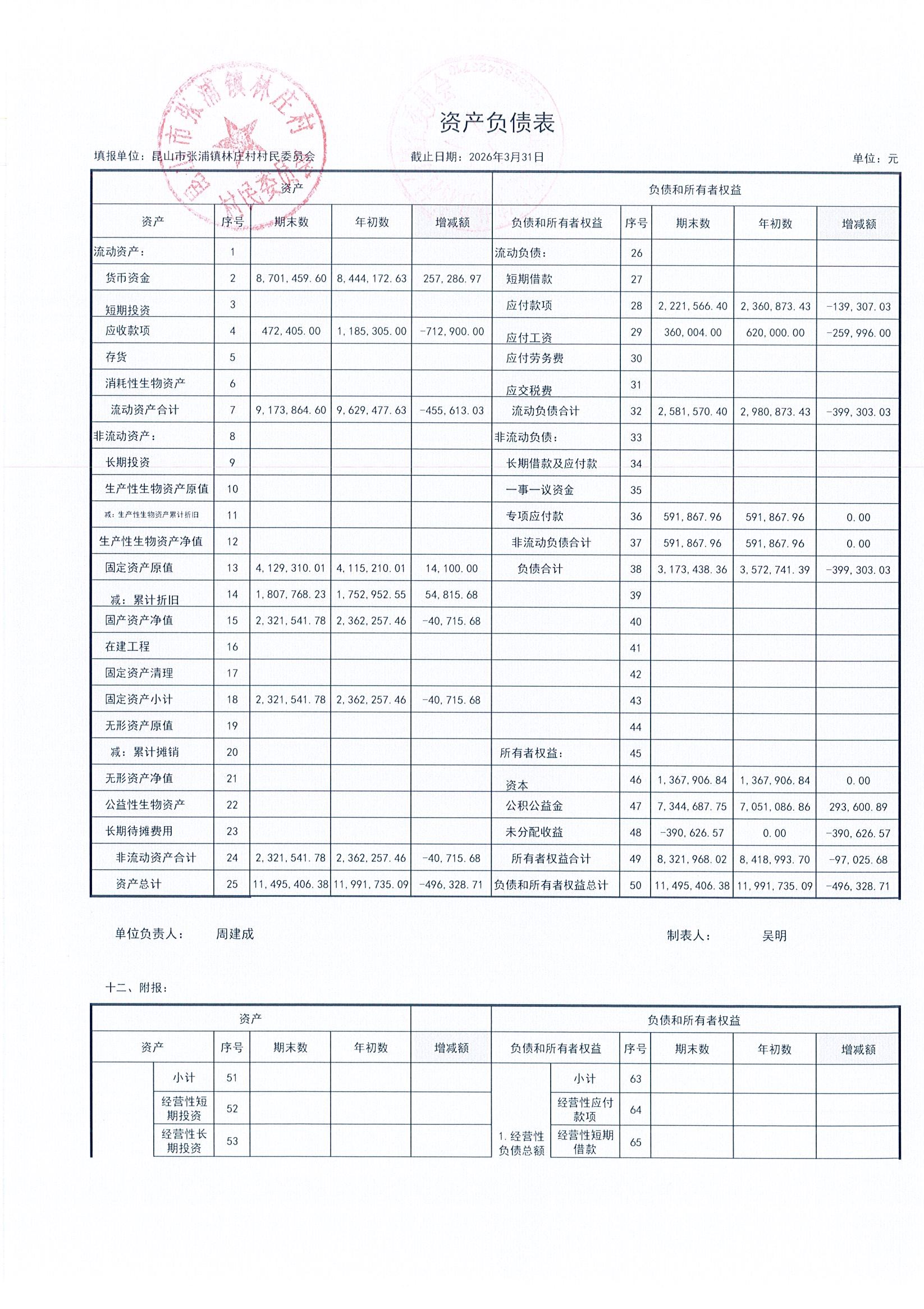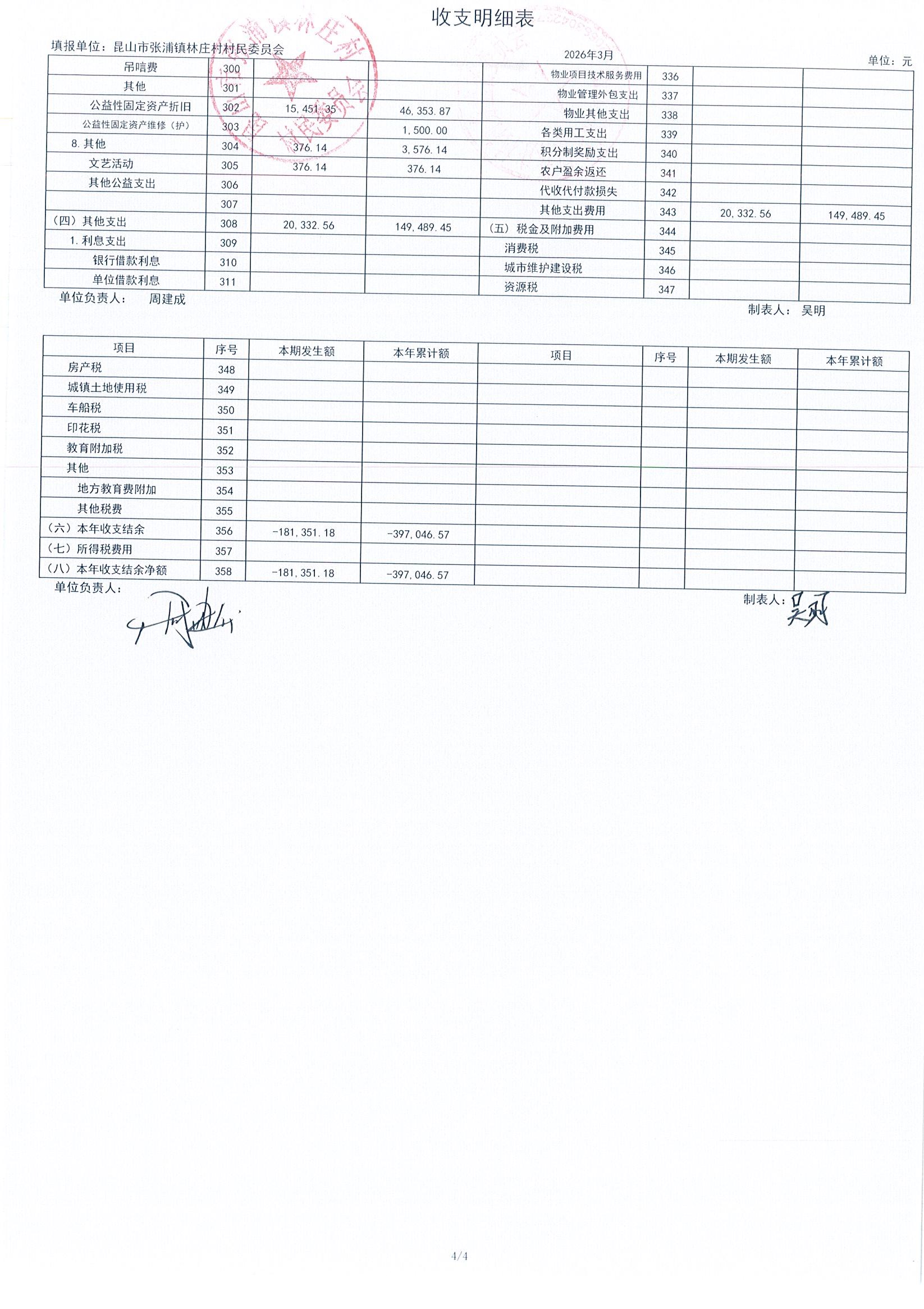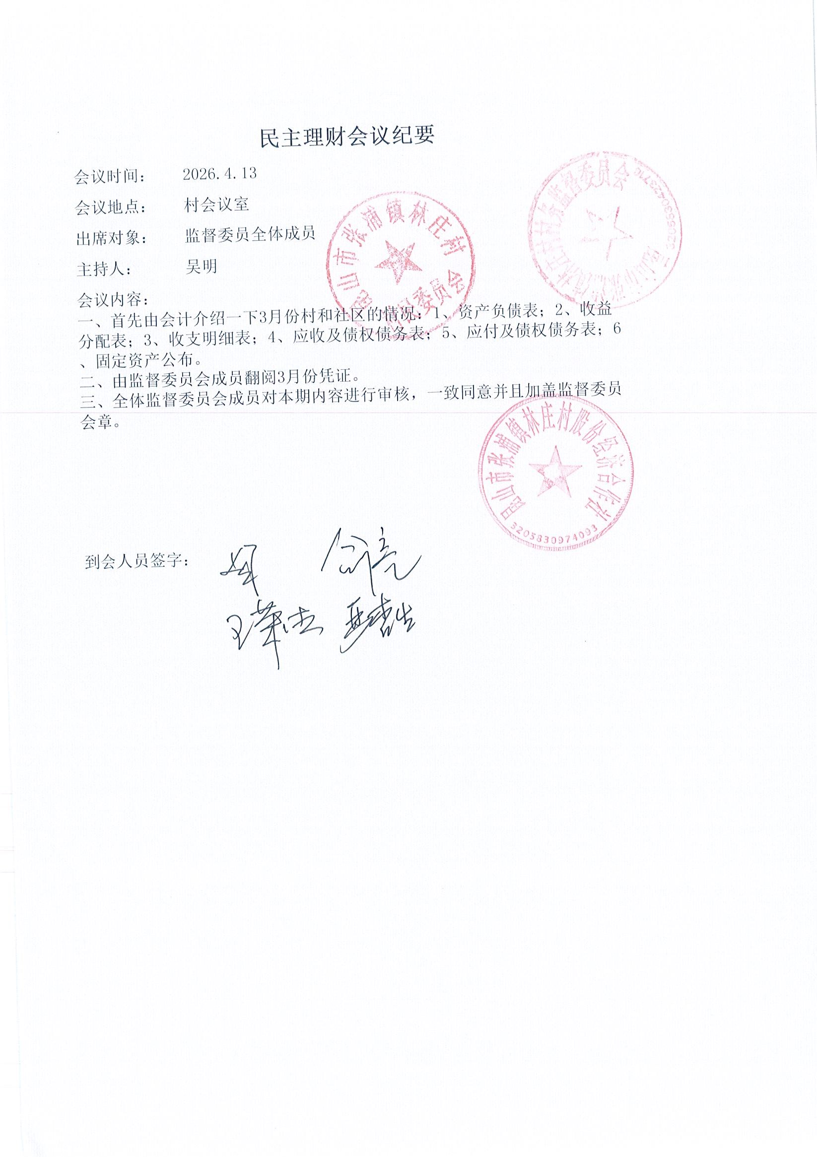 2026年林庄村及股份经济合作社3月财务公开