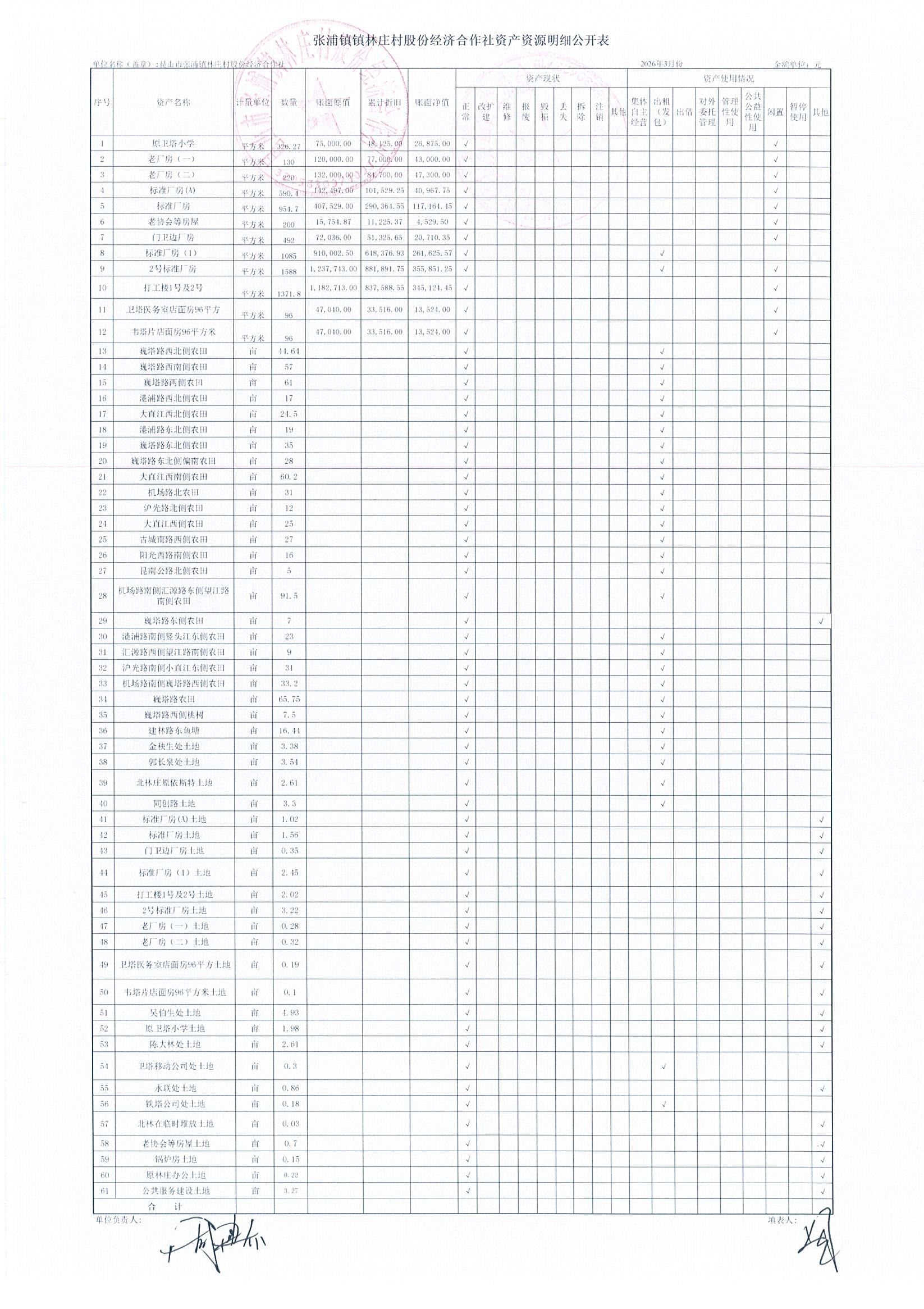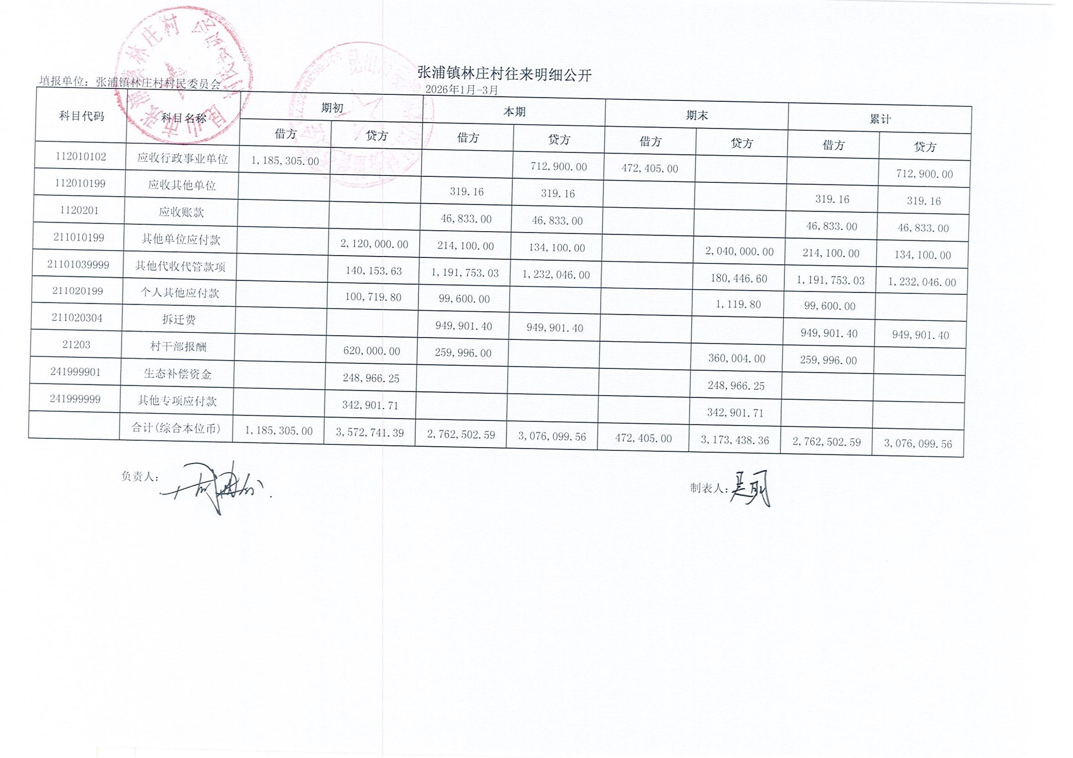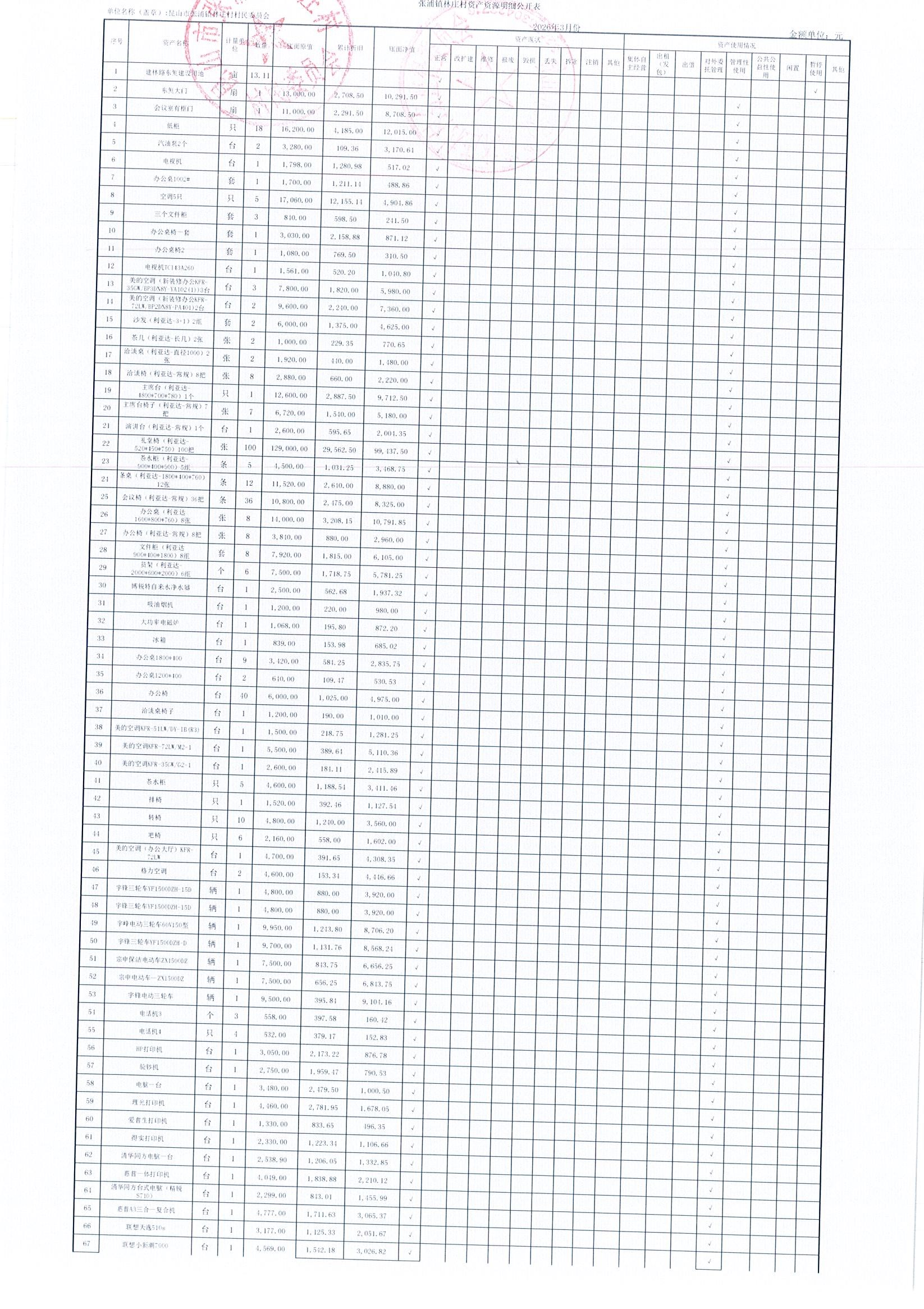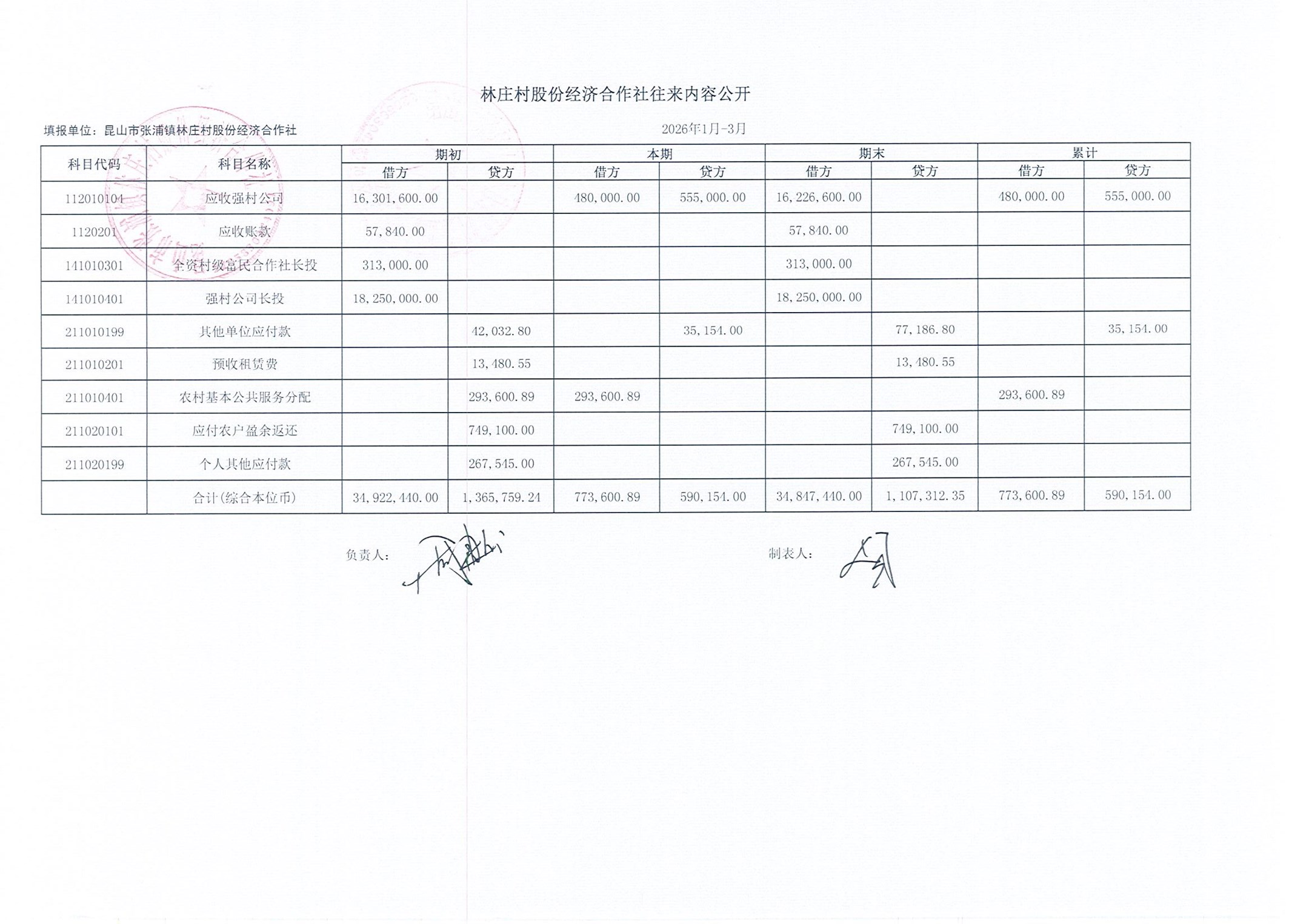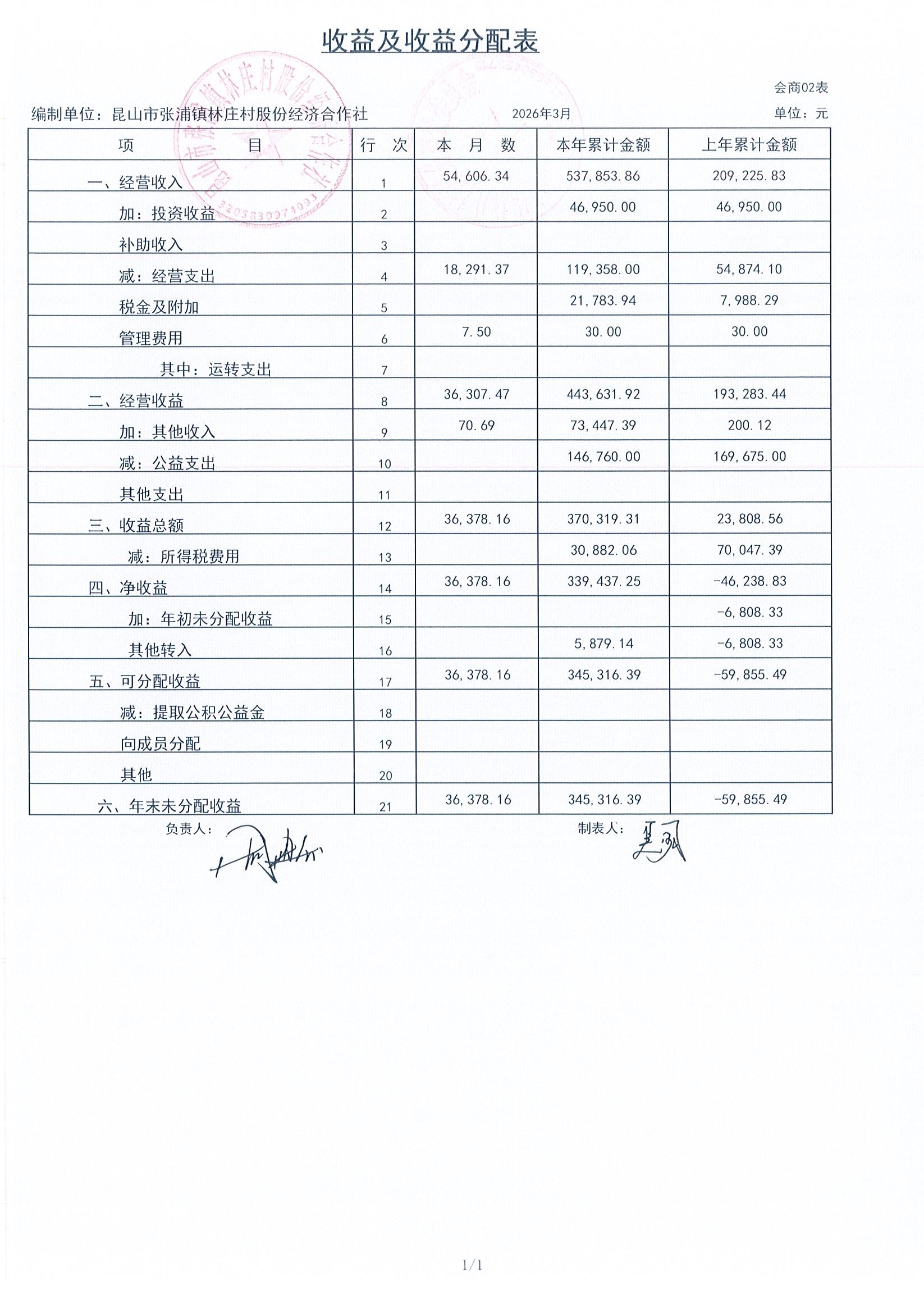 2026年林庄村及股份经济合作社3月财务公开