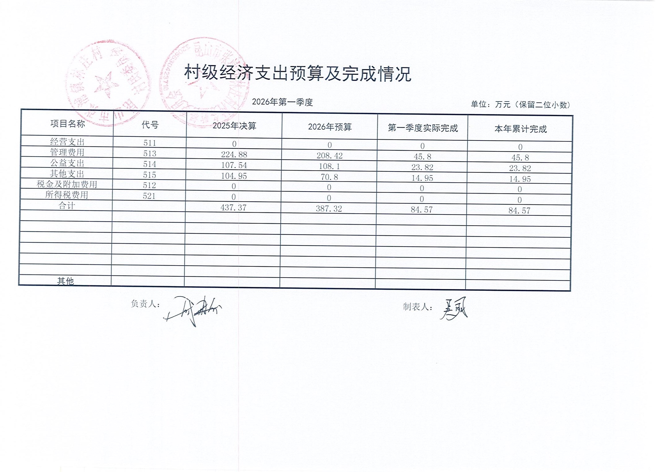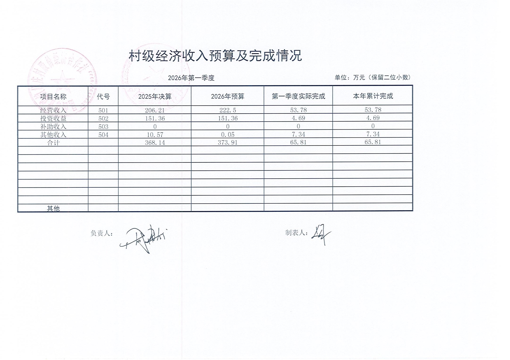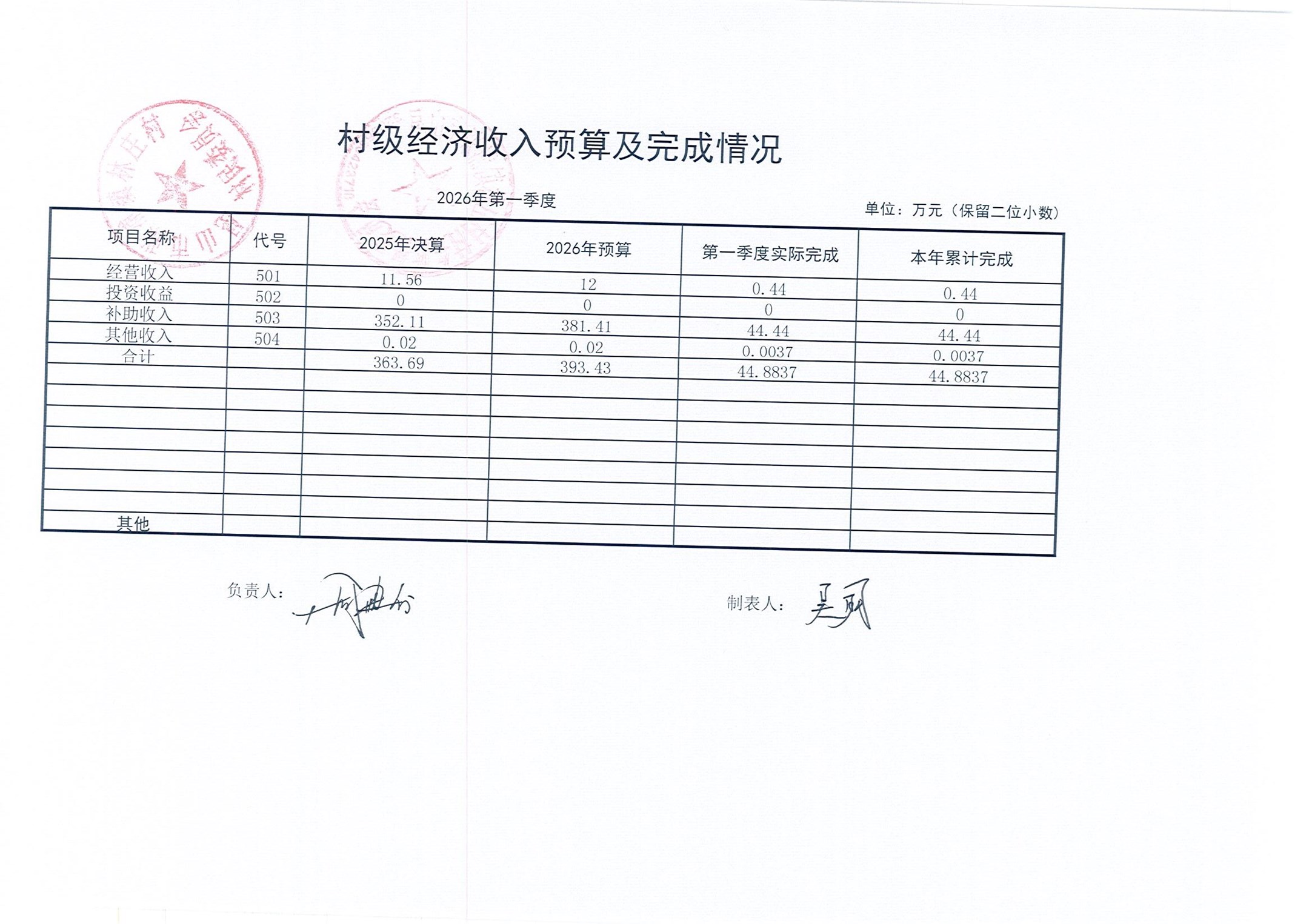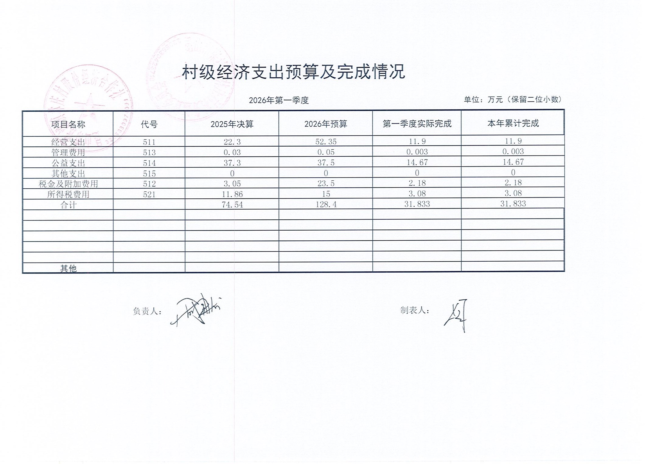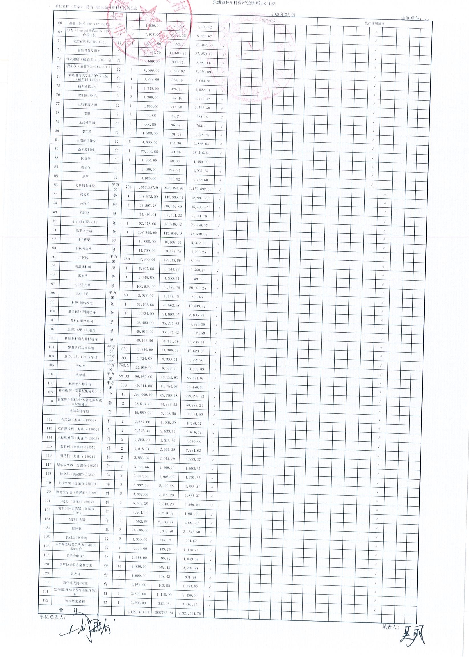 2026年林庄村及股份经济合作社3月财务公开