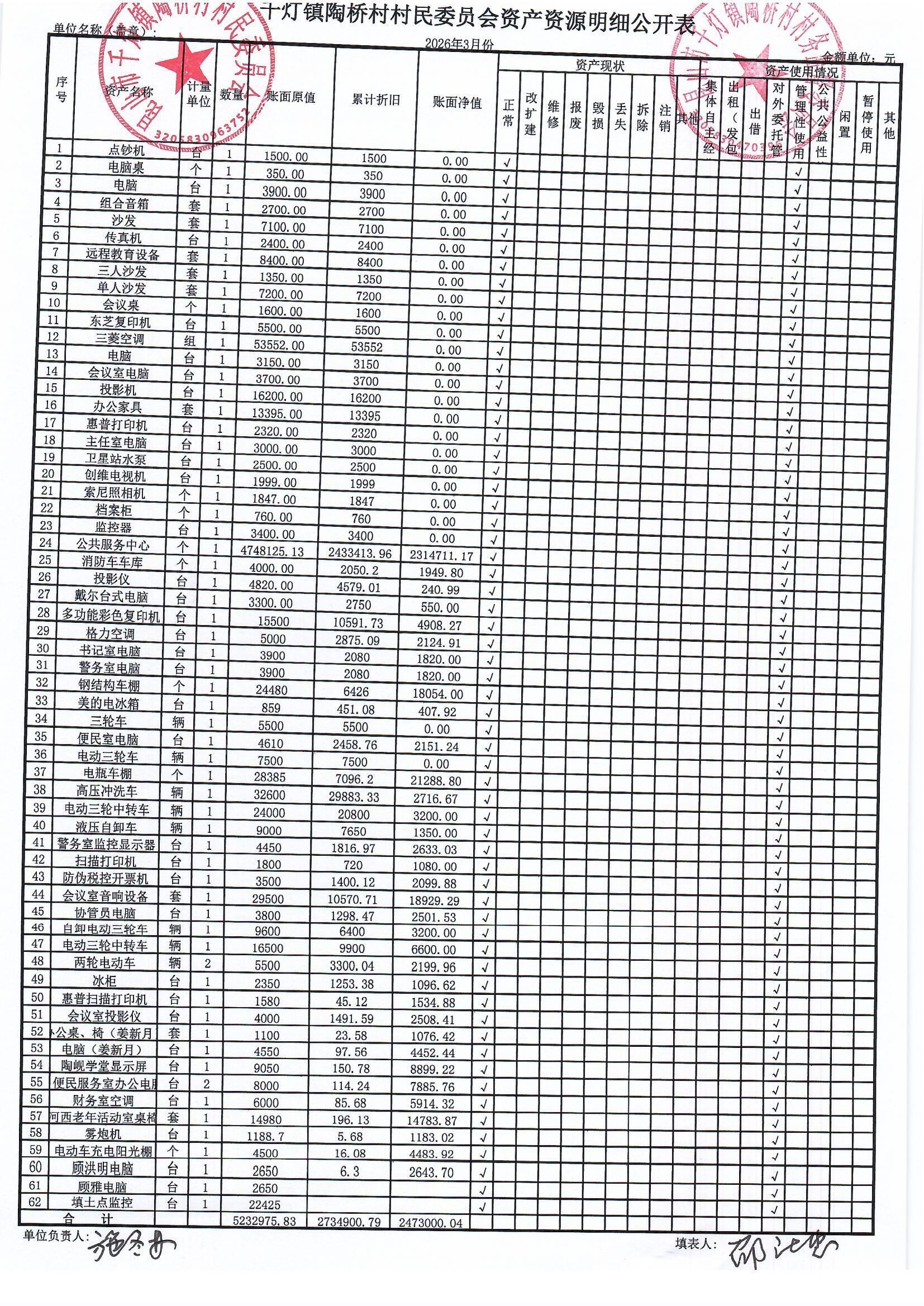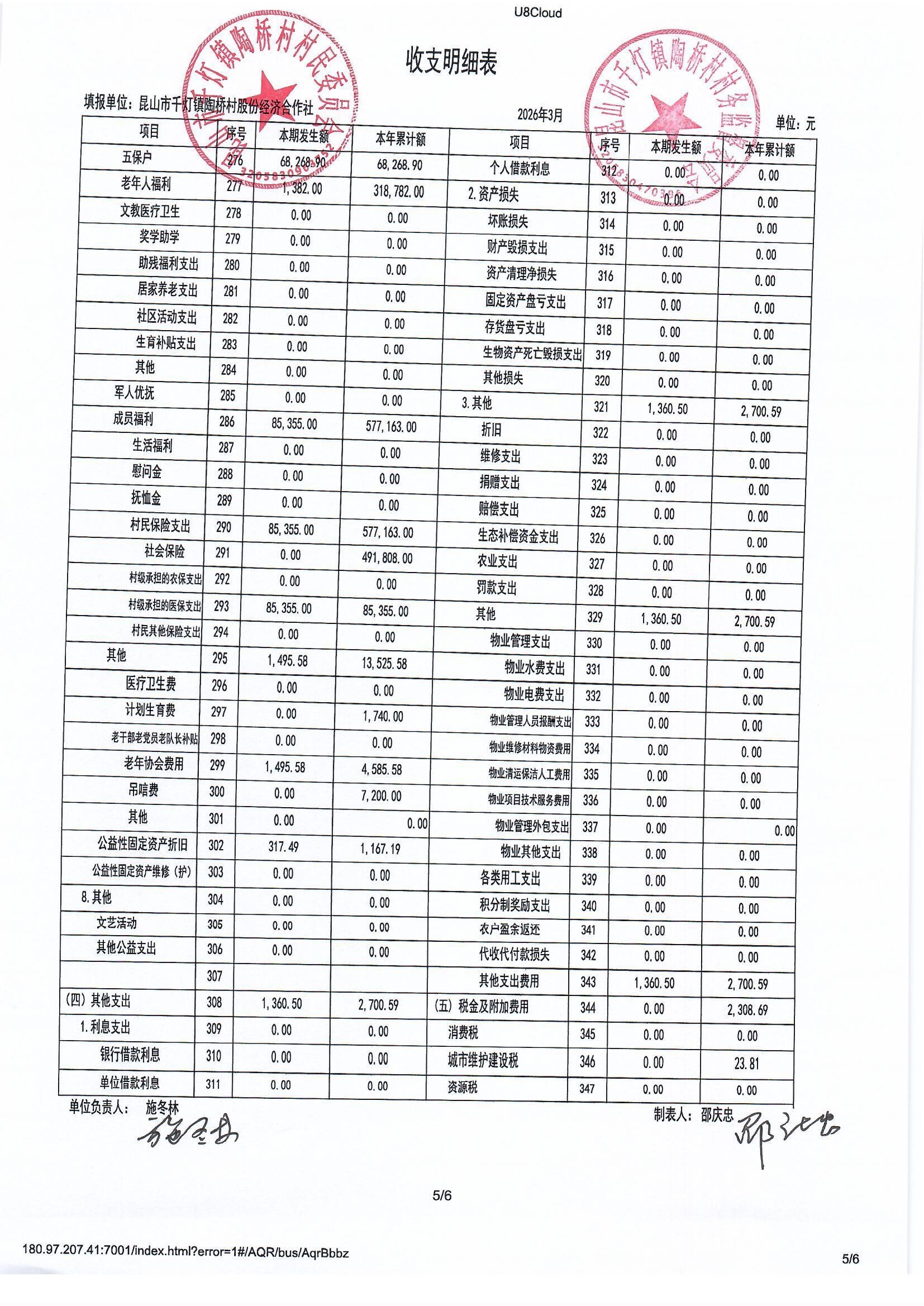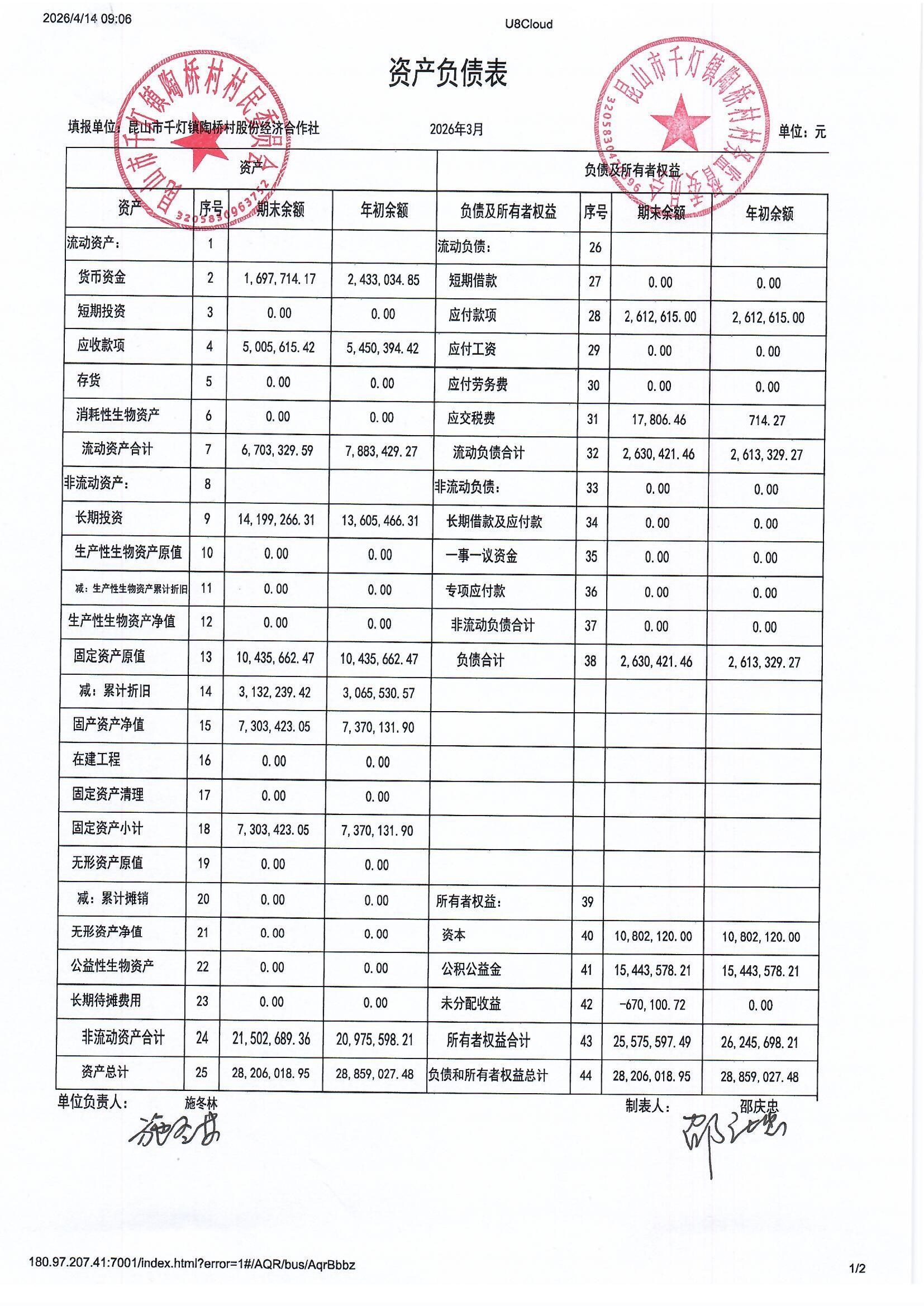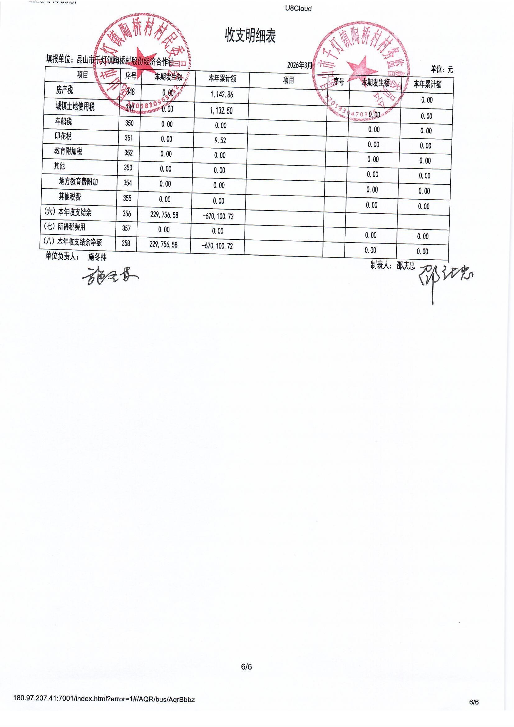 陶桥村股份经济合作社2026年3月财务公开内容: