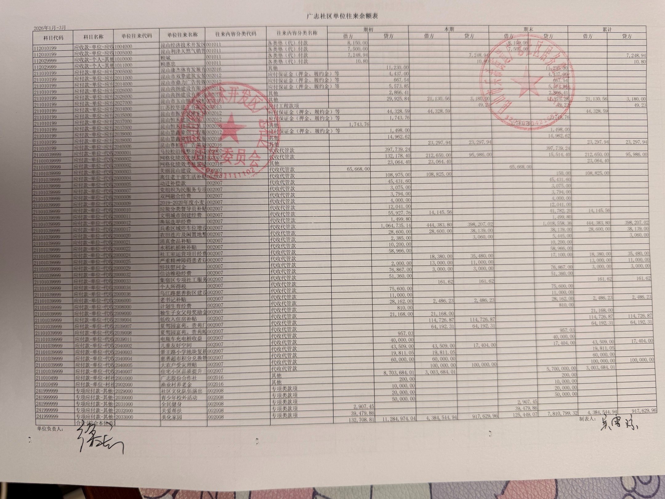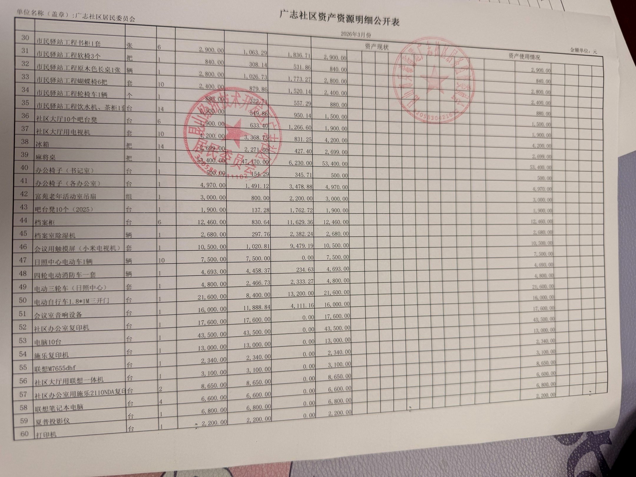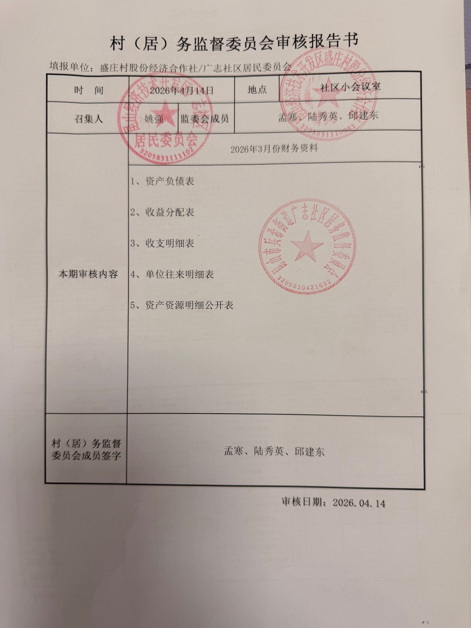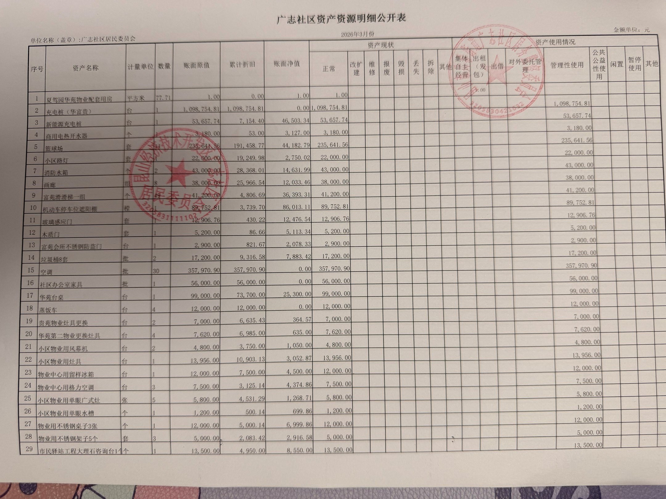 2026年3月份广志社区财务公开资料