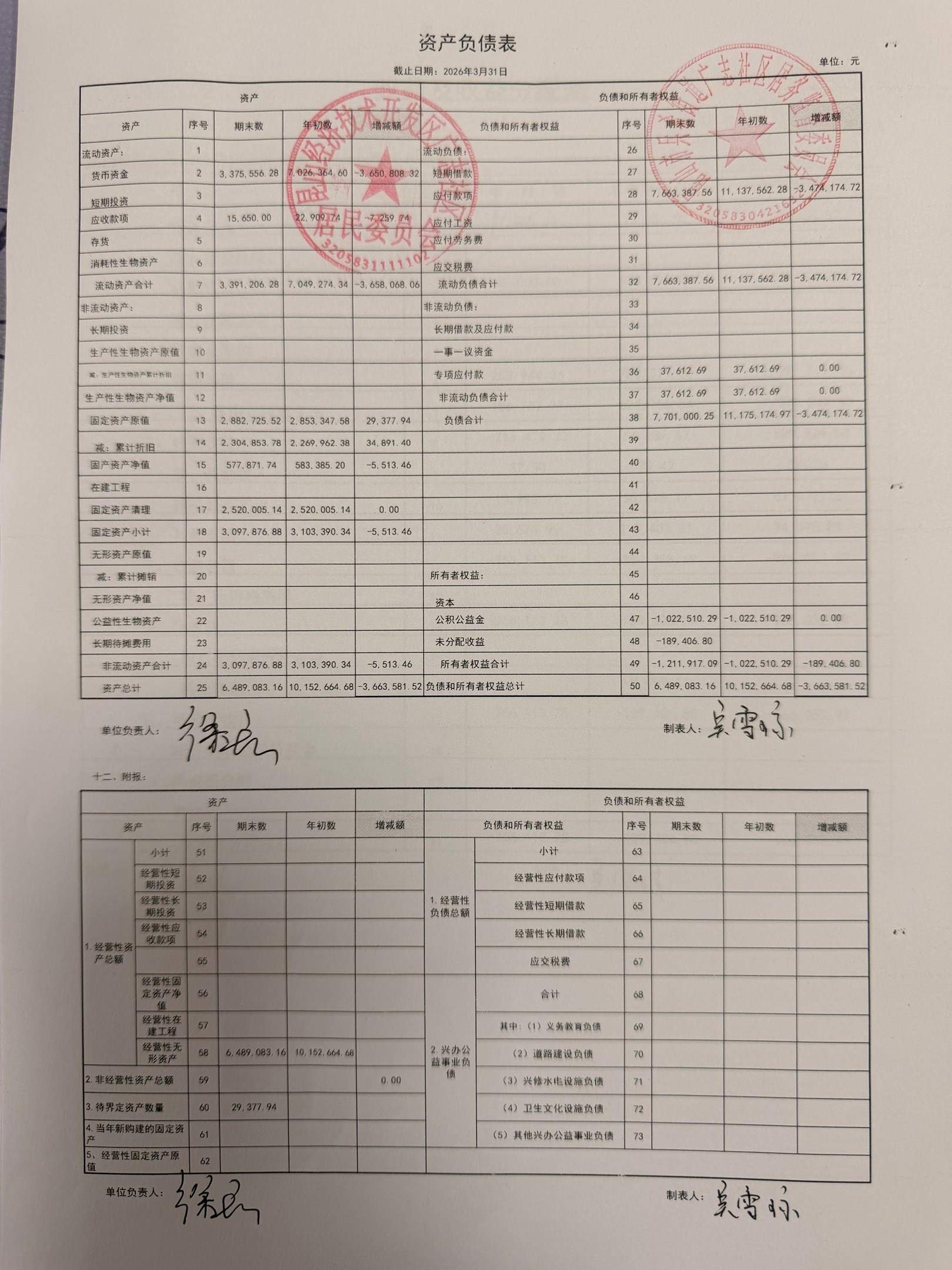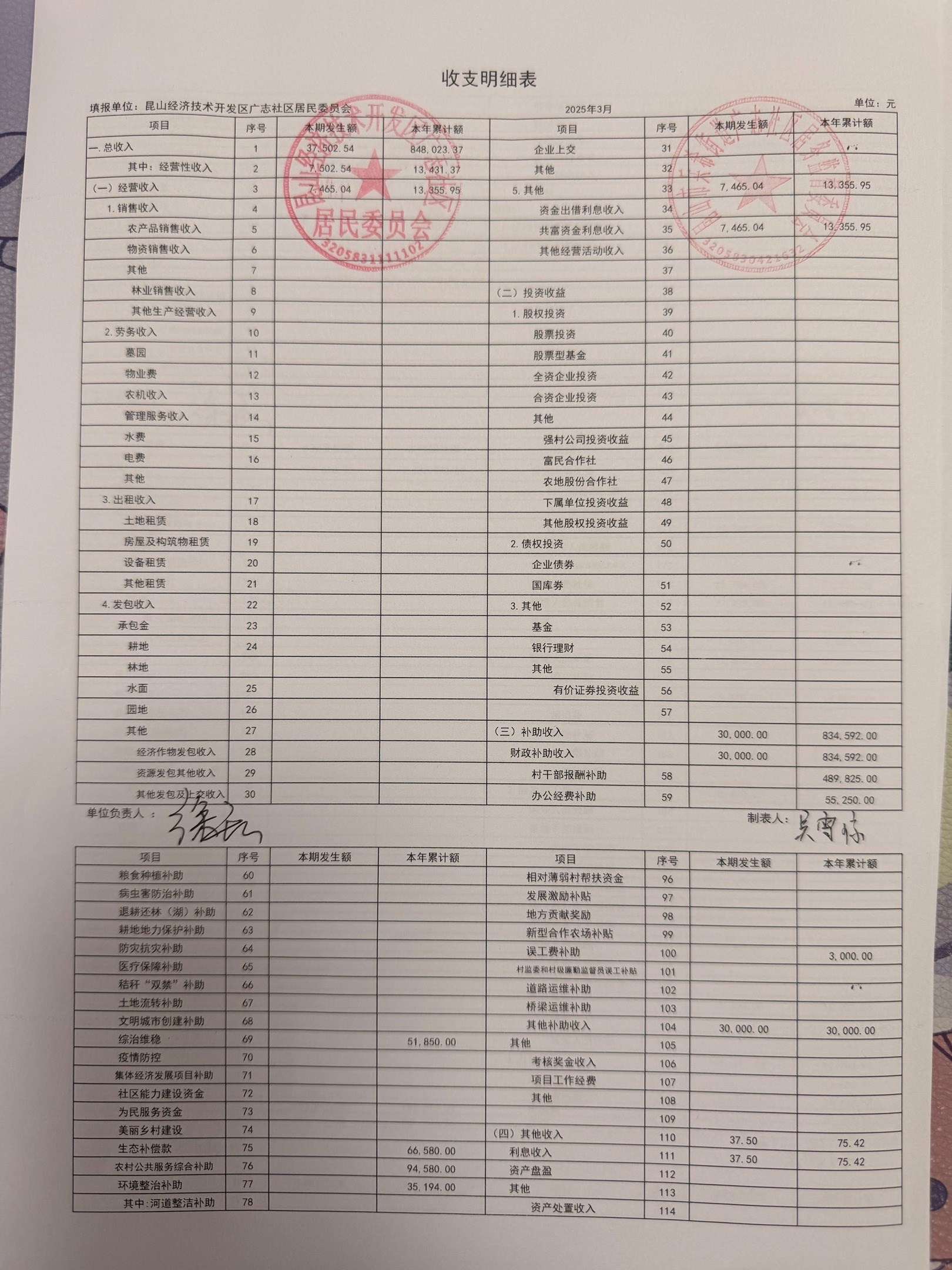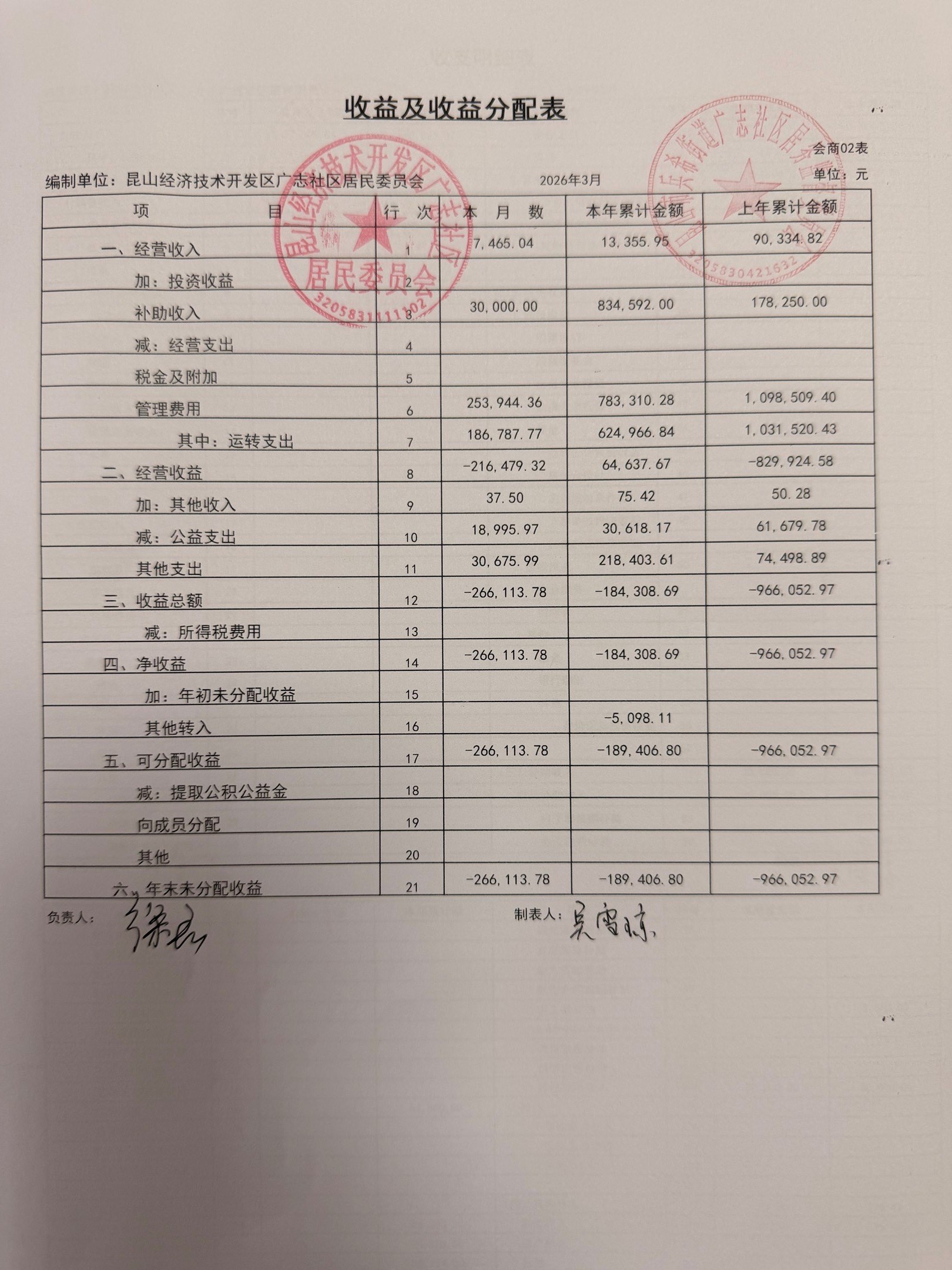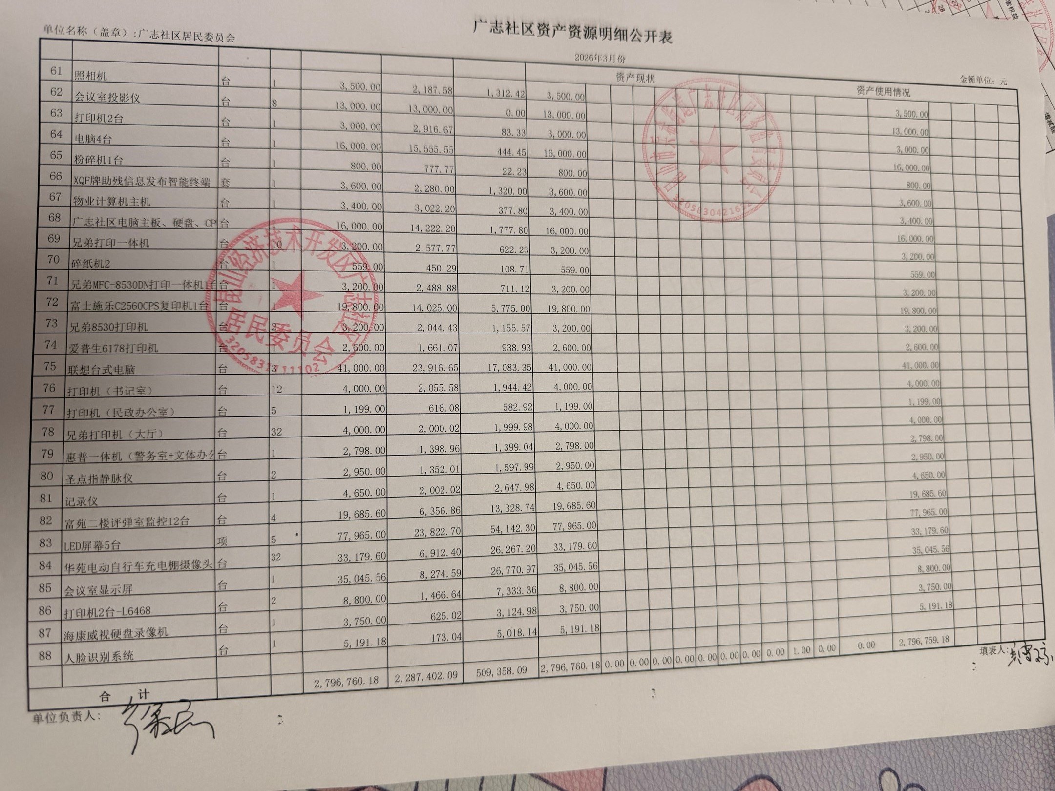 2026年3月份广志社区财务公开资料