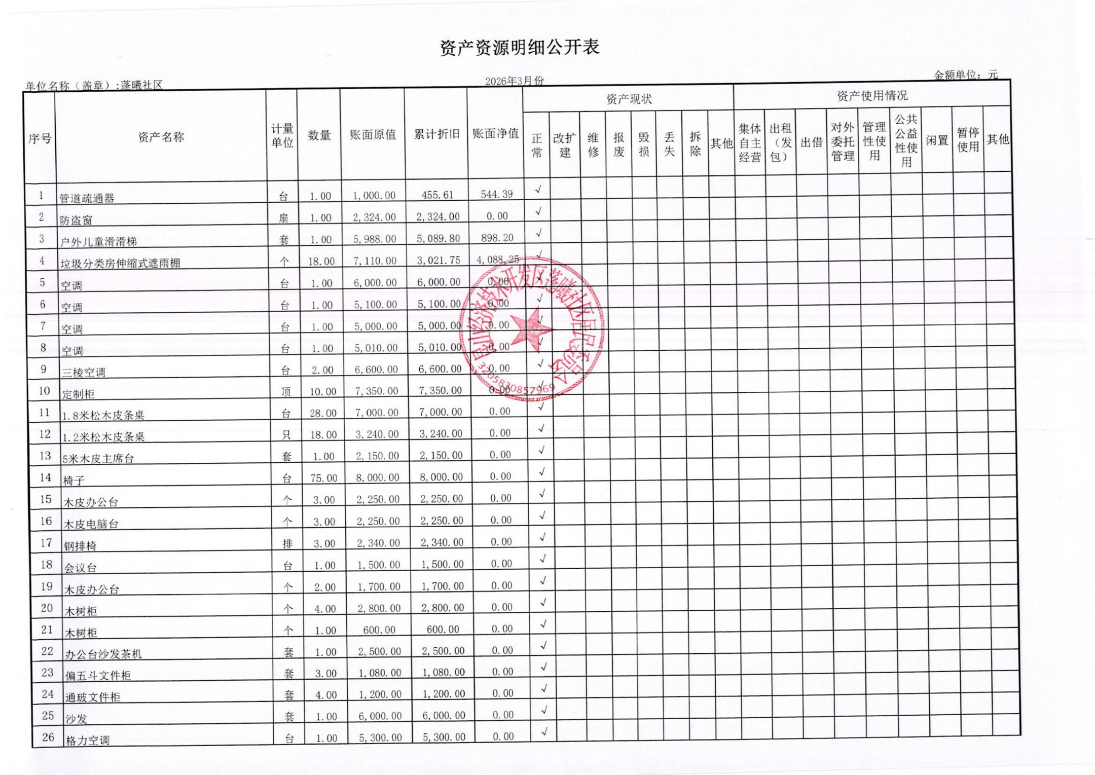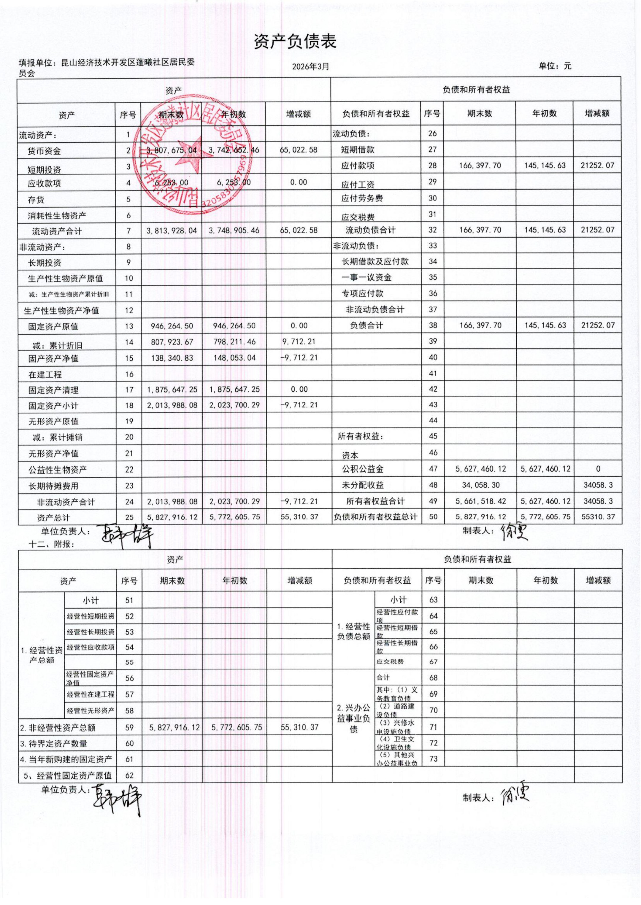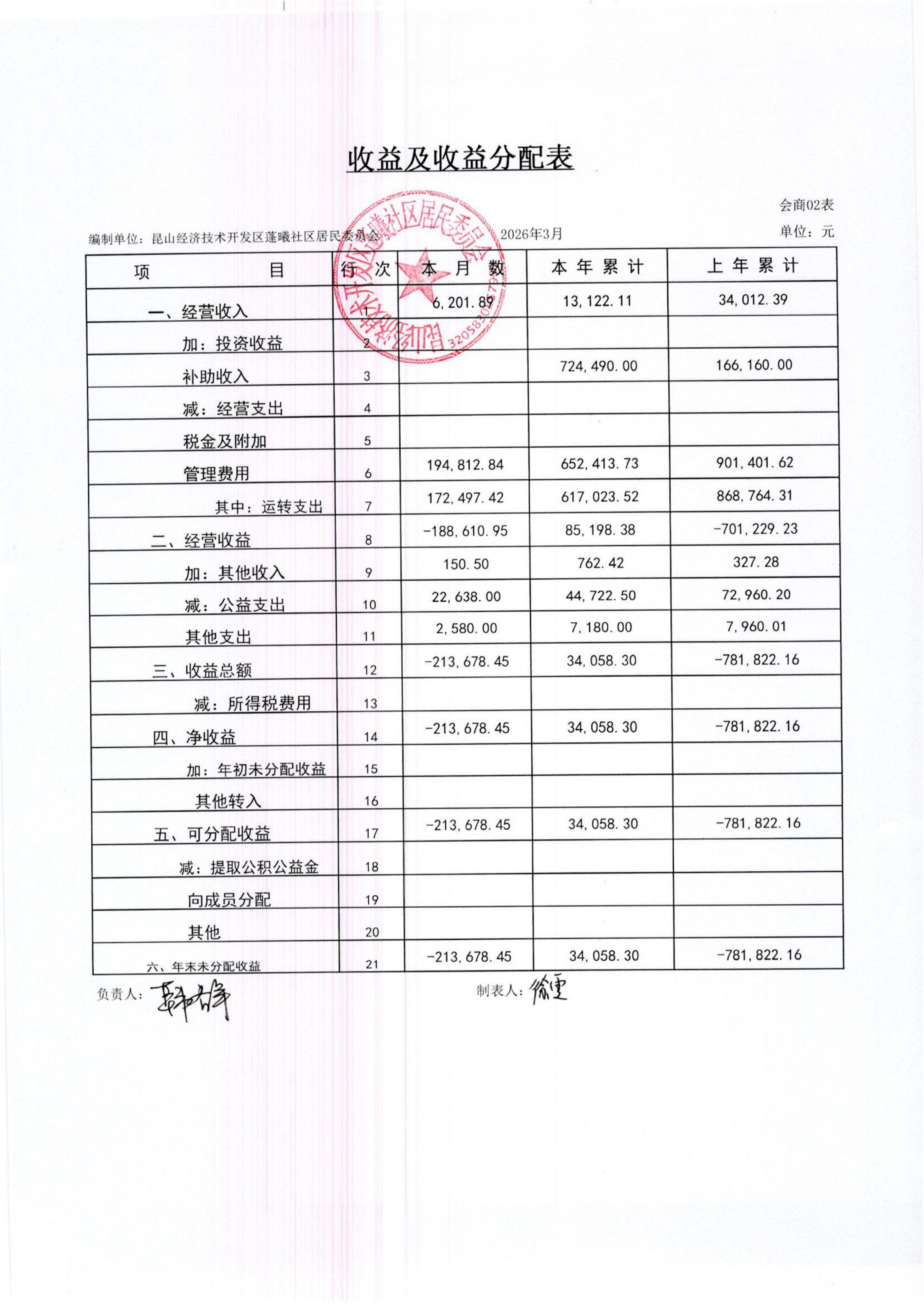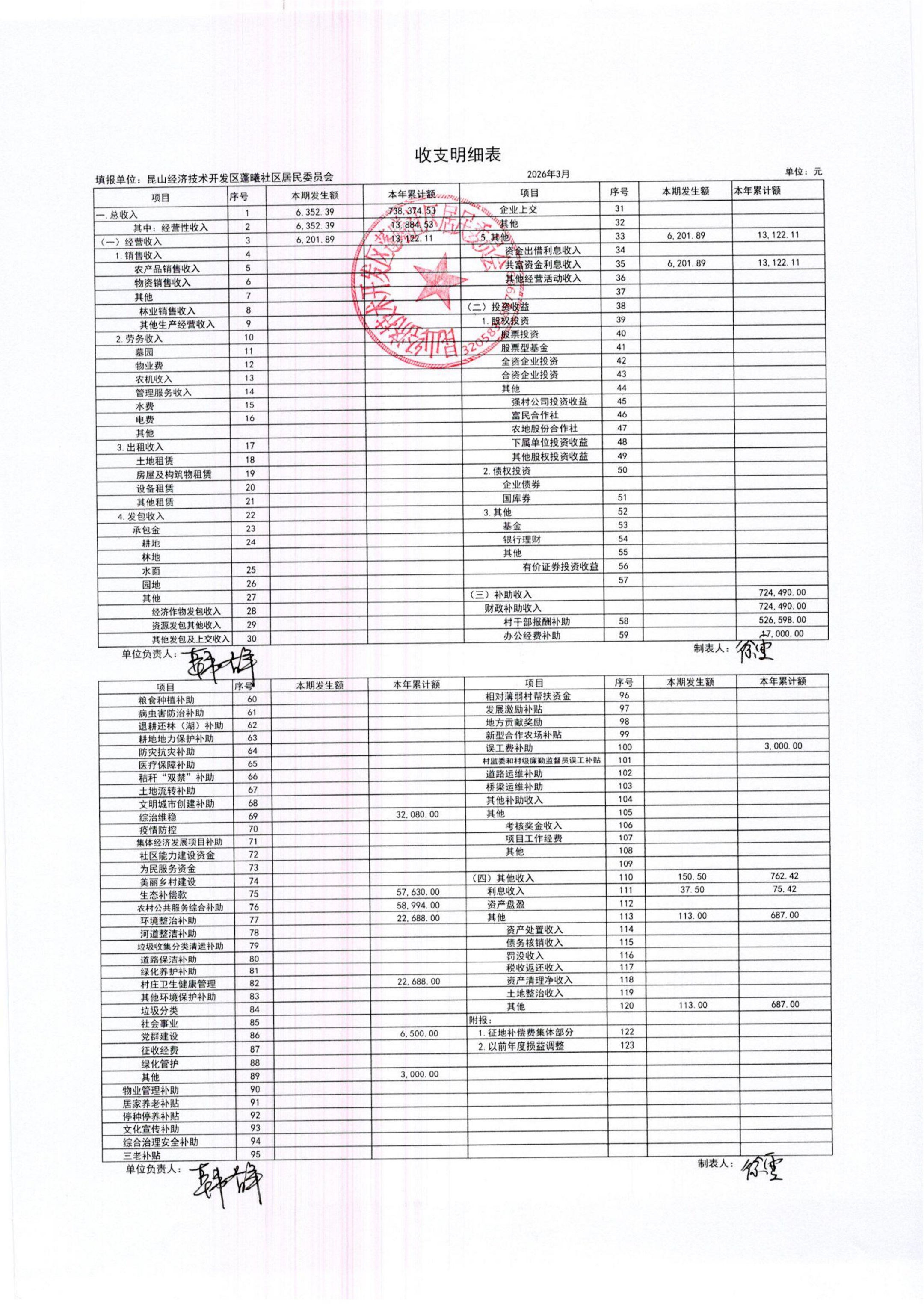 2026年3月蓬曦社区财务公开