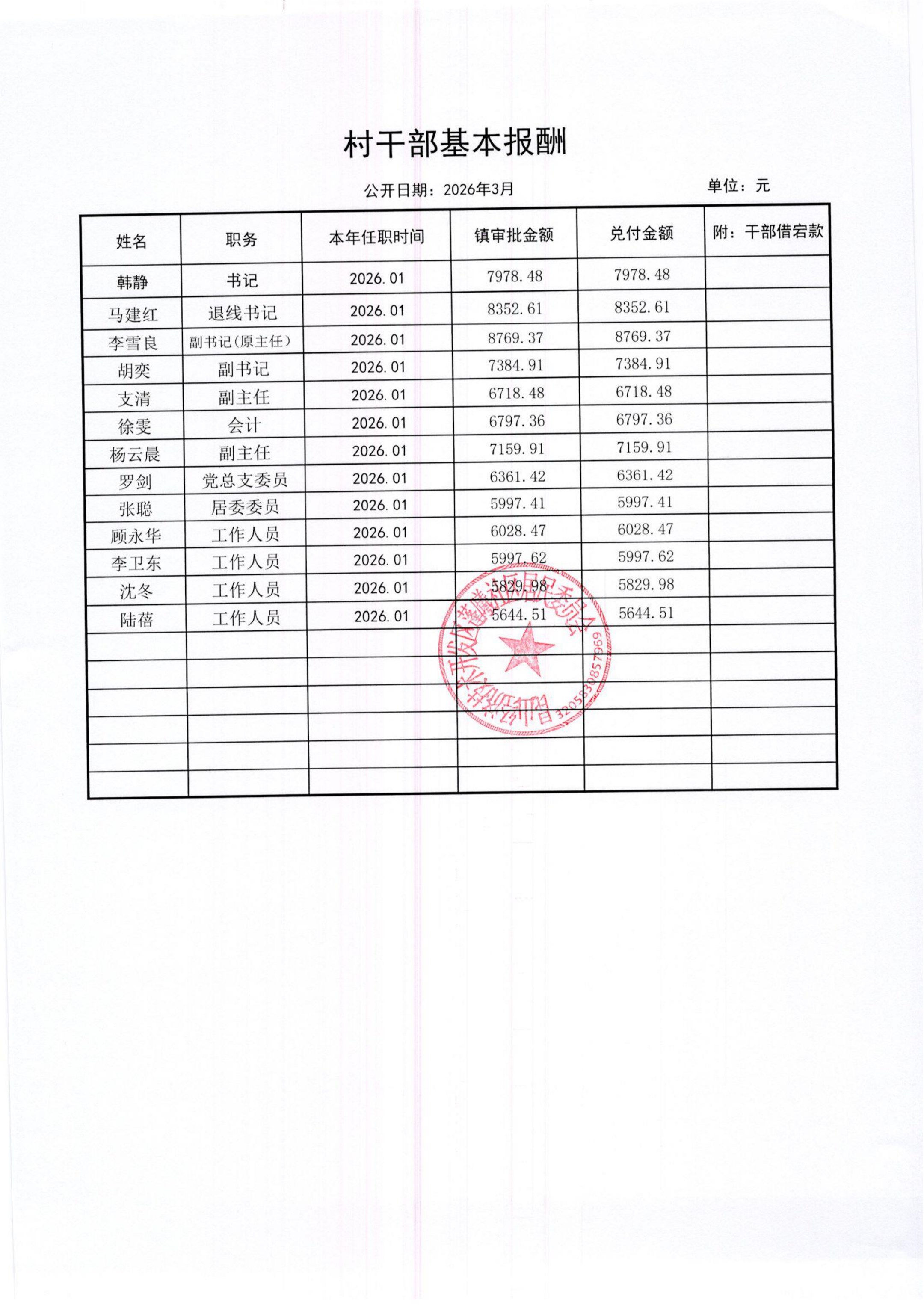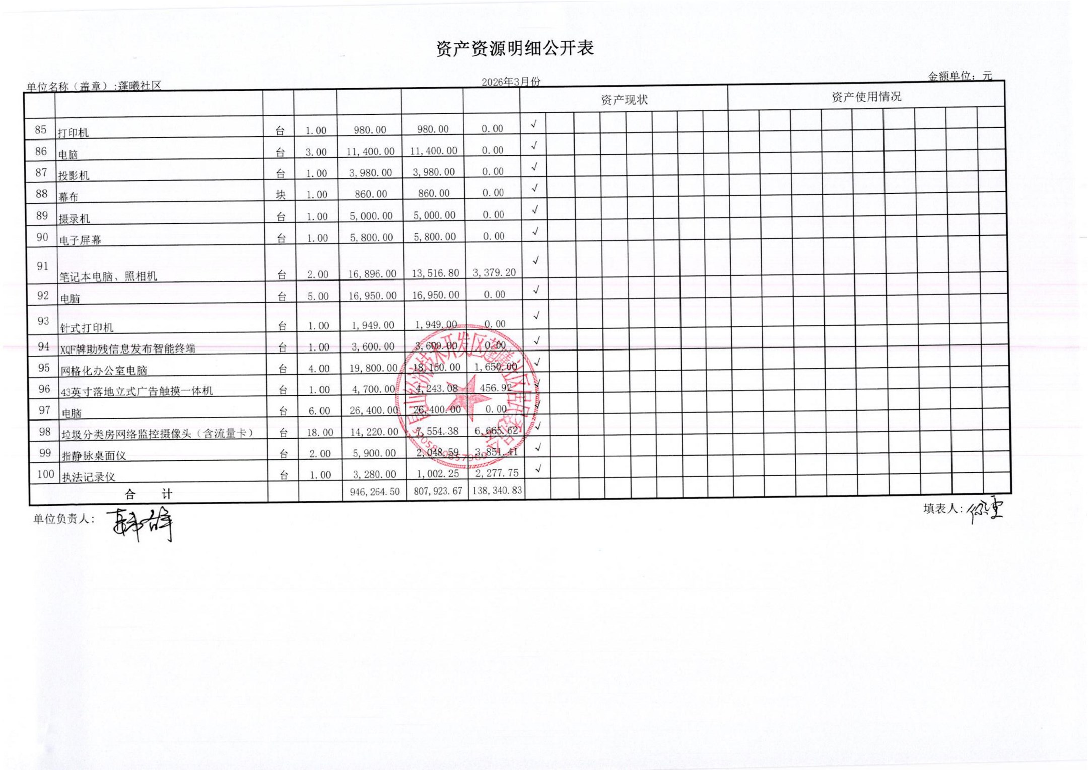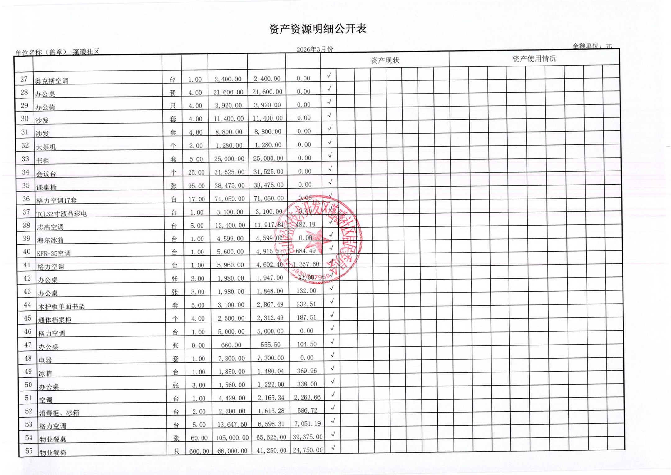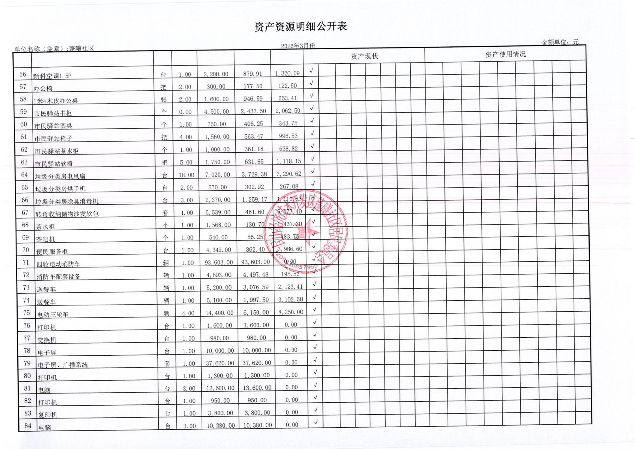 2026年3月蓬曦社区财务公开