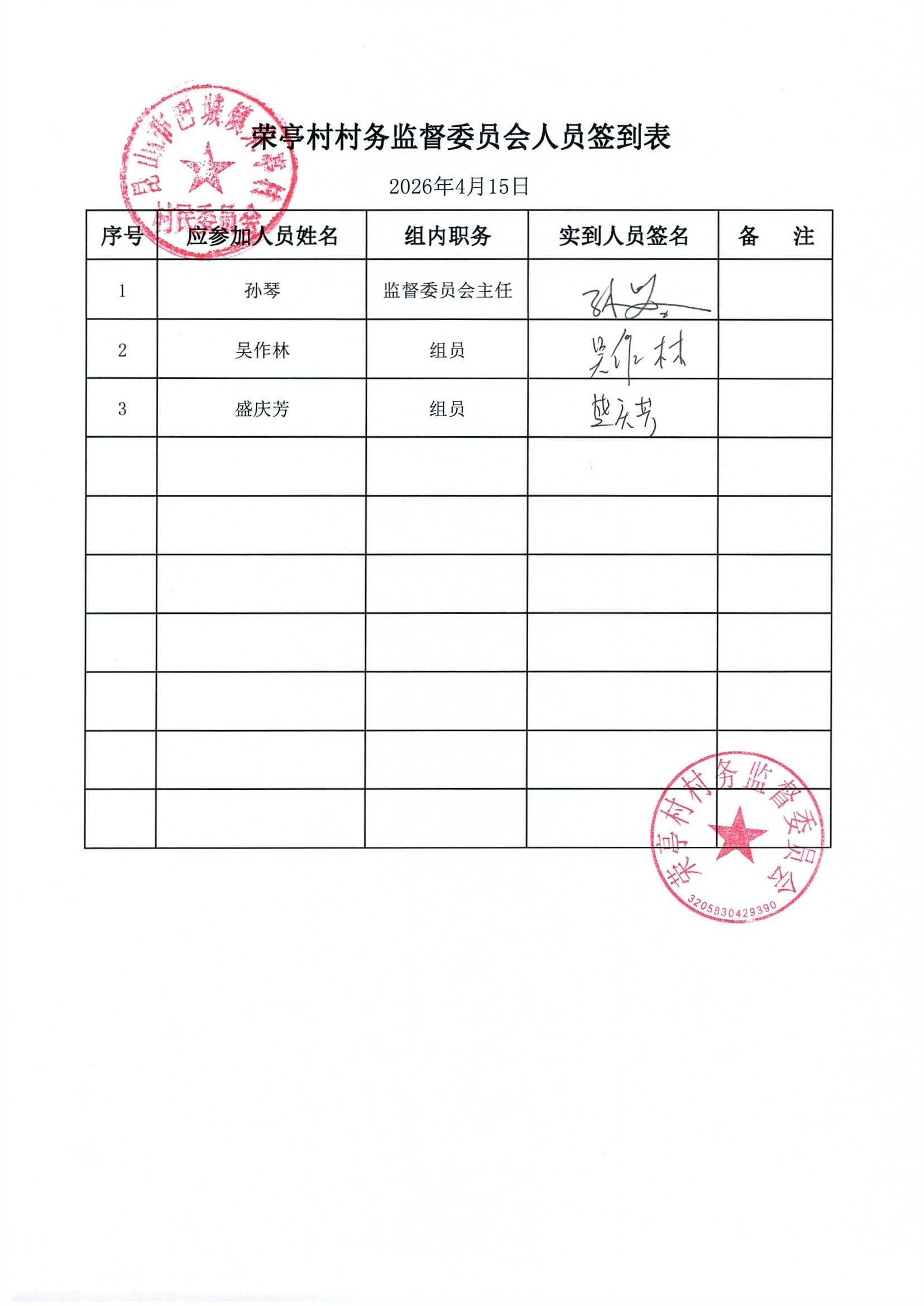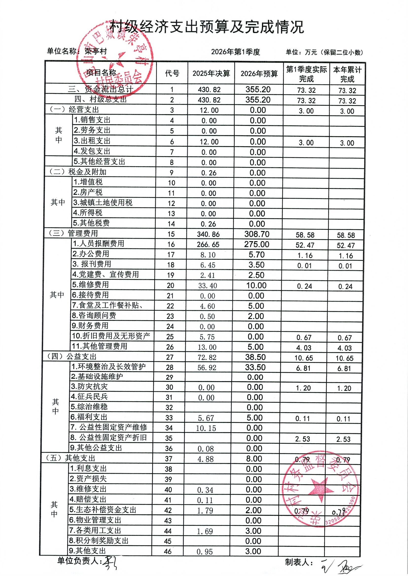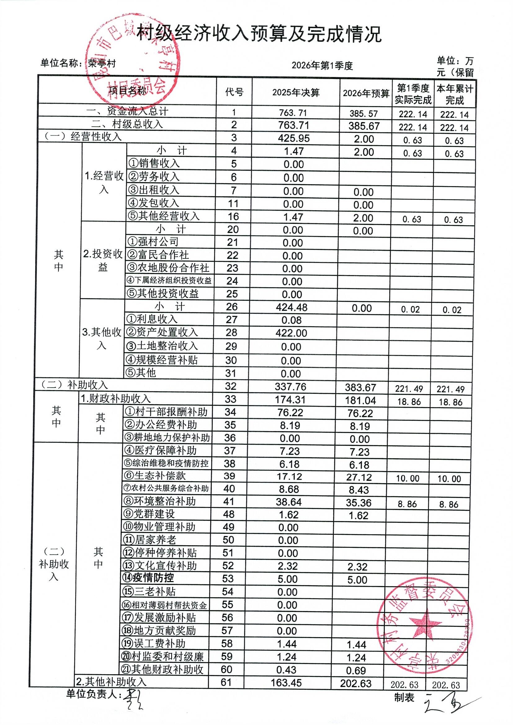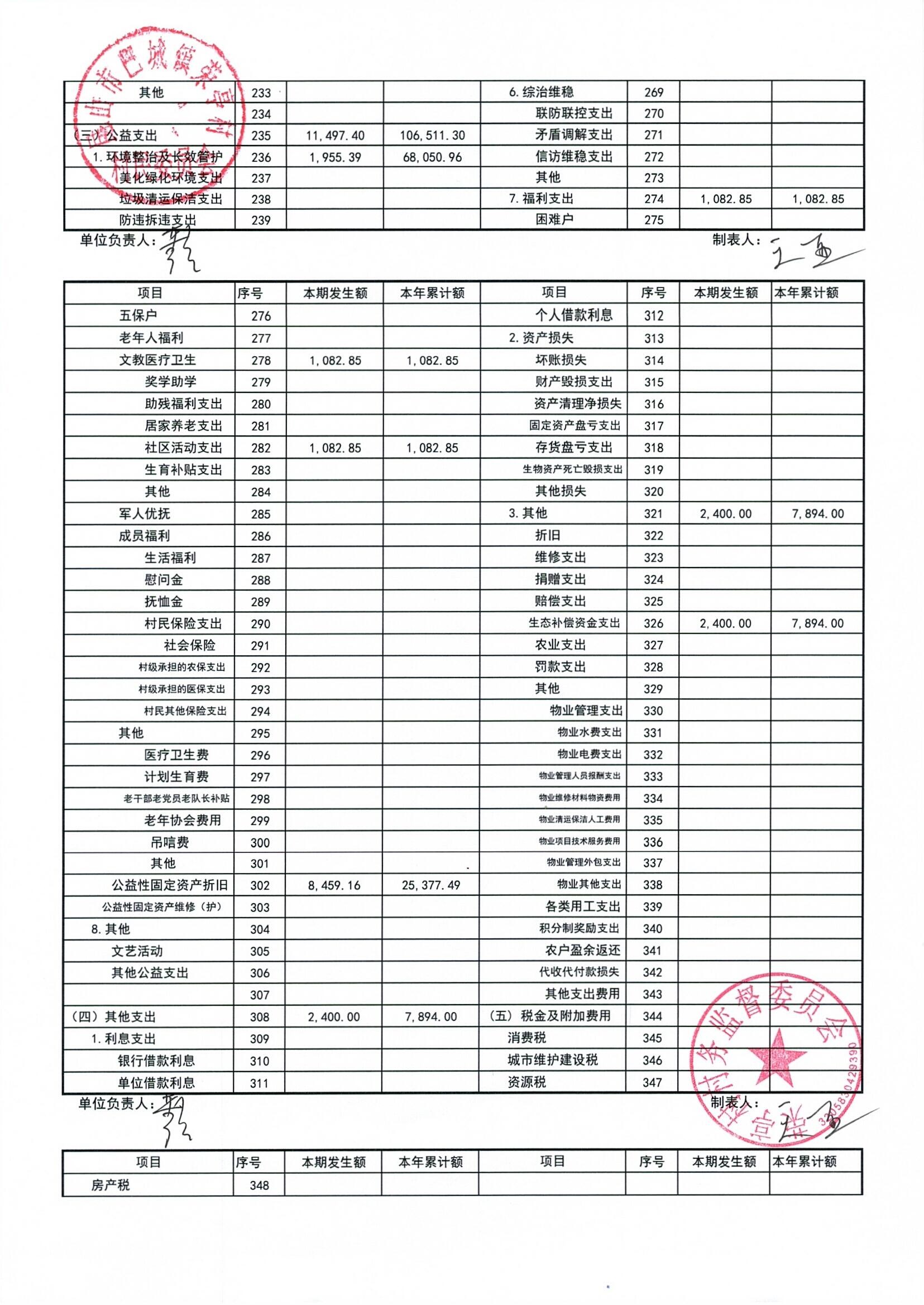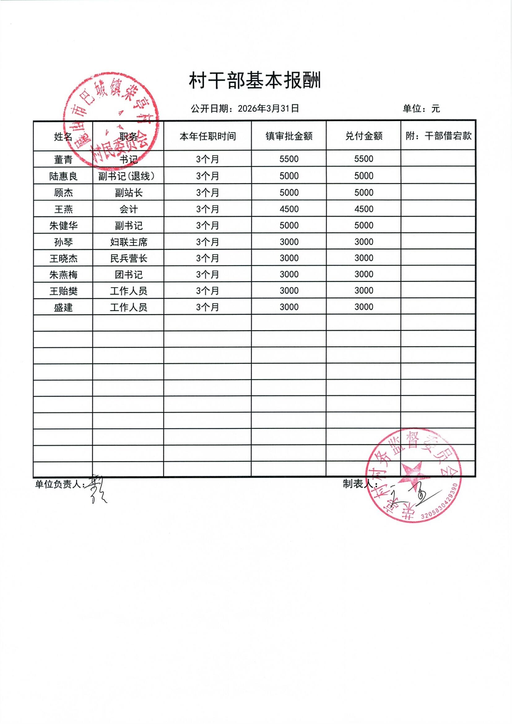 荣亭村2026年3月份财务公开