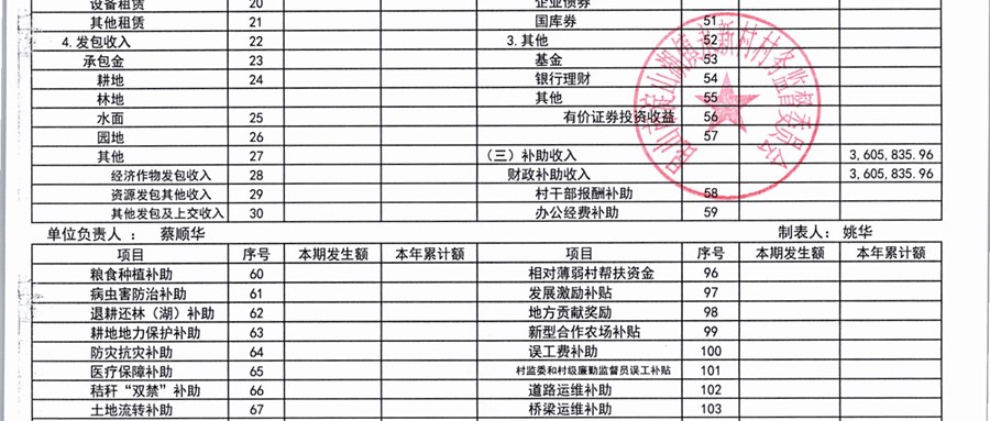 2026年3月永新村村民委员会财务公开