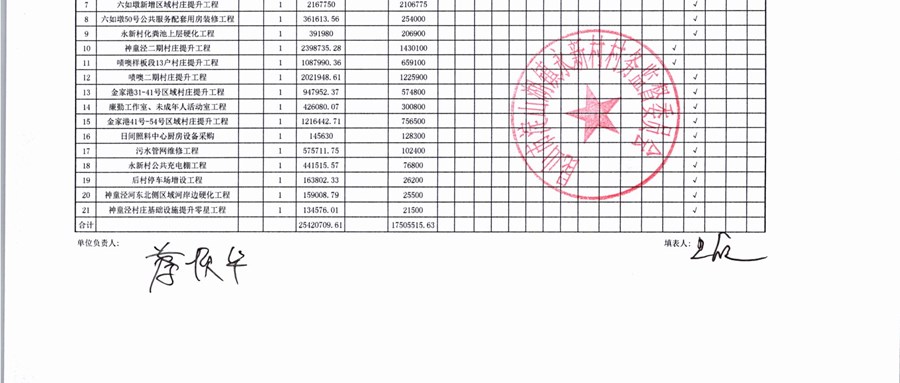 村盖章事项名录