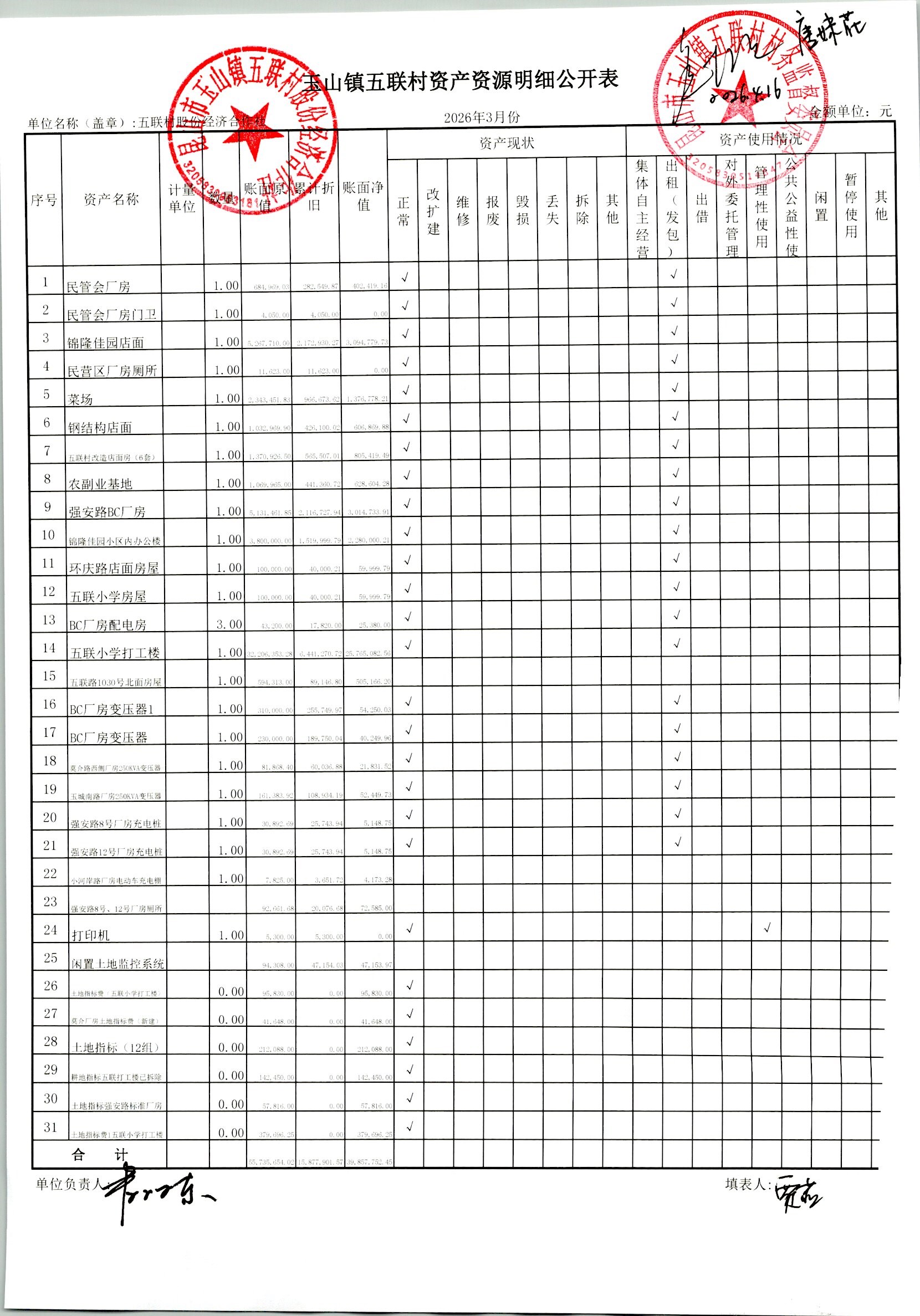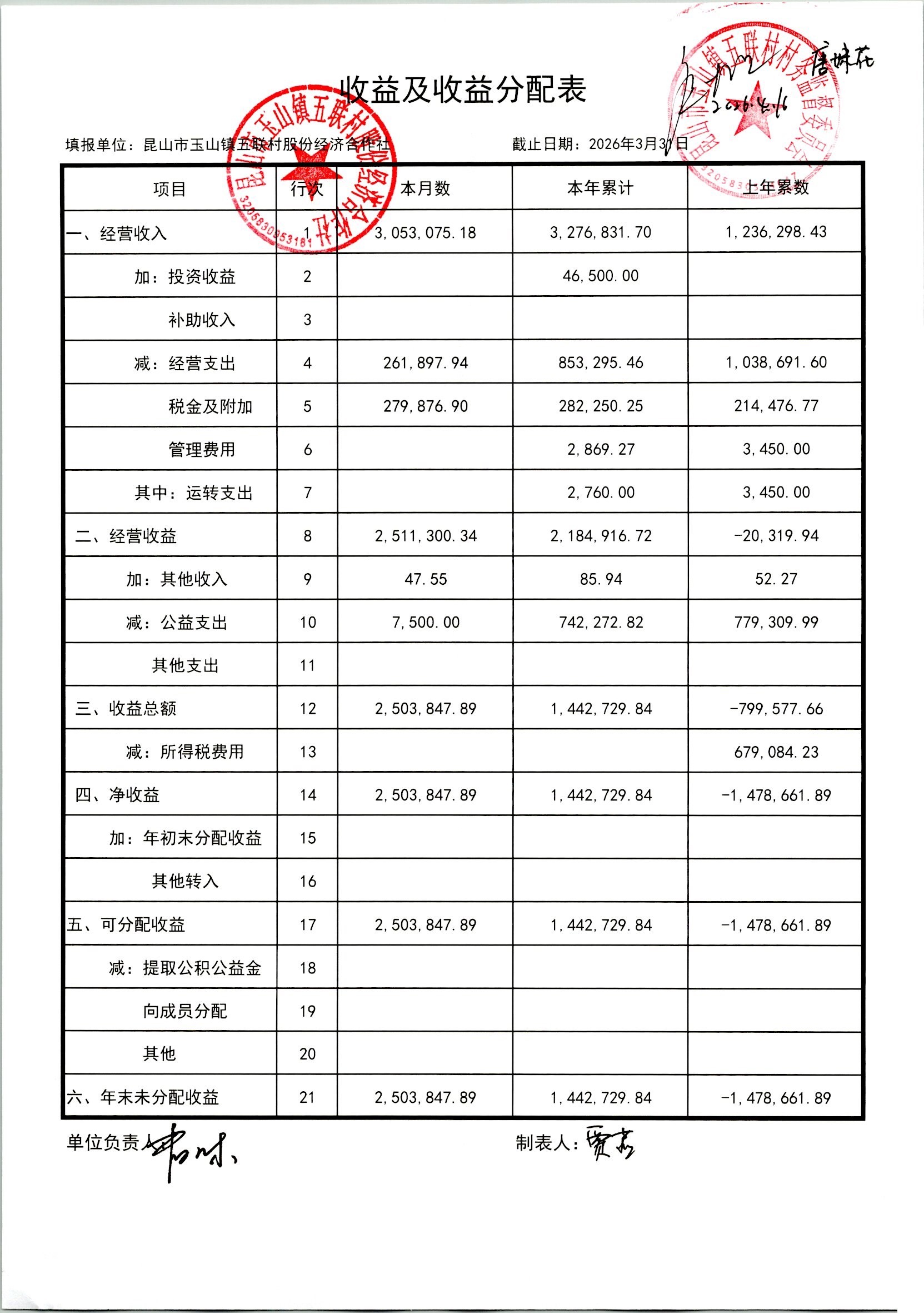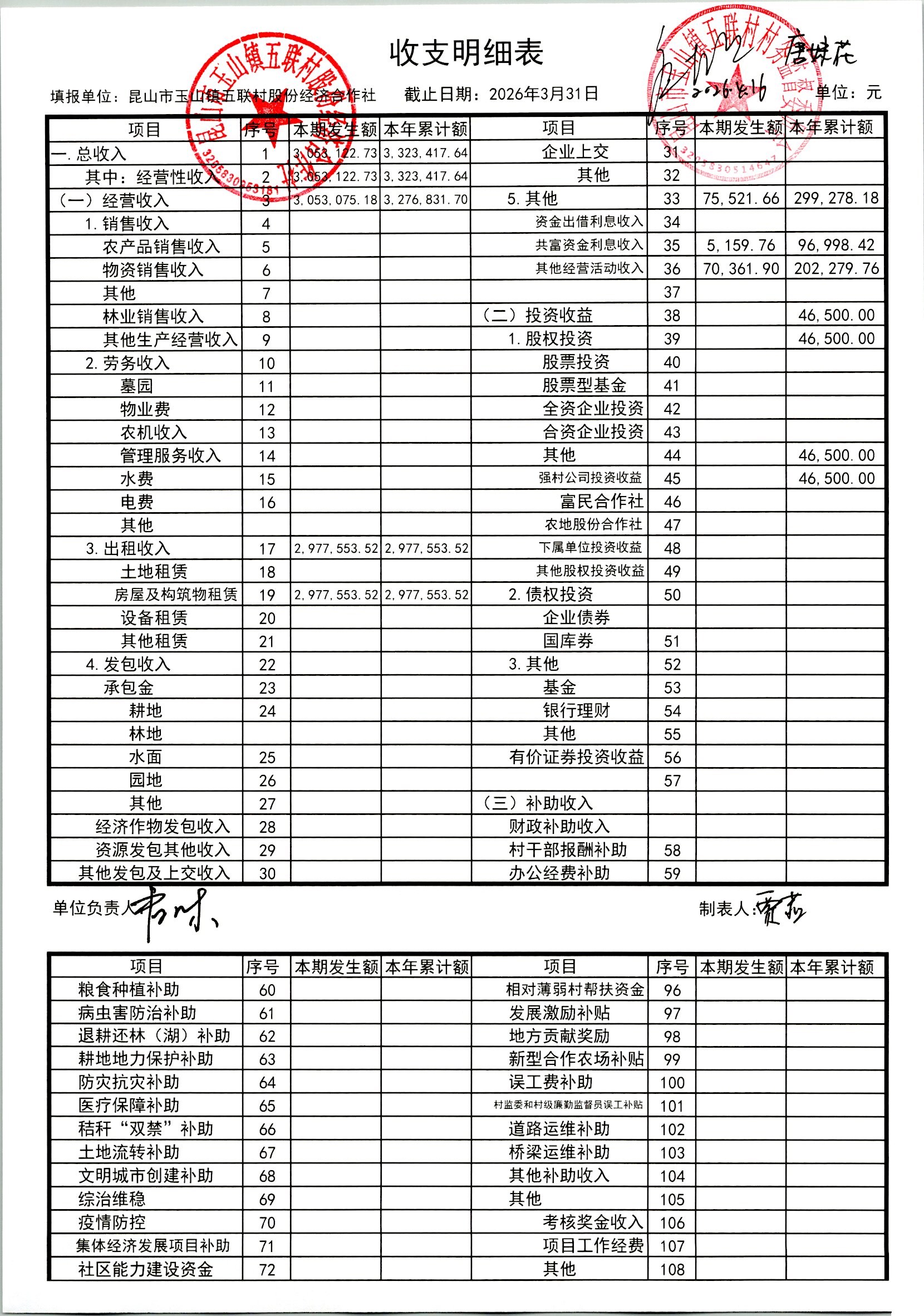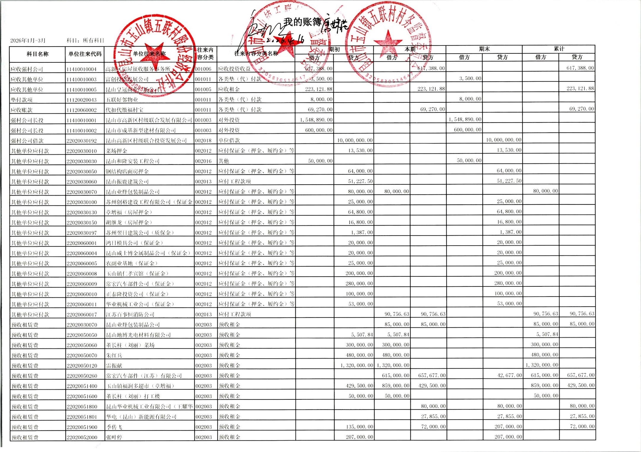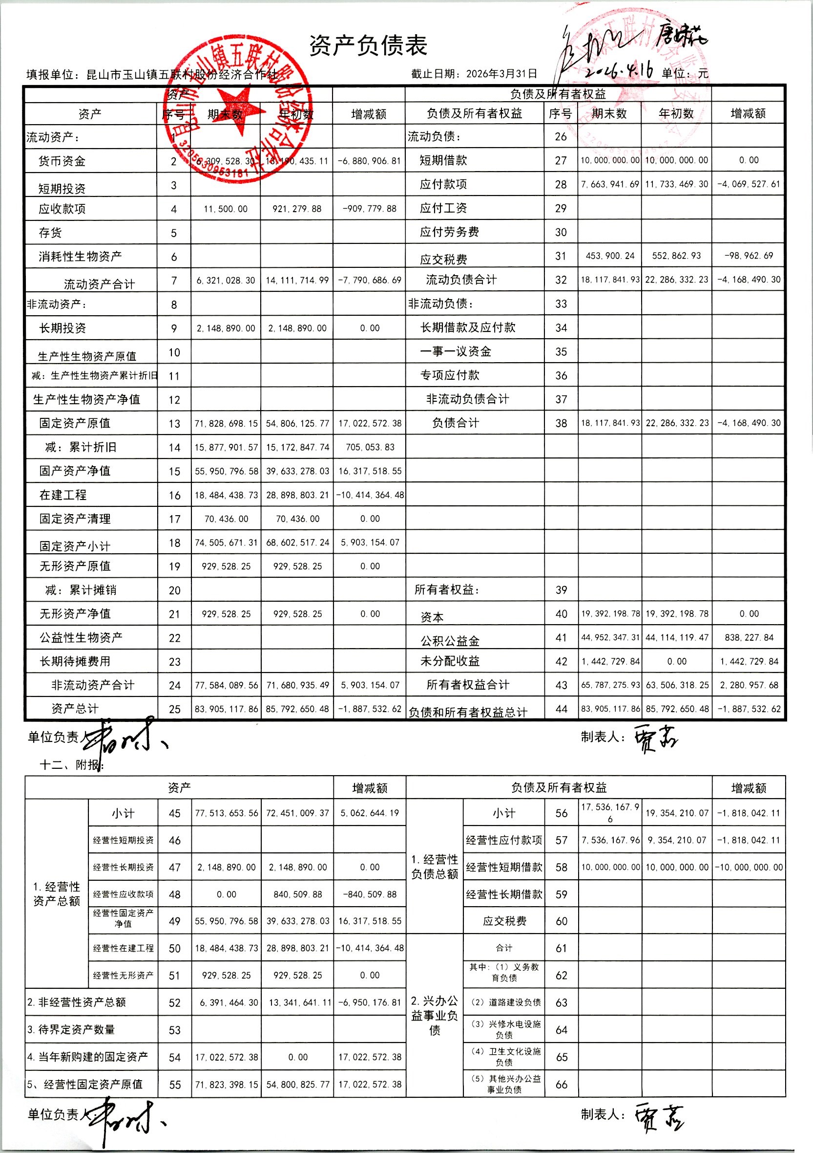 2026年4月股份经济合作社财务定期公开