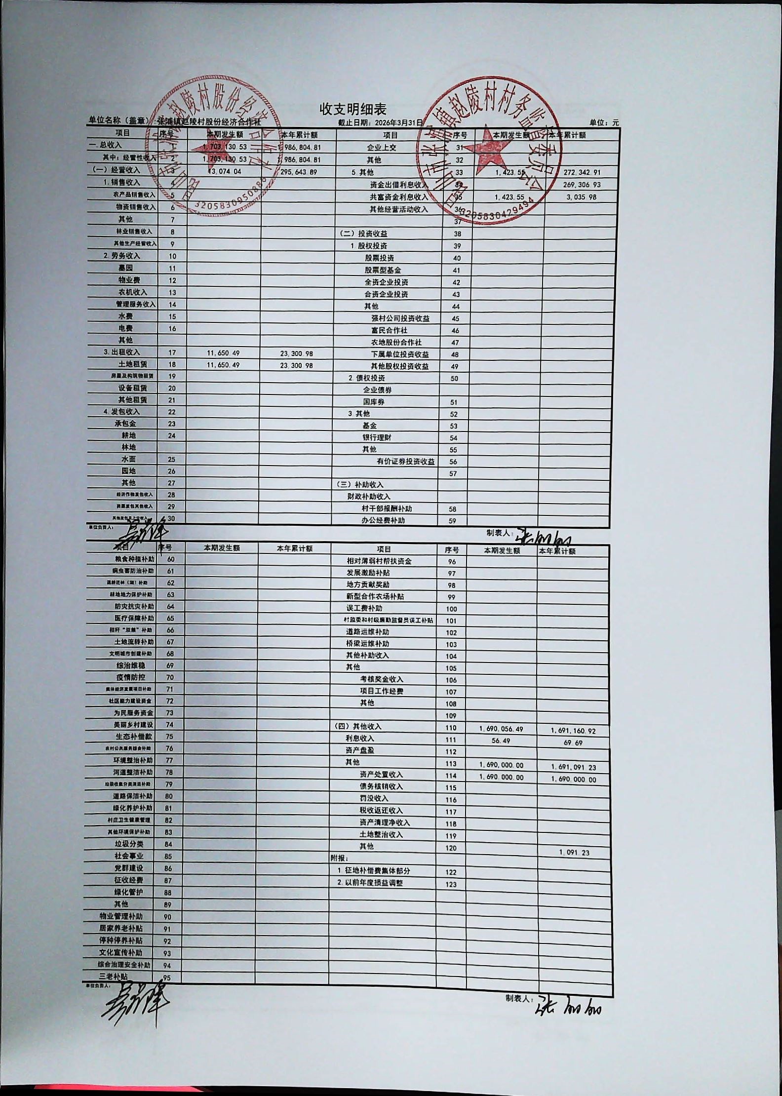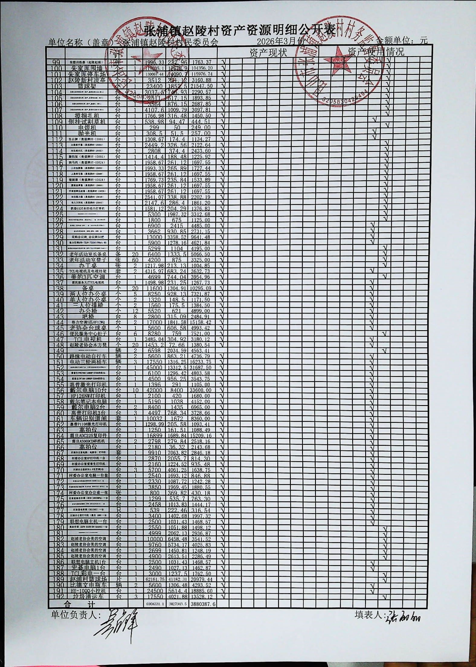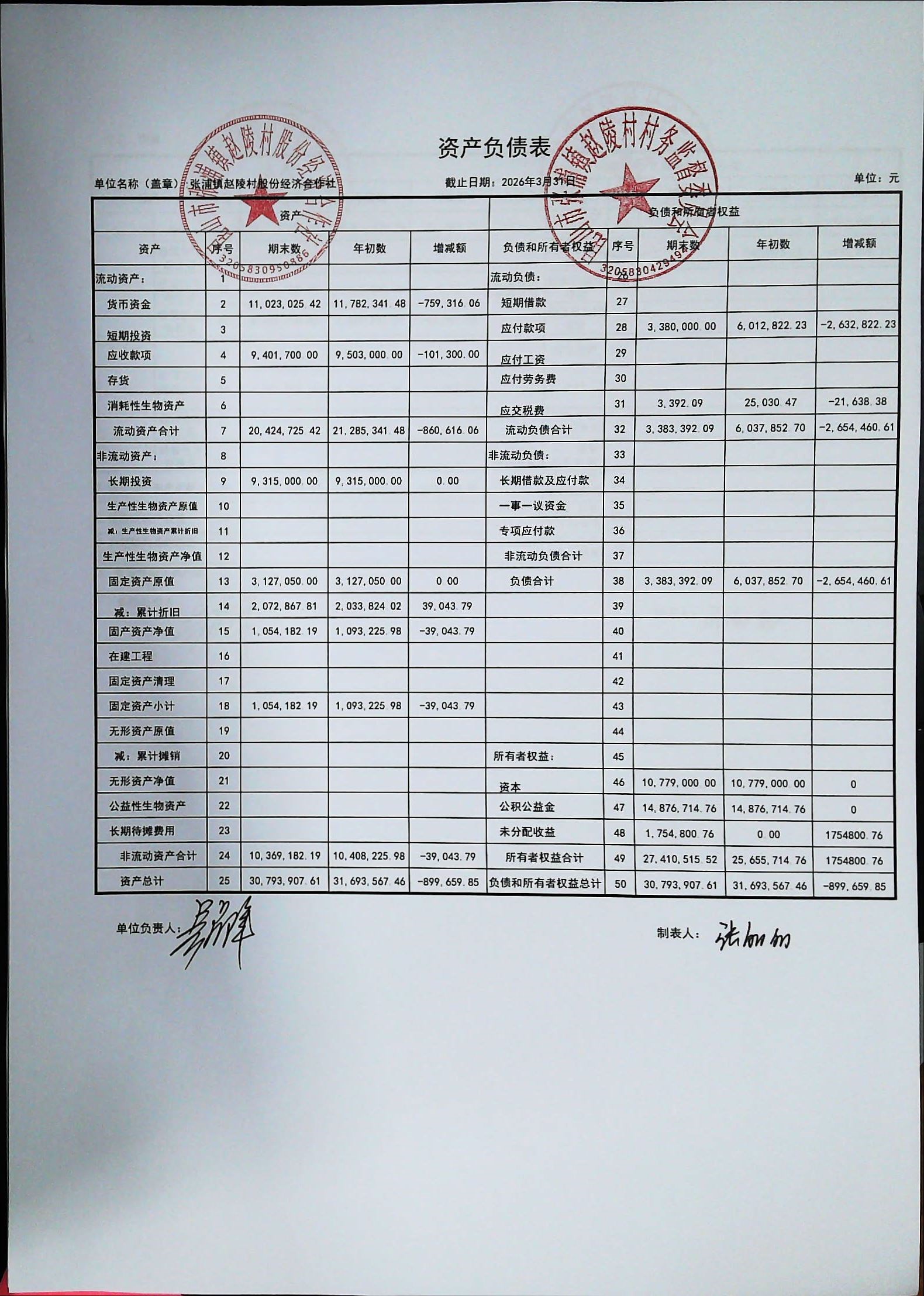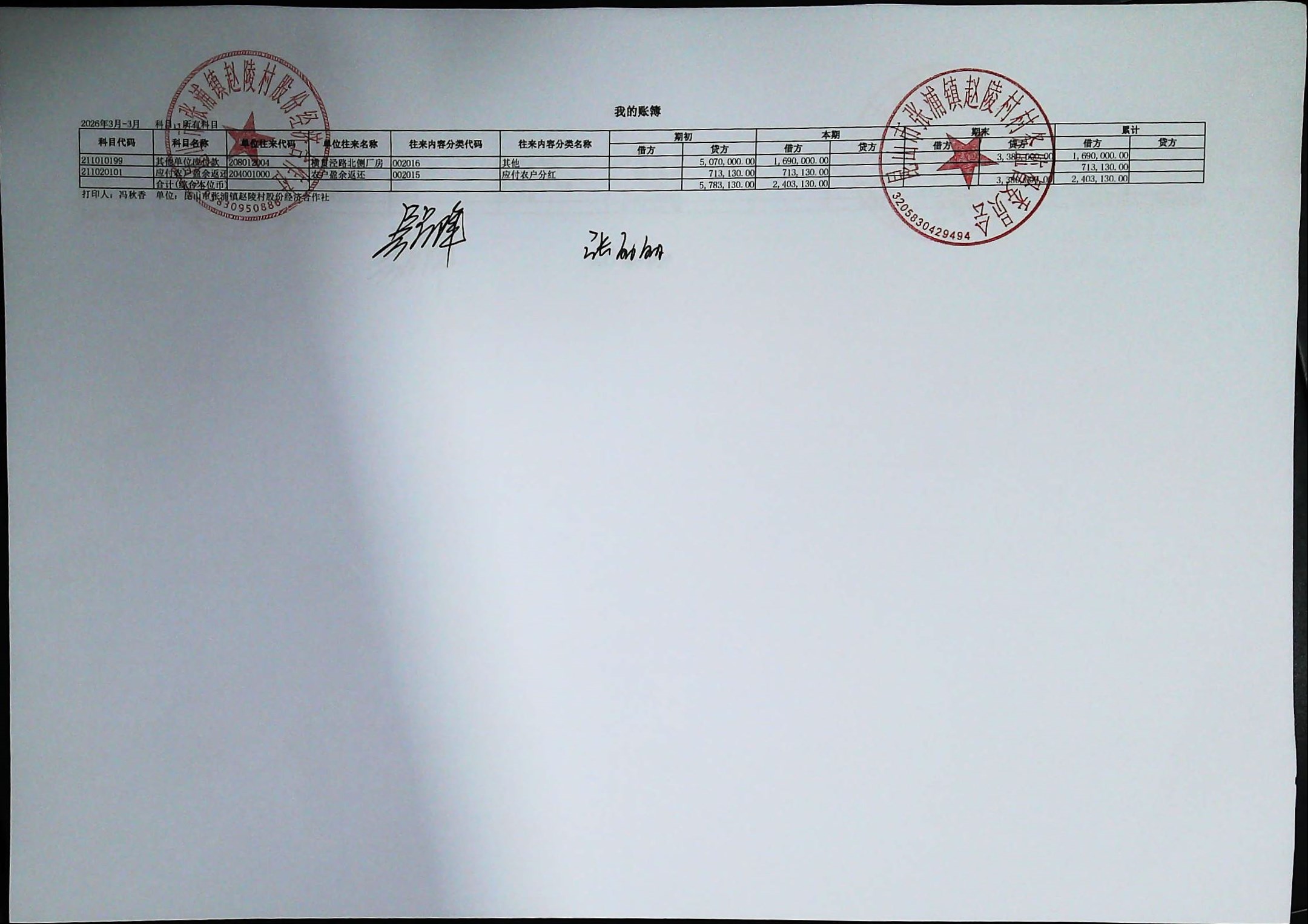 赵陵村2026年度3月份财务公开