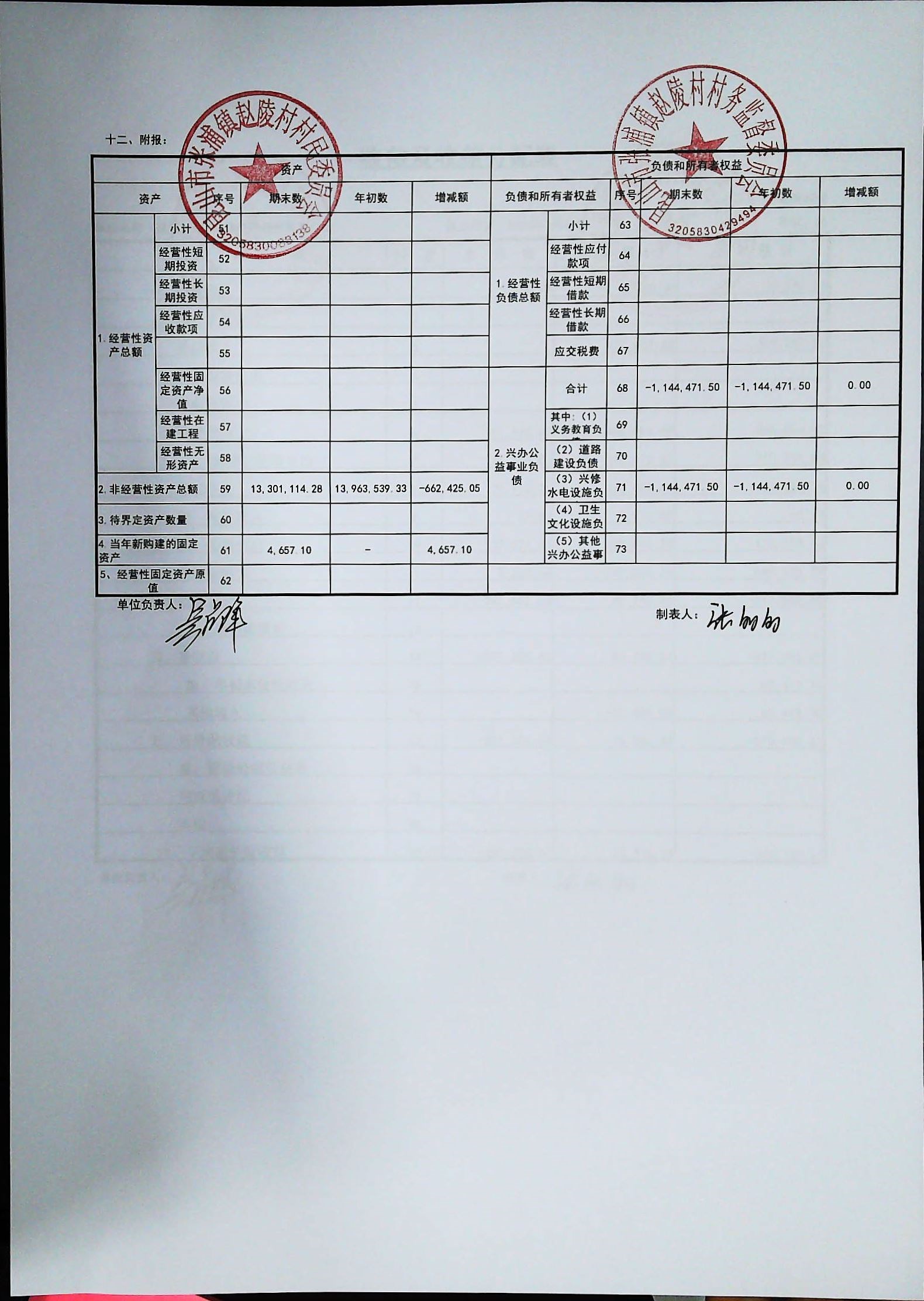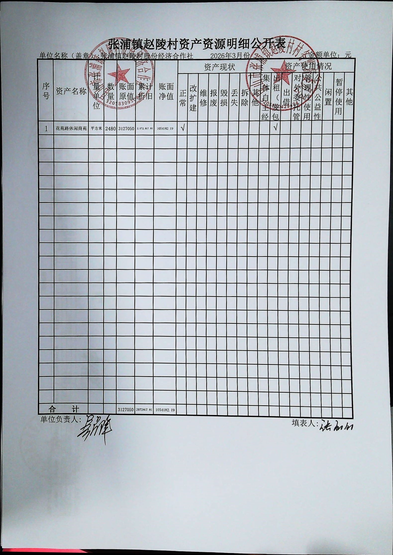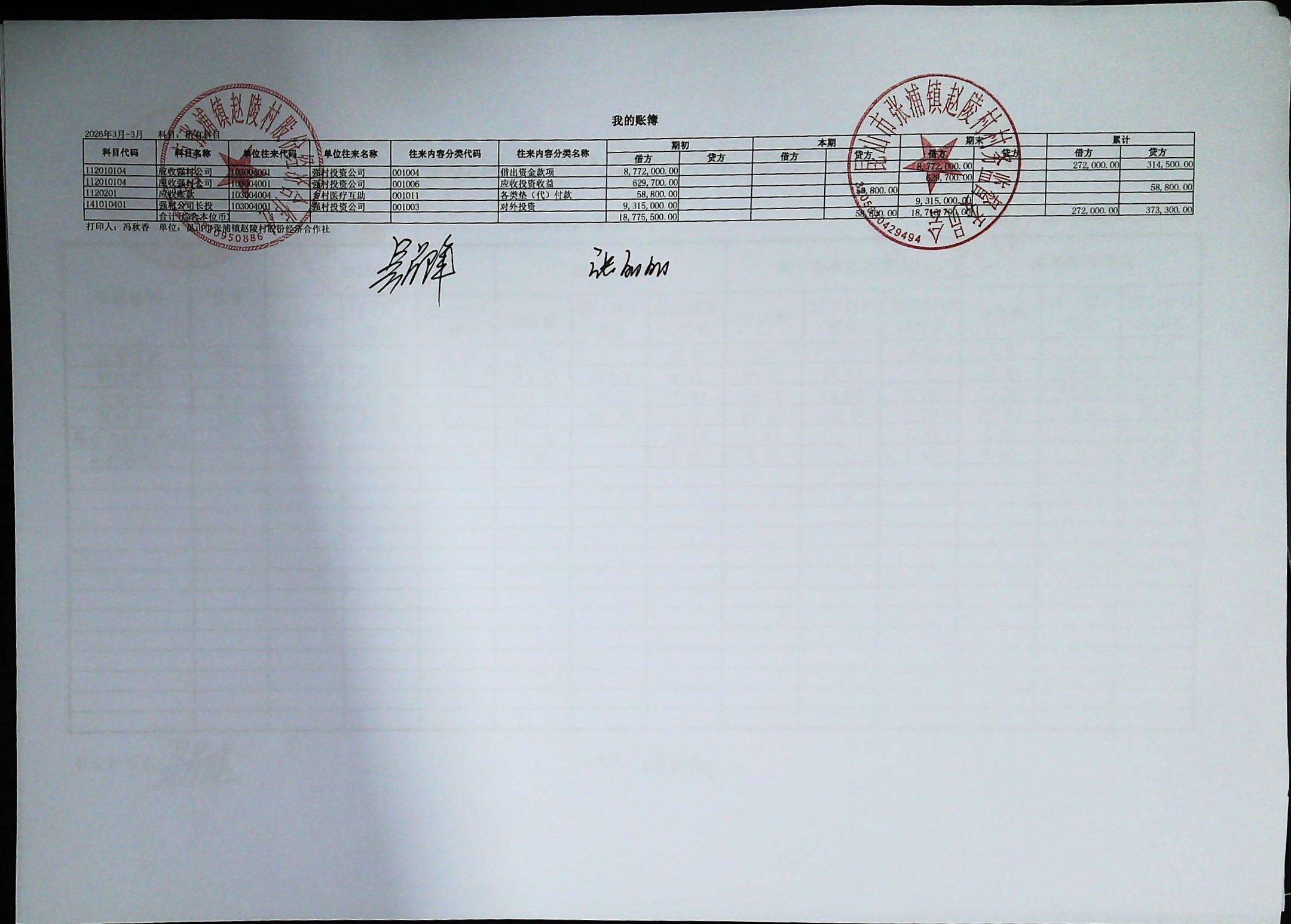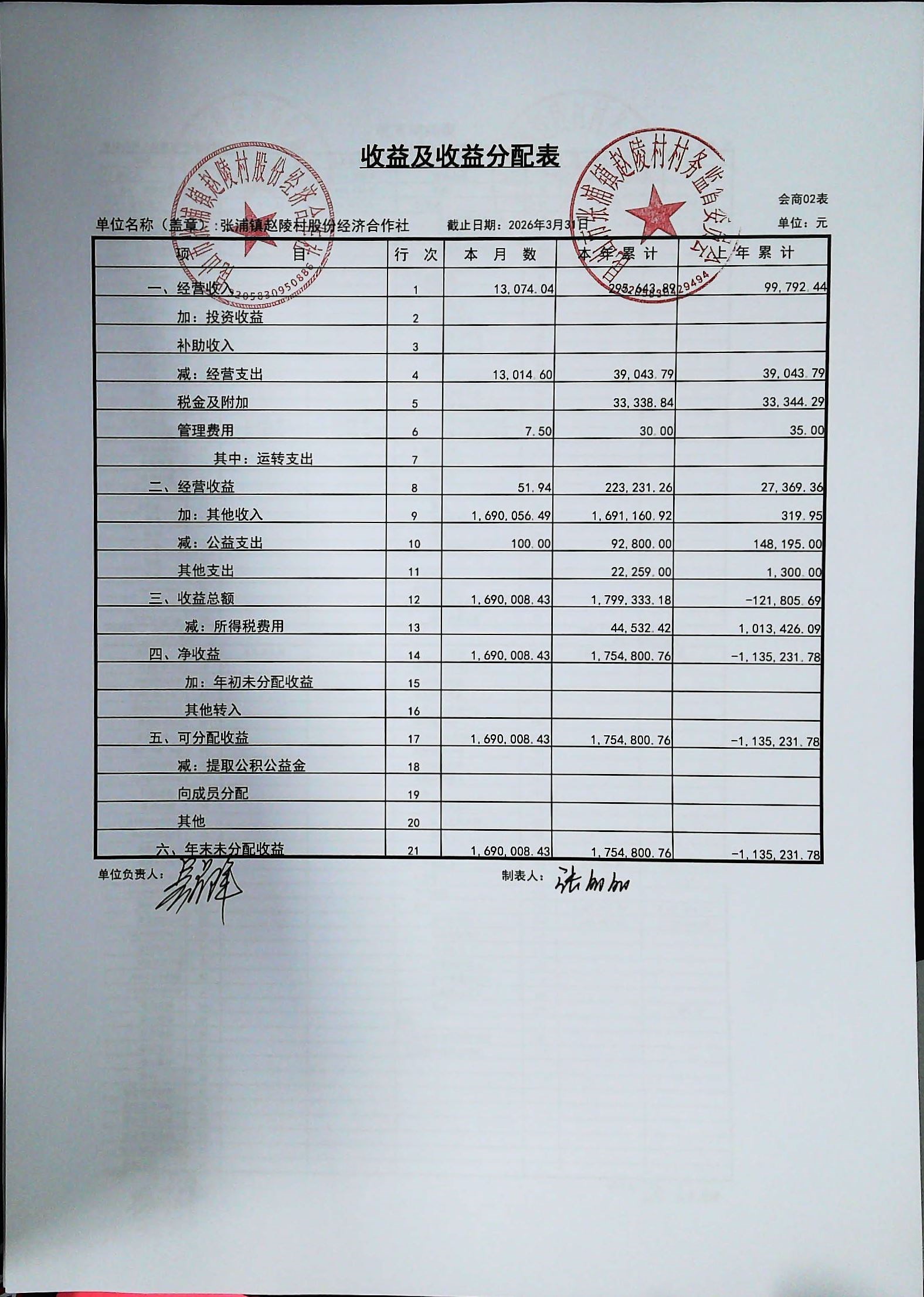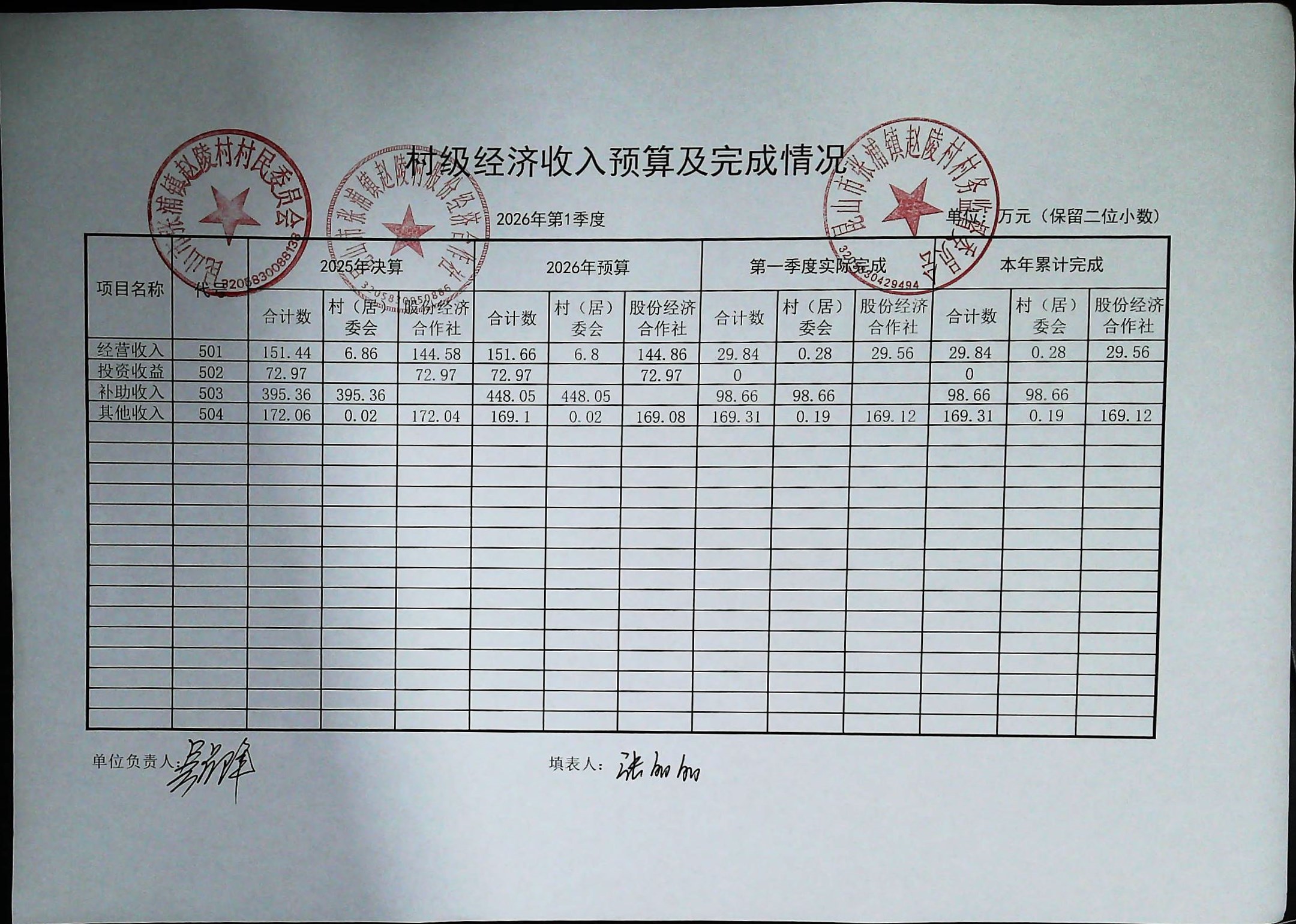 赵陵村2026年度3月份财务公开