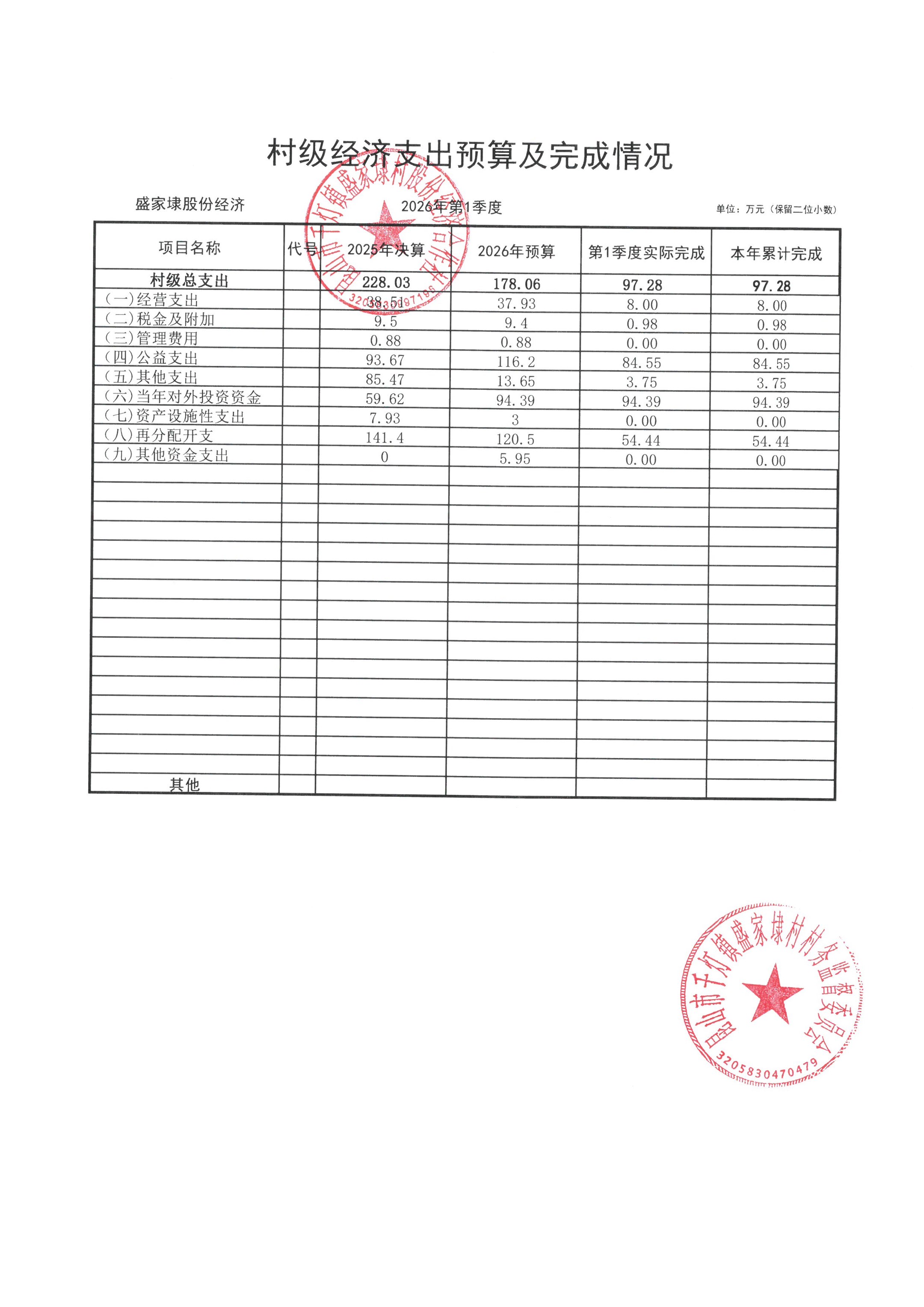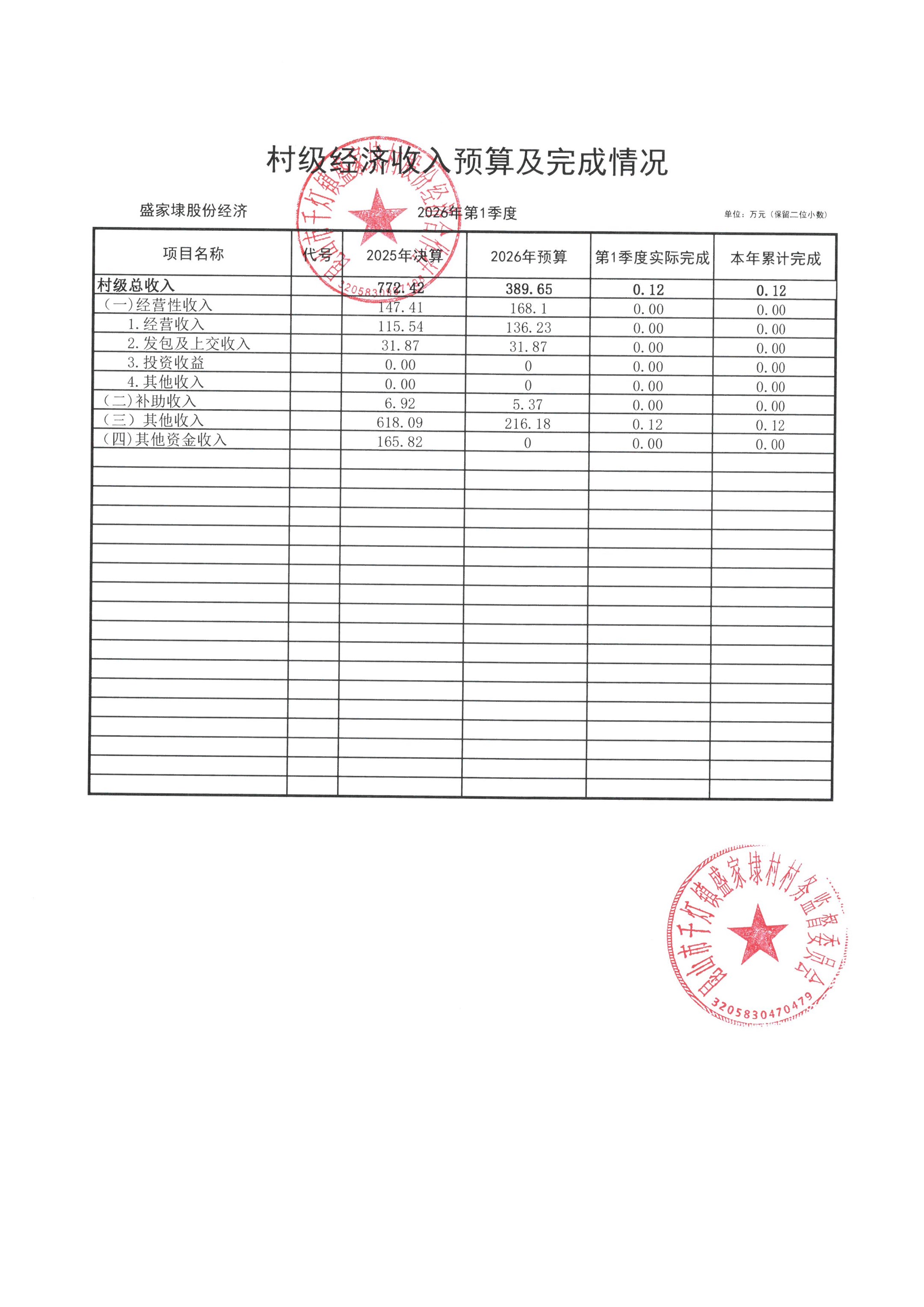 2026年03月份盛家埭村、股份经济合作社不定期公开