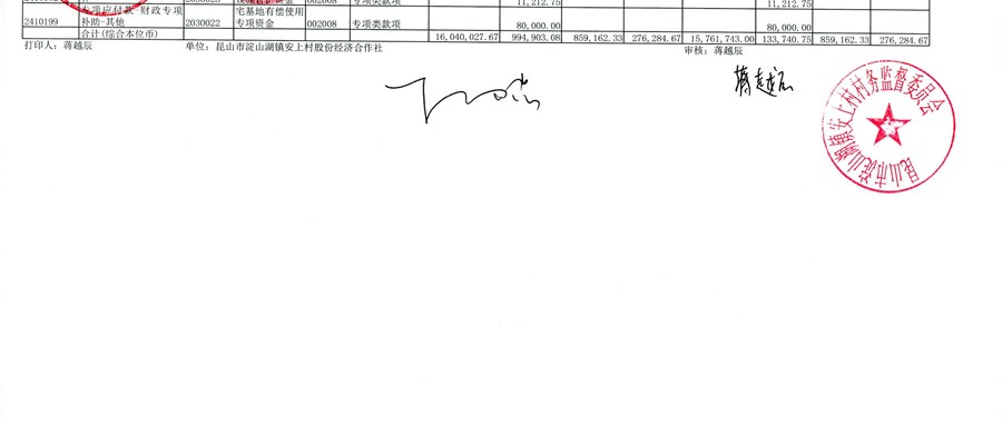 2026年3月安上村股份经济合作社财务公开