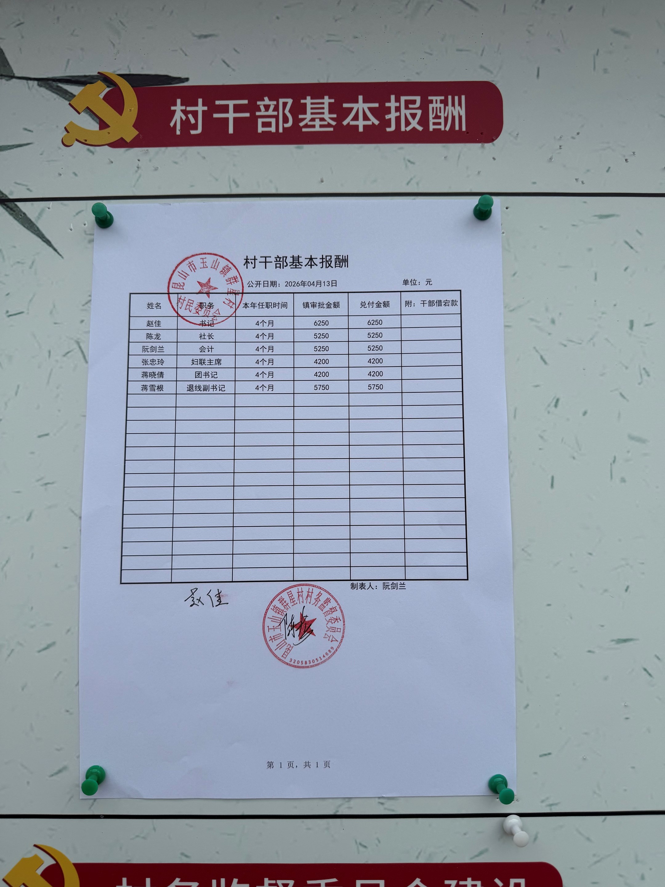 昆山高新区群星村2026年04月份公开村干部基本报酬信息公示图片