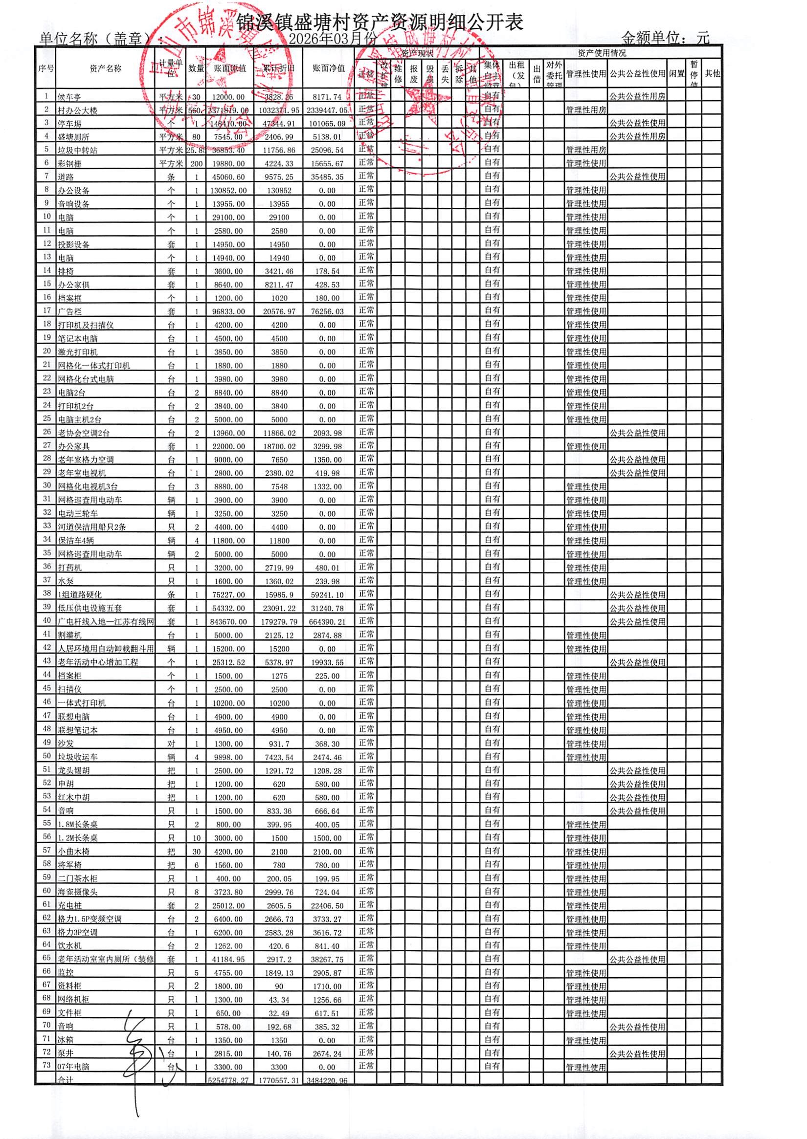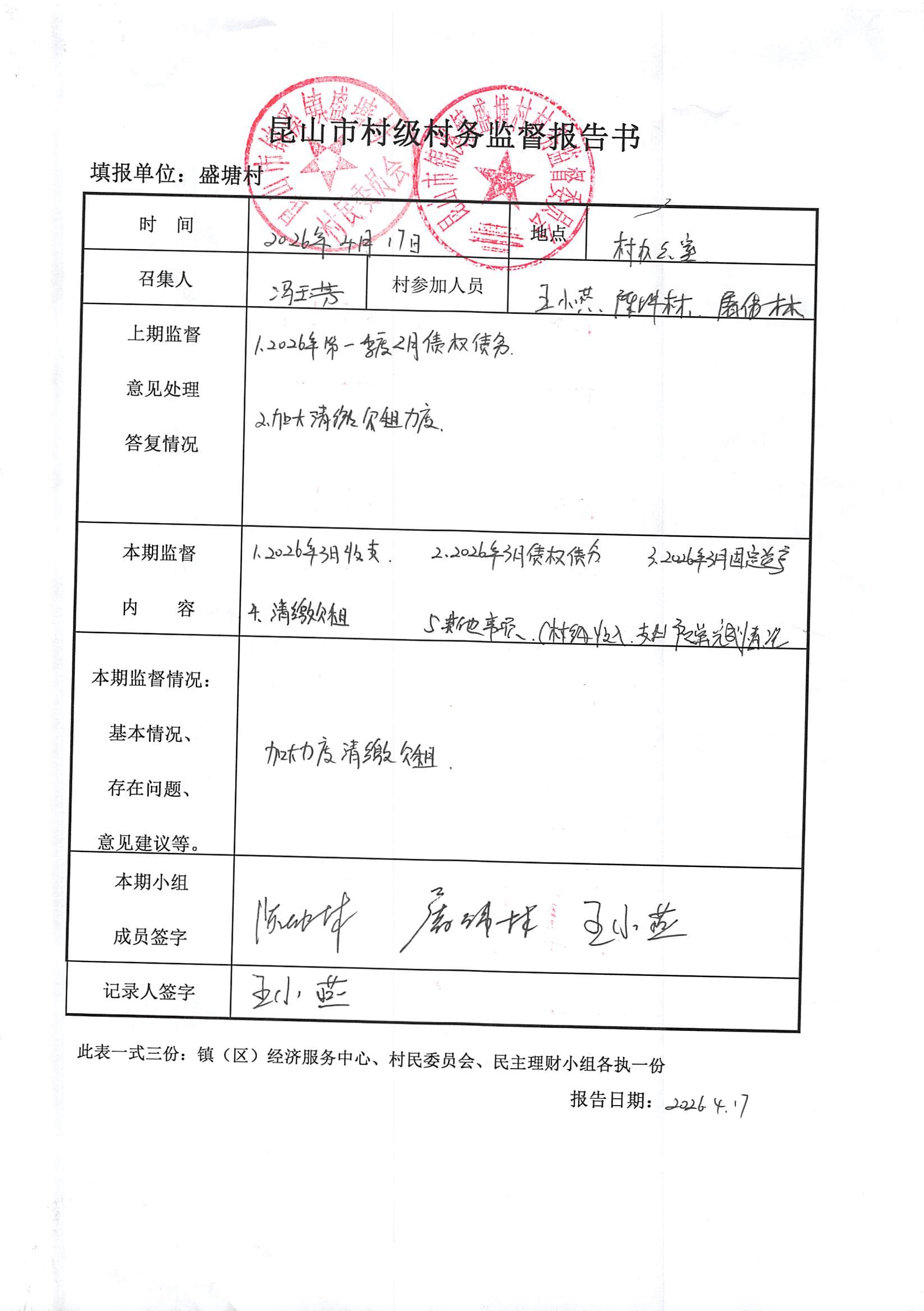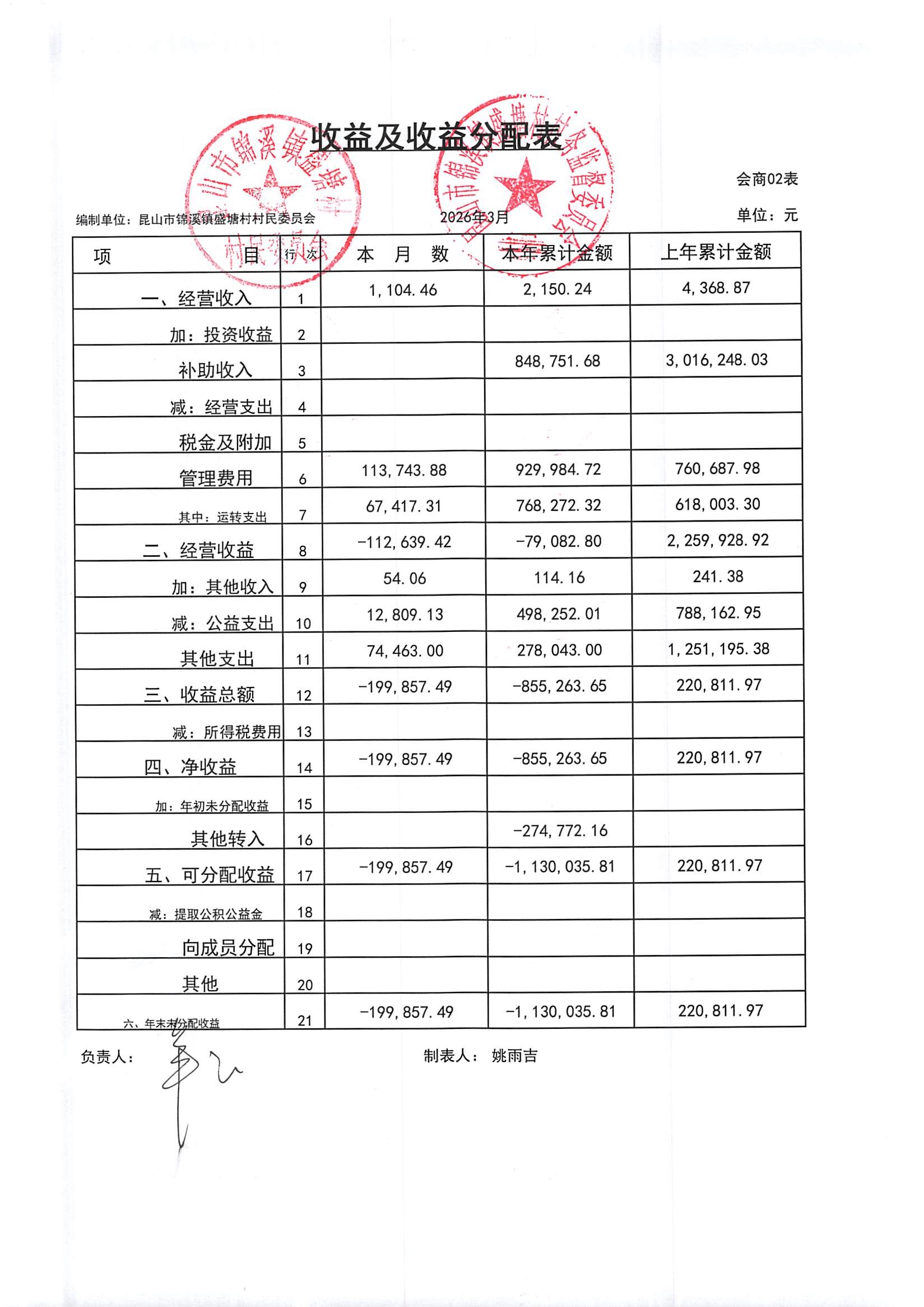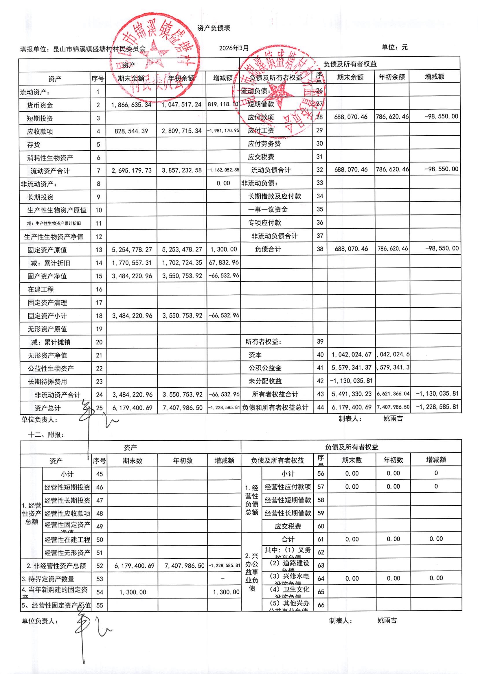 昆山市锦溪镇盛塘村2026年第一季度3月村财务公开资料