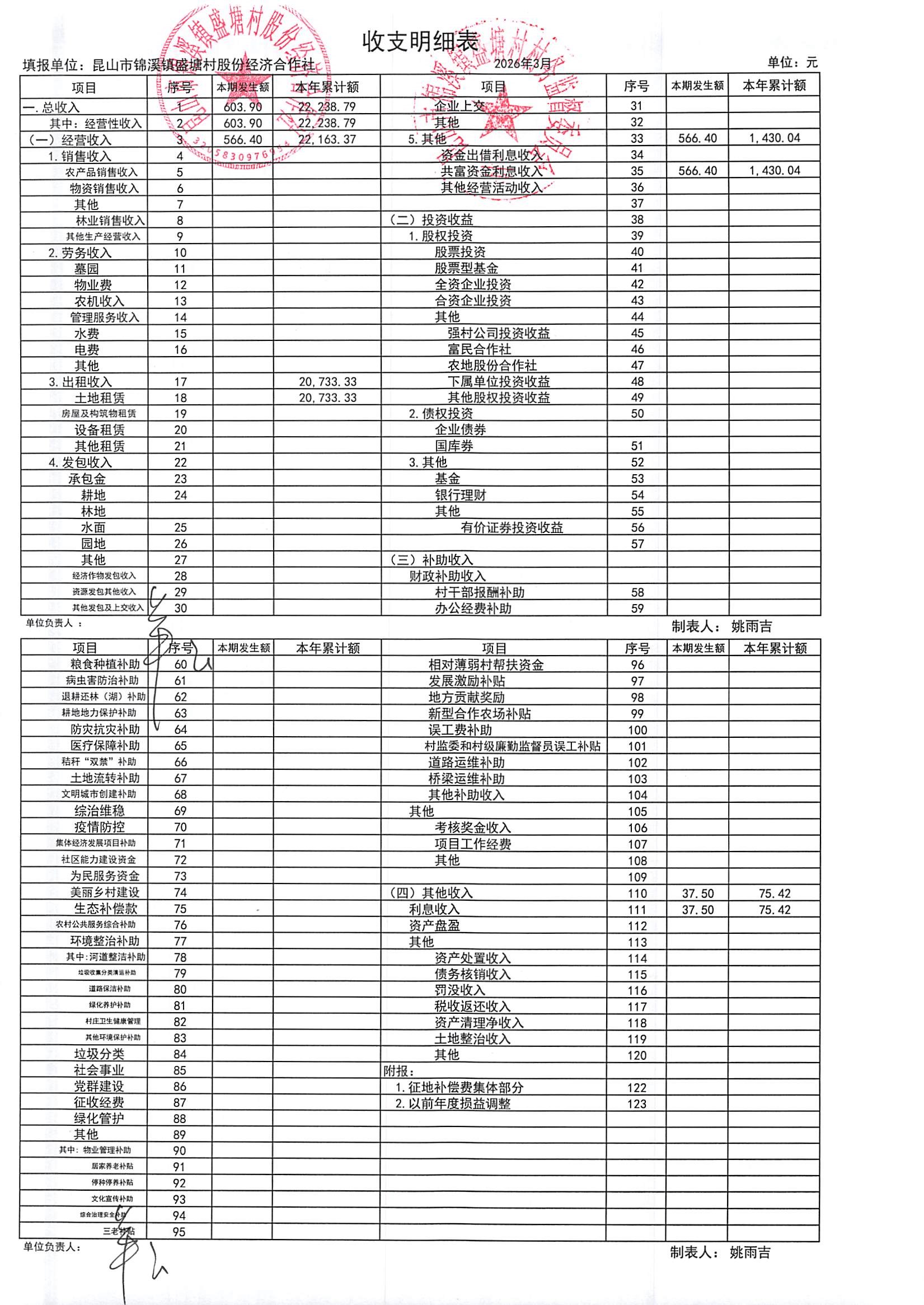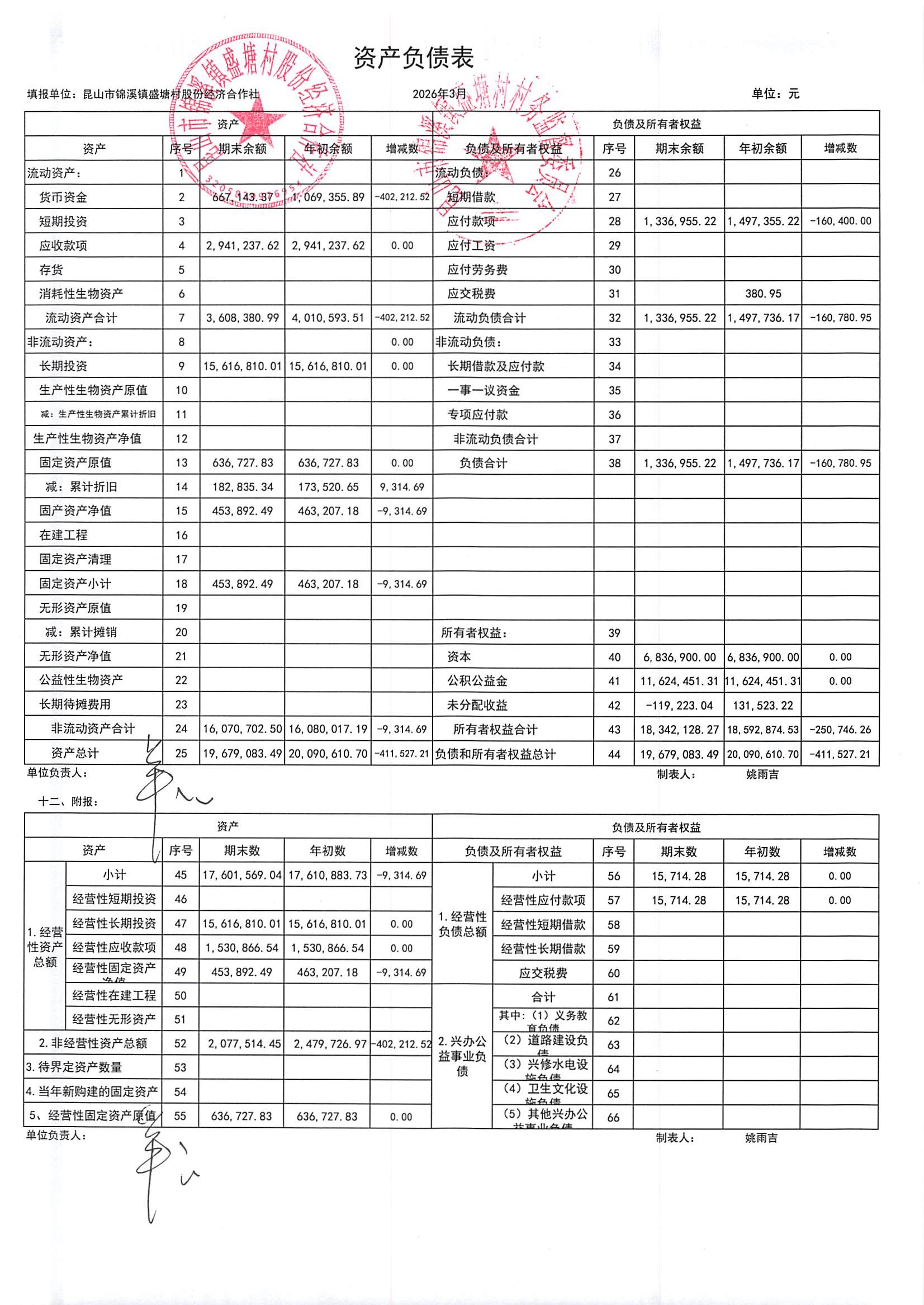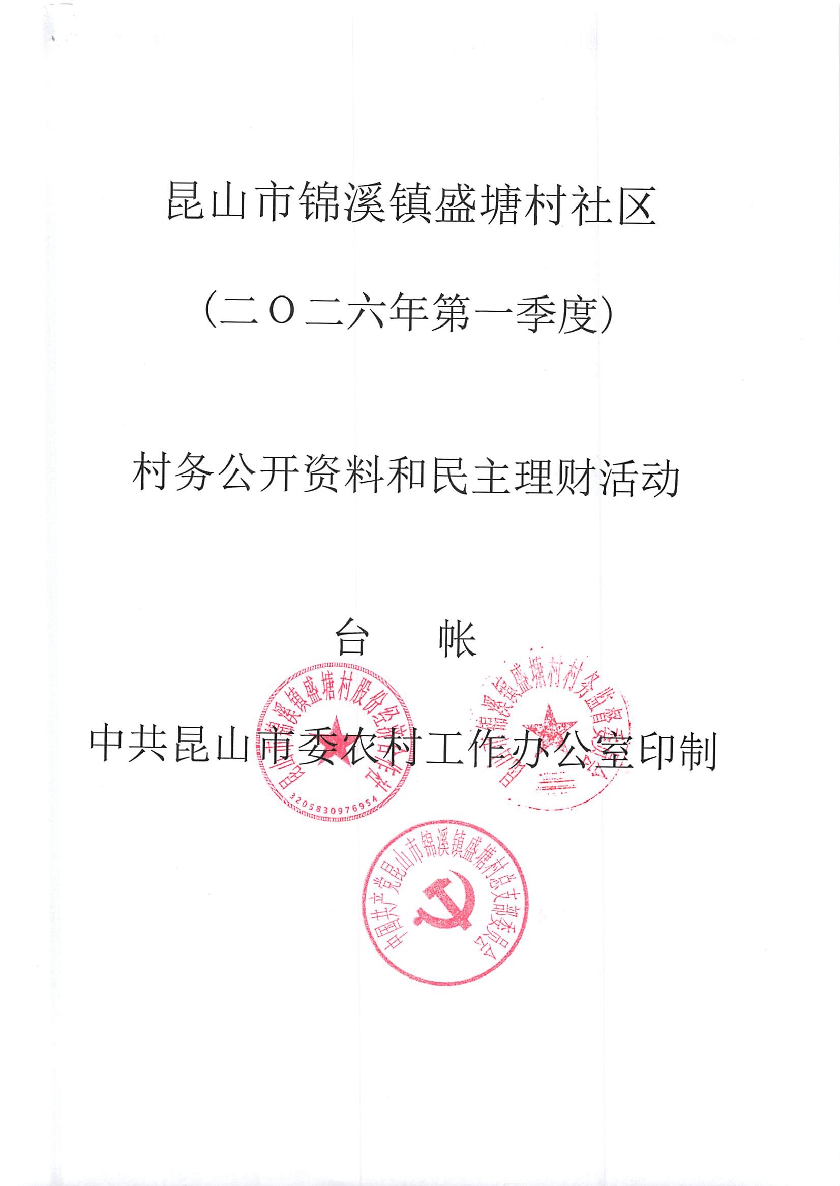 昆山市锦溪镇盛塘村2026年第一季度3月社区财务公开资料