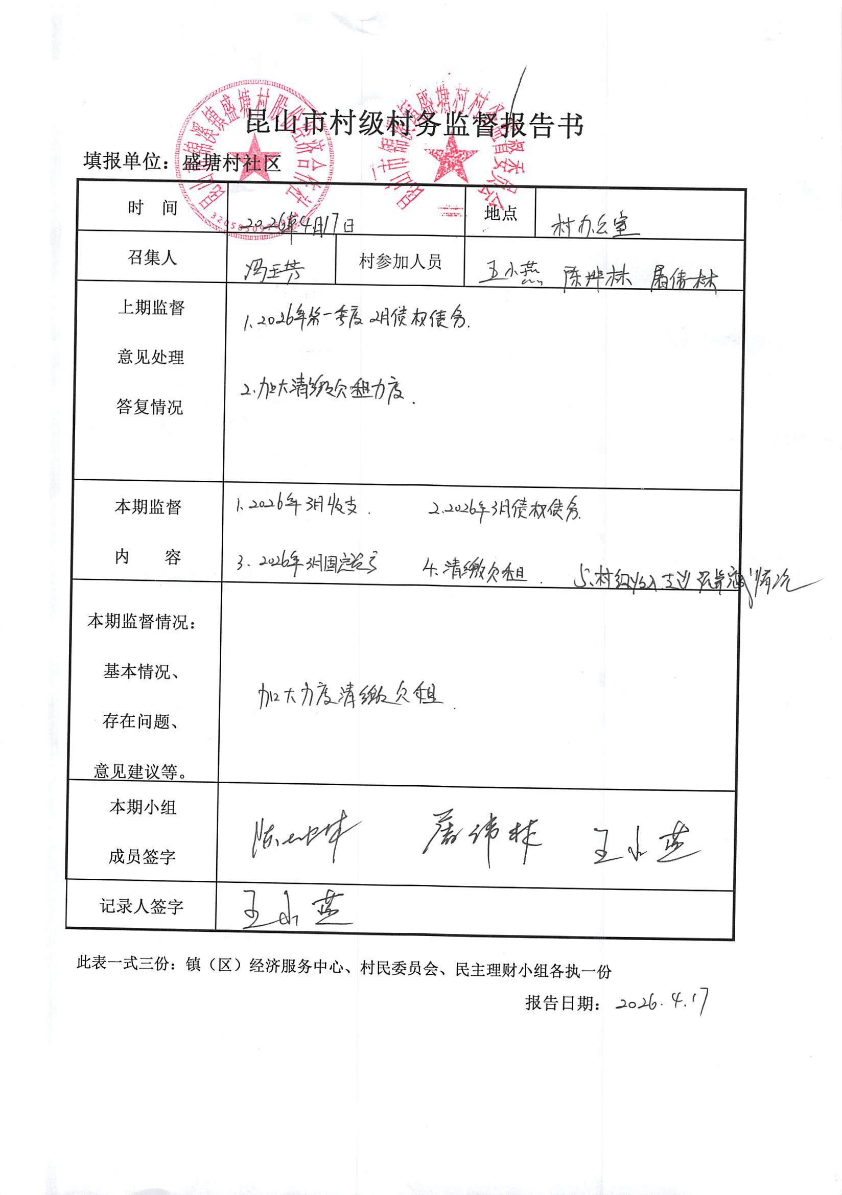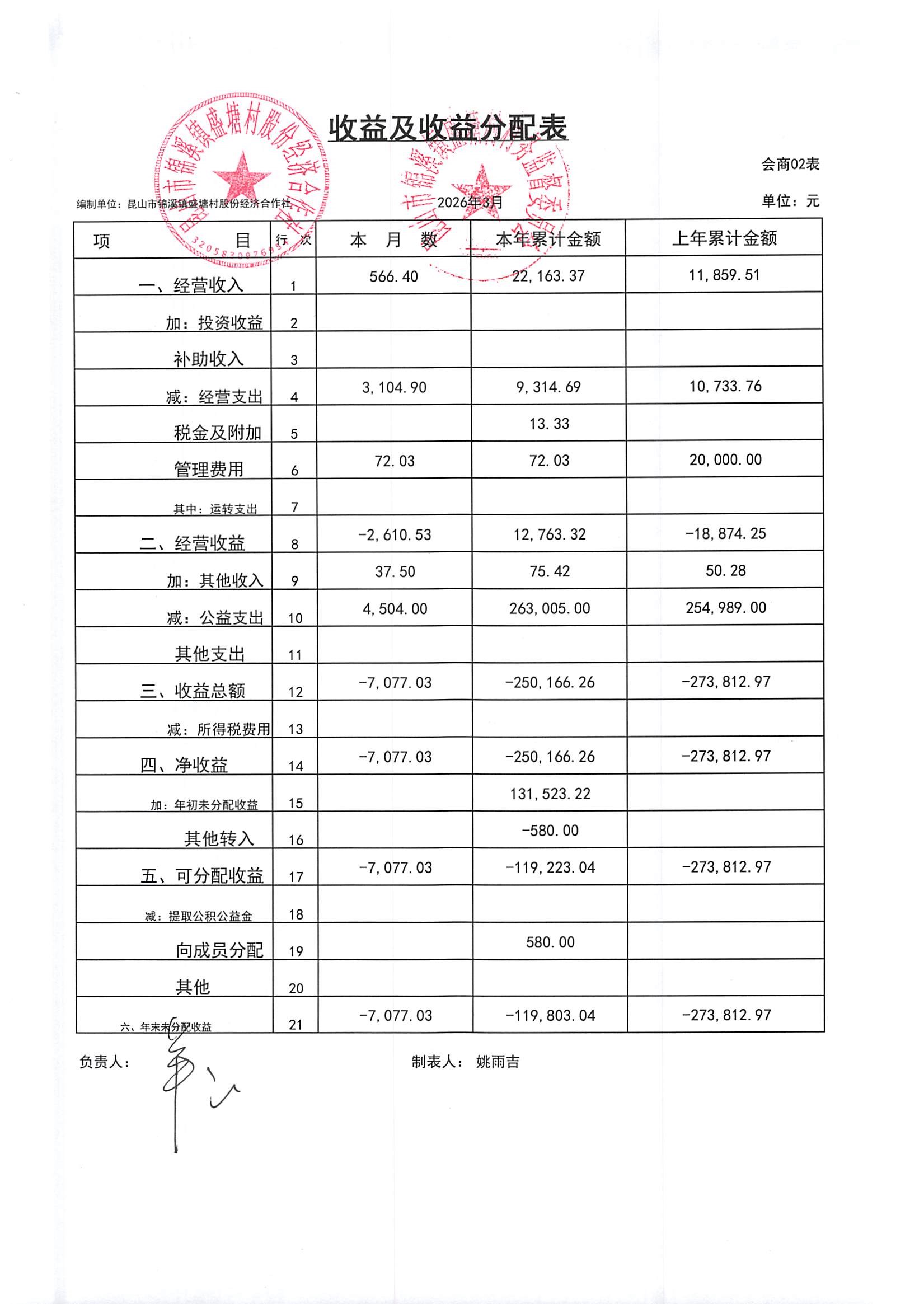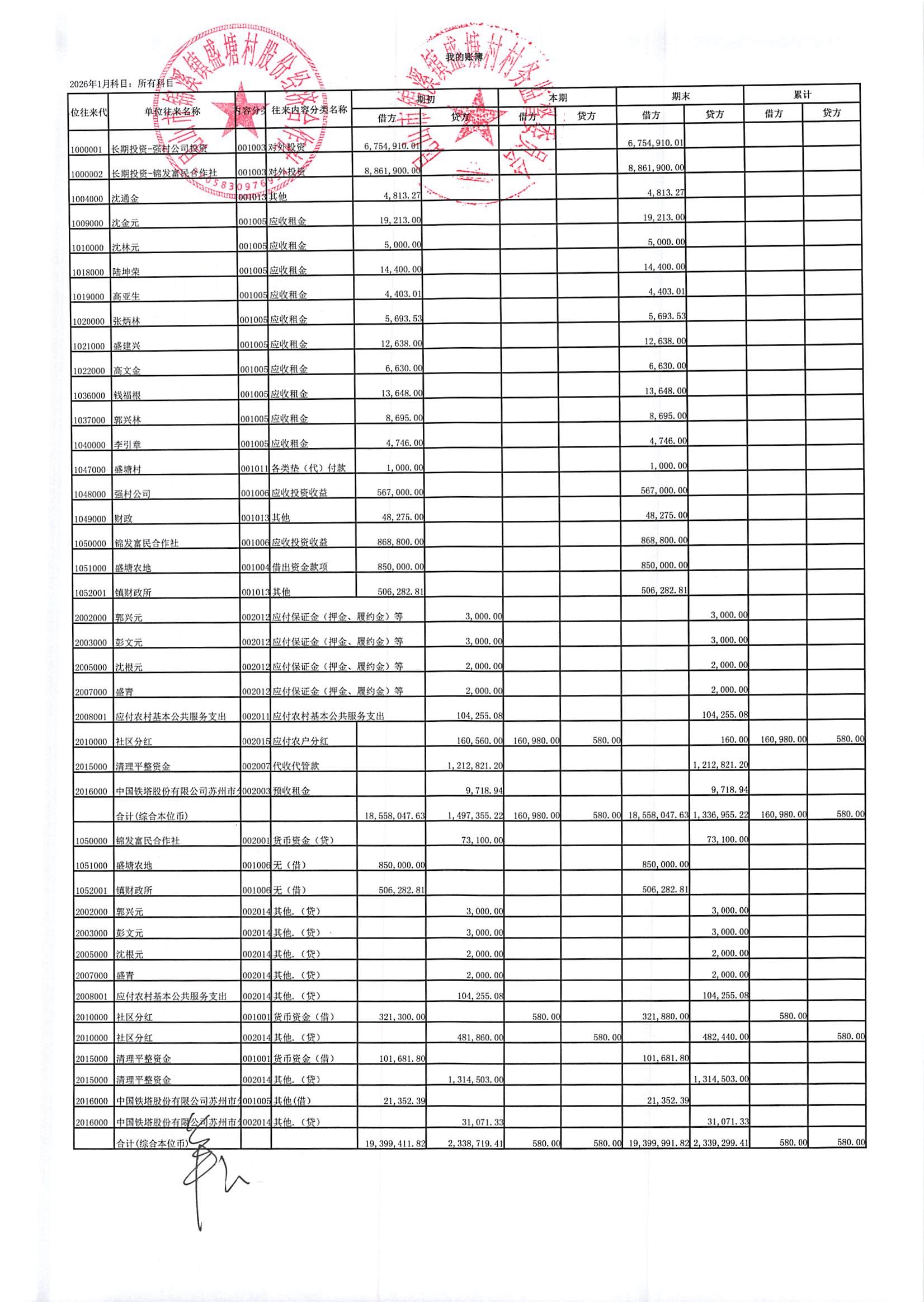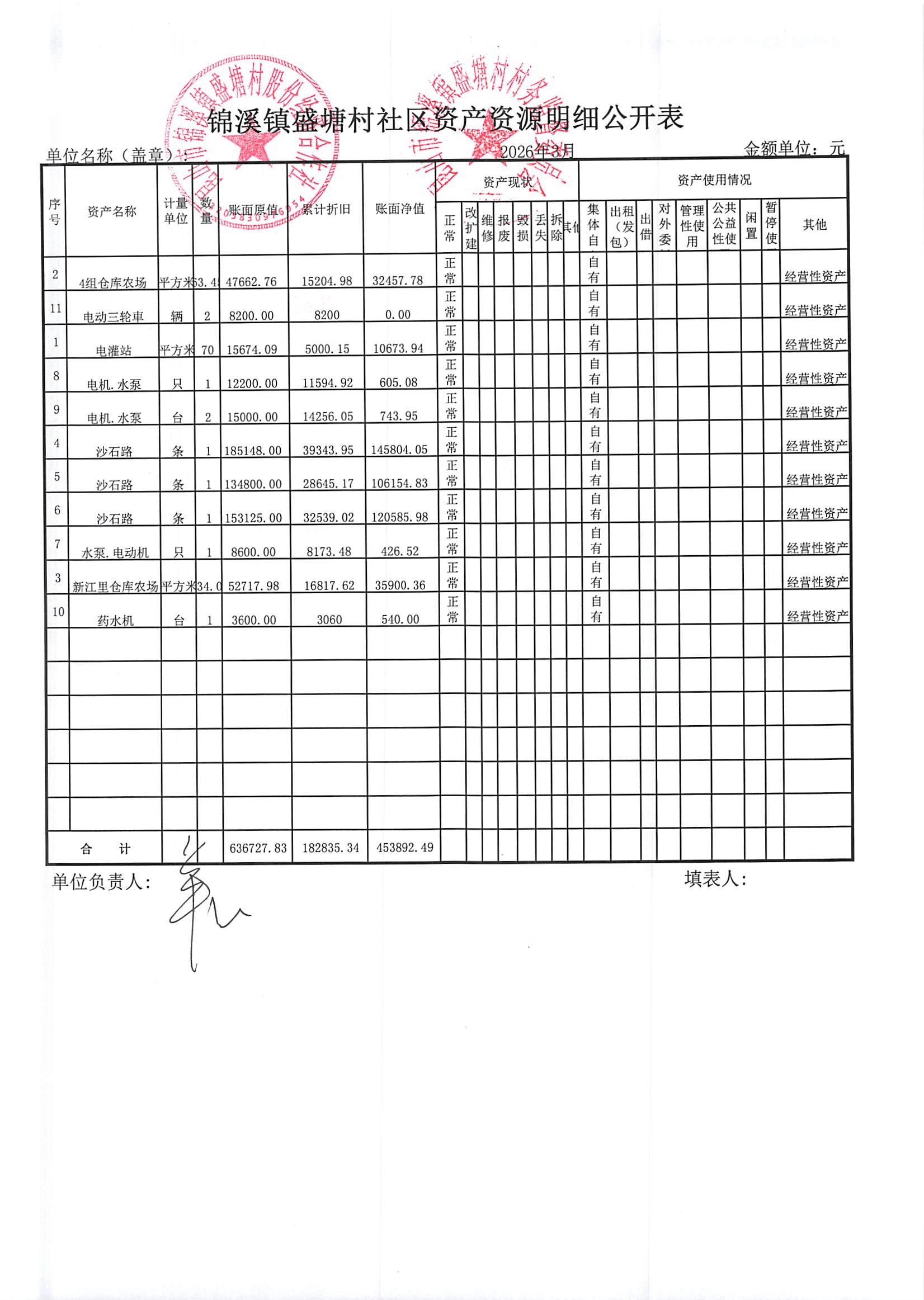 昆山市锦溪镇盛塘村2026年第一季度3月社区财务公开资料