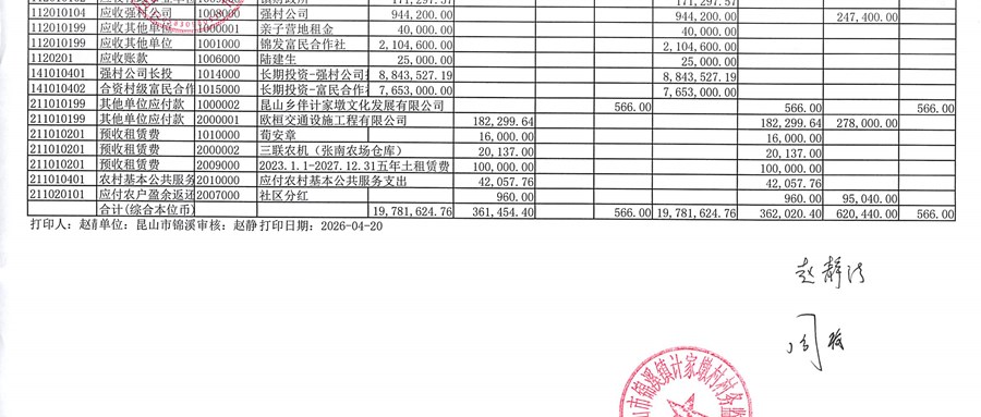 2026年3月股份经济合作社财务公开