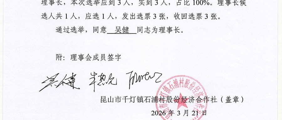石浦村股份经济合作社成员(代表)大会决议