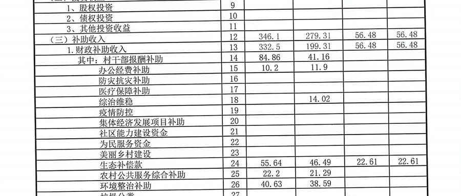 1、资产负债表; 2、收益分配表; 3、收支明细表;4、往来明细;5、资产资源明细公开表明细;6、村干部基本报酬;7、村级经济收入预算及完成情况8、村级经济支出预算及完成情况