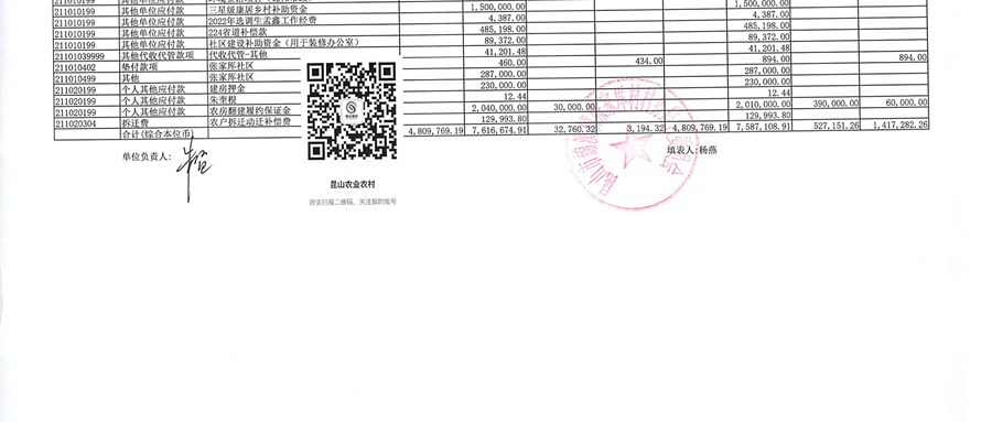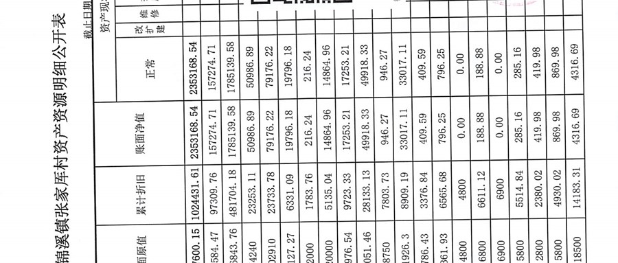 2026年04月张家厍村财务定期公开