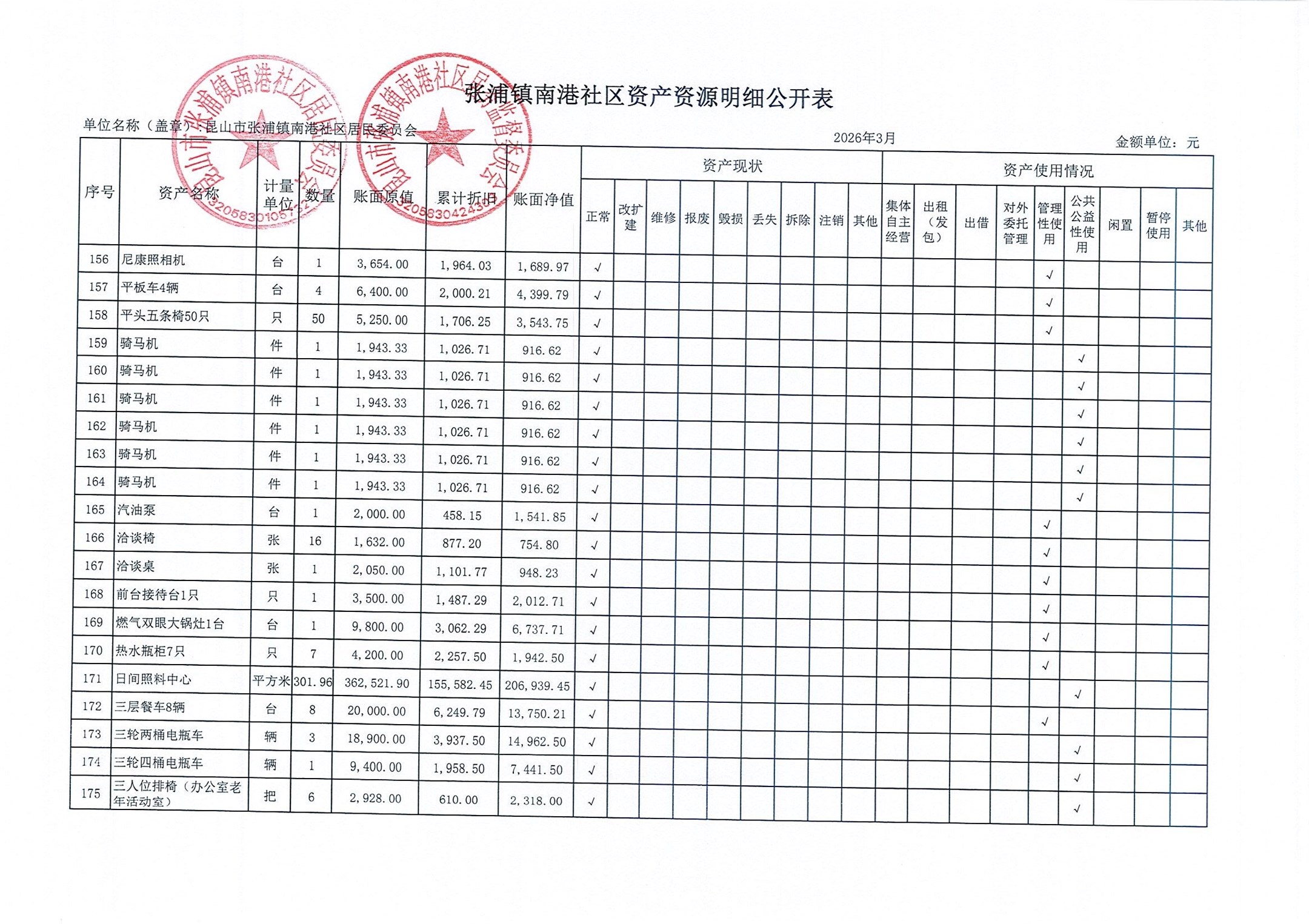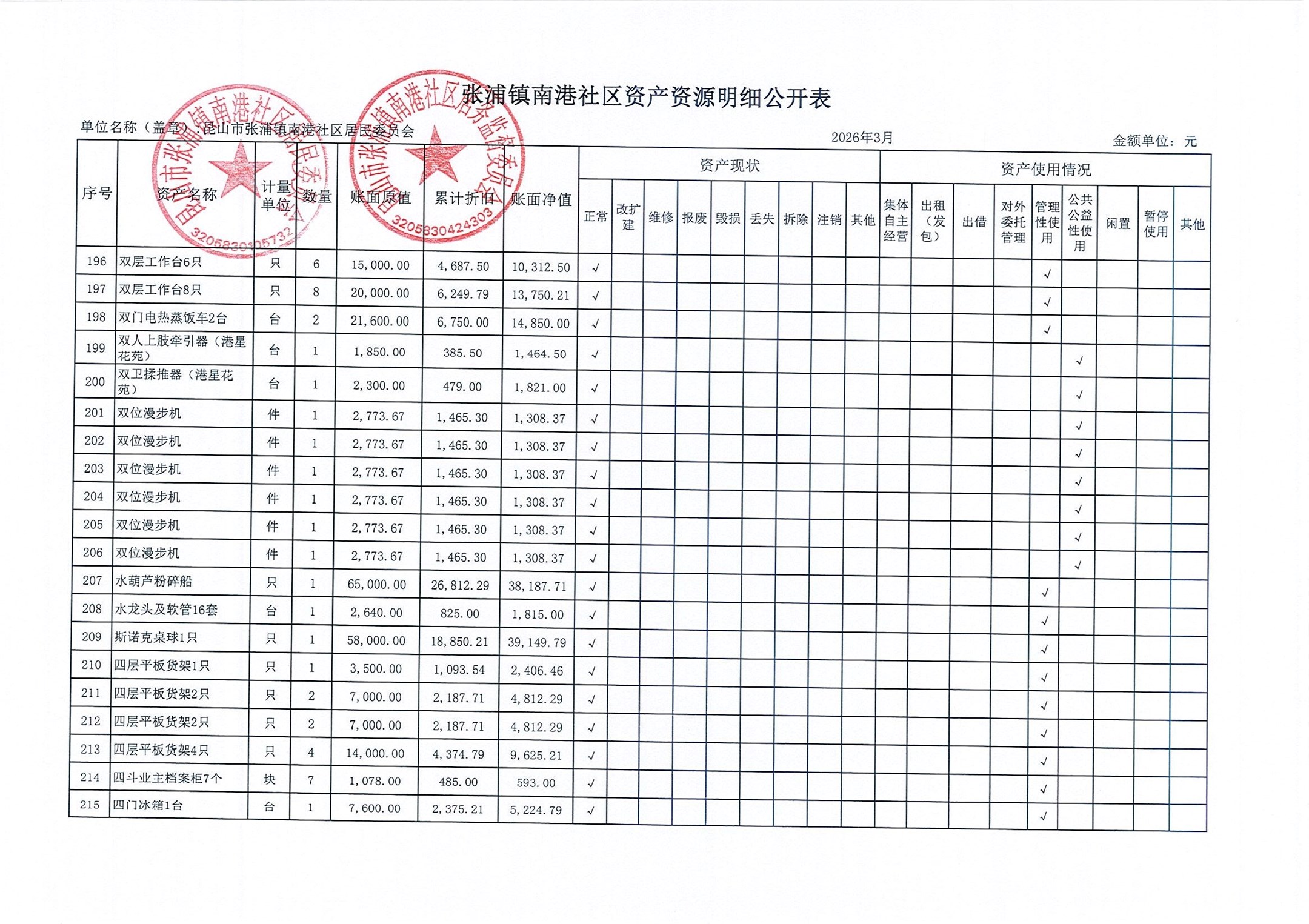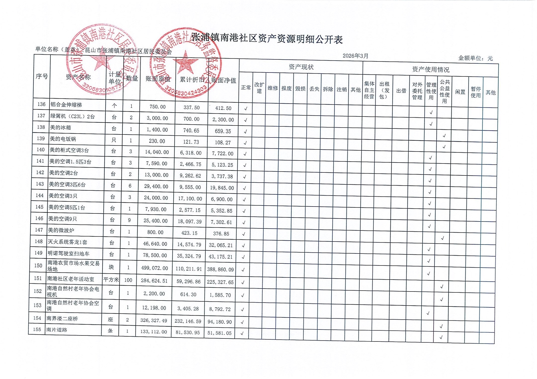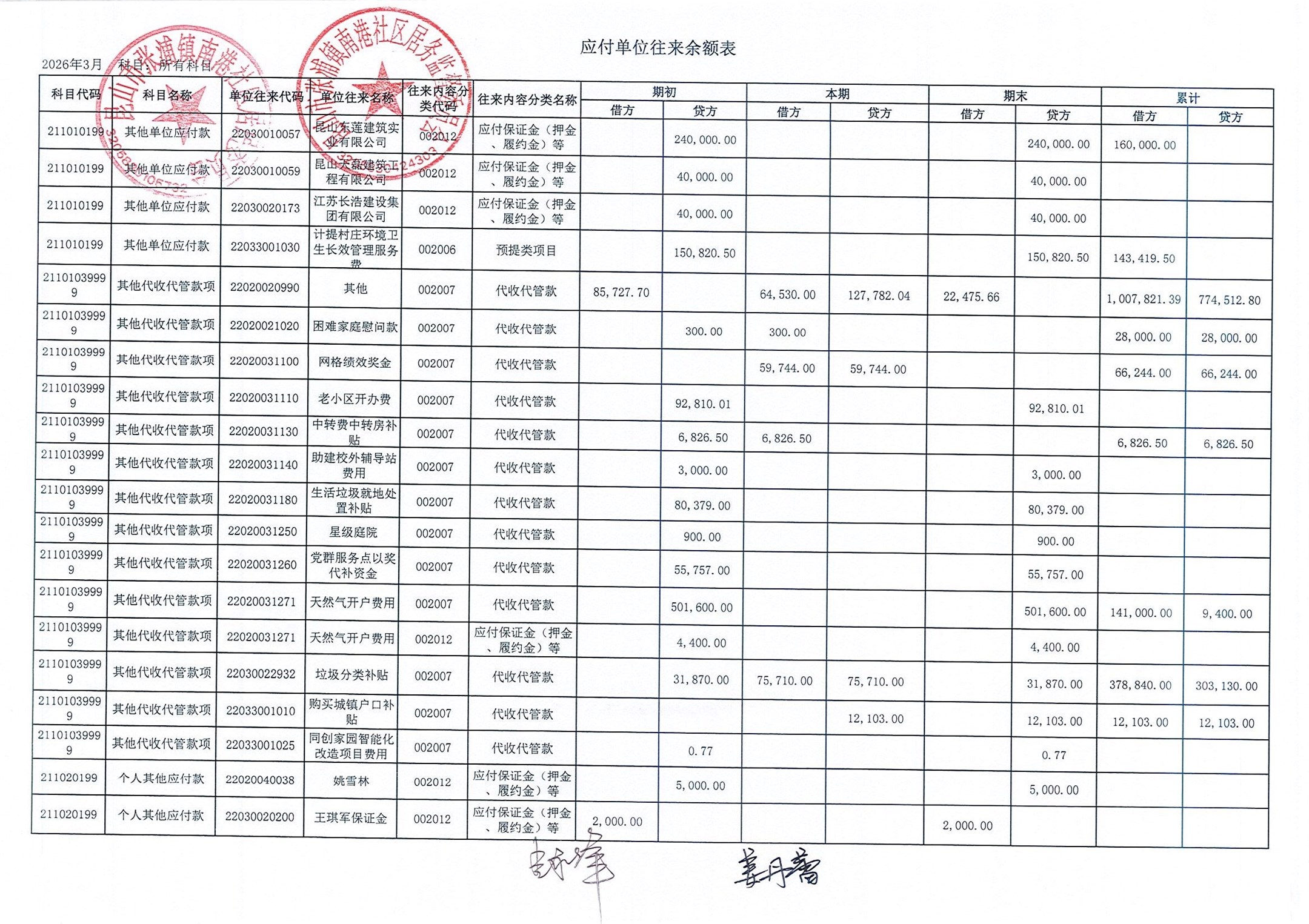 南港社区居委会2026年3月财务公开(定期公开)