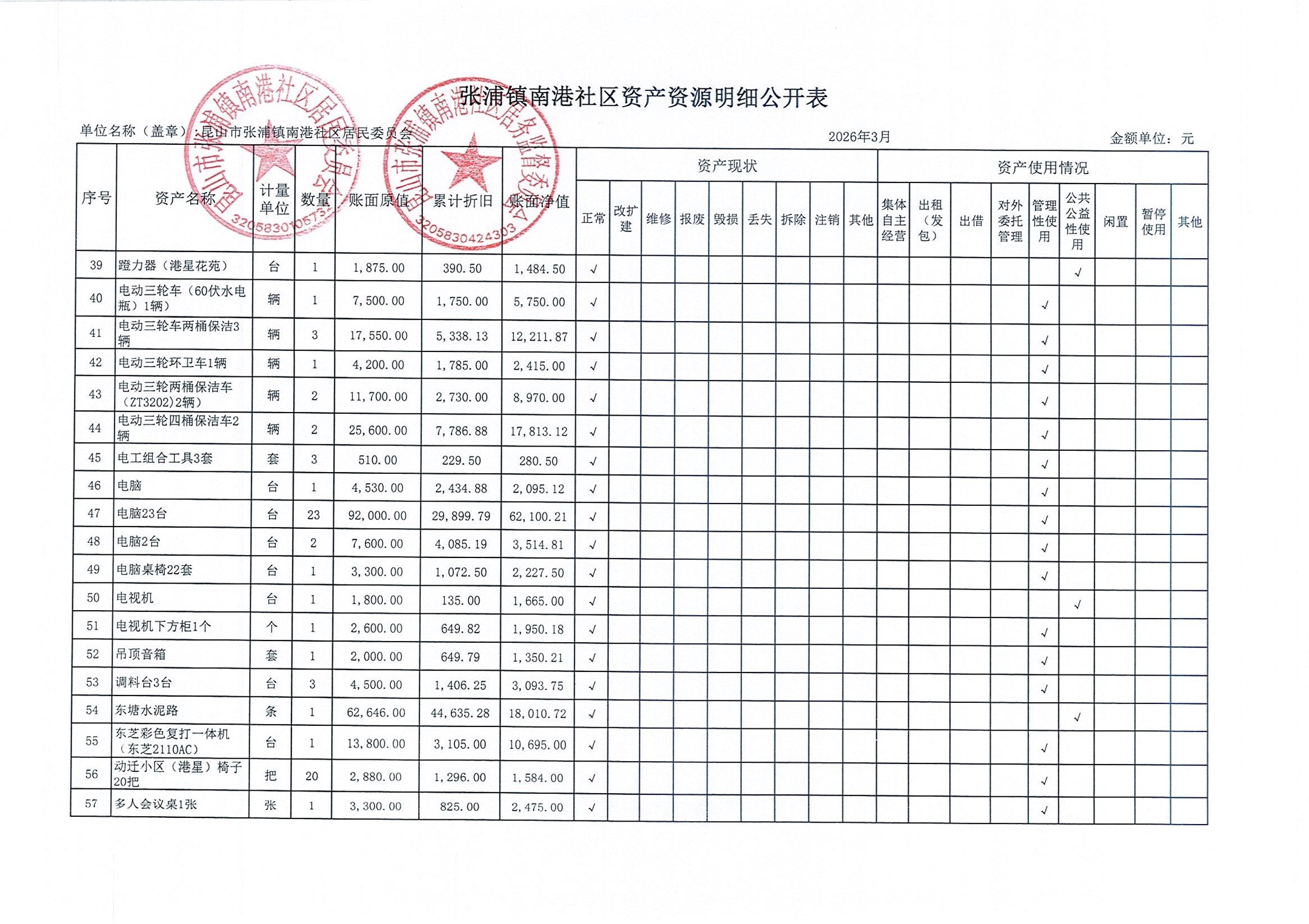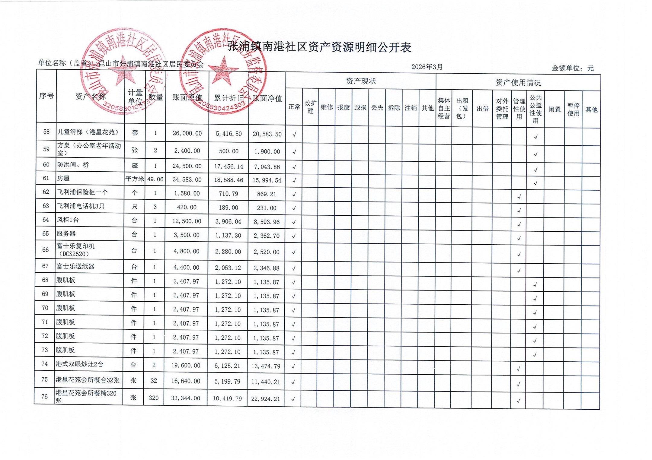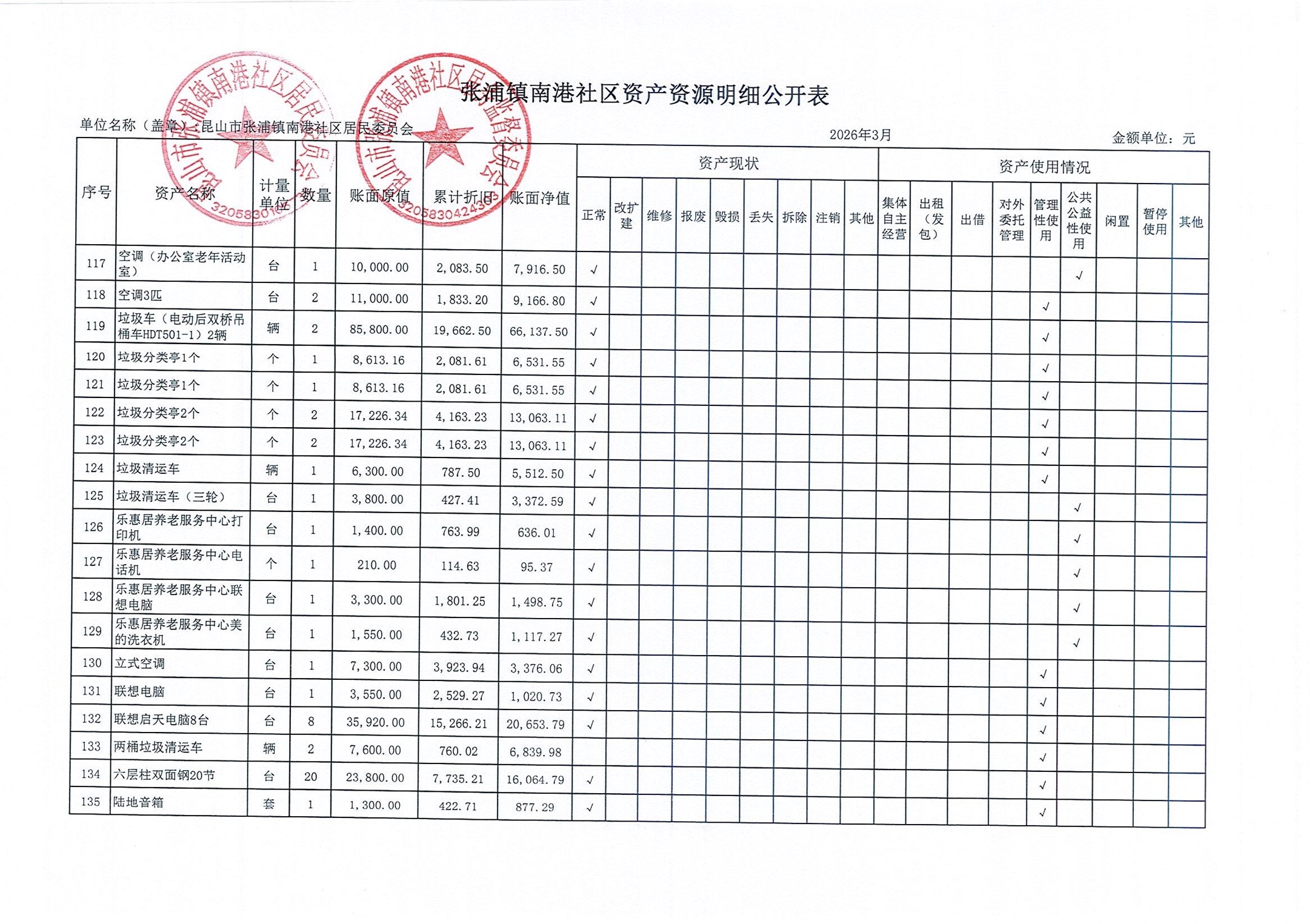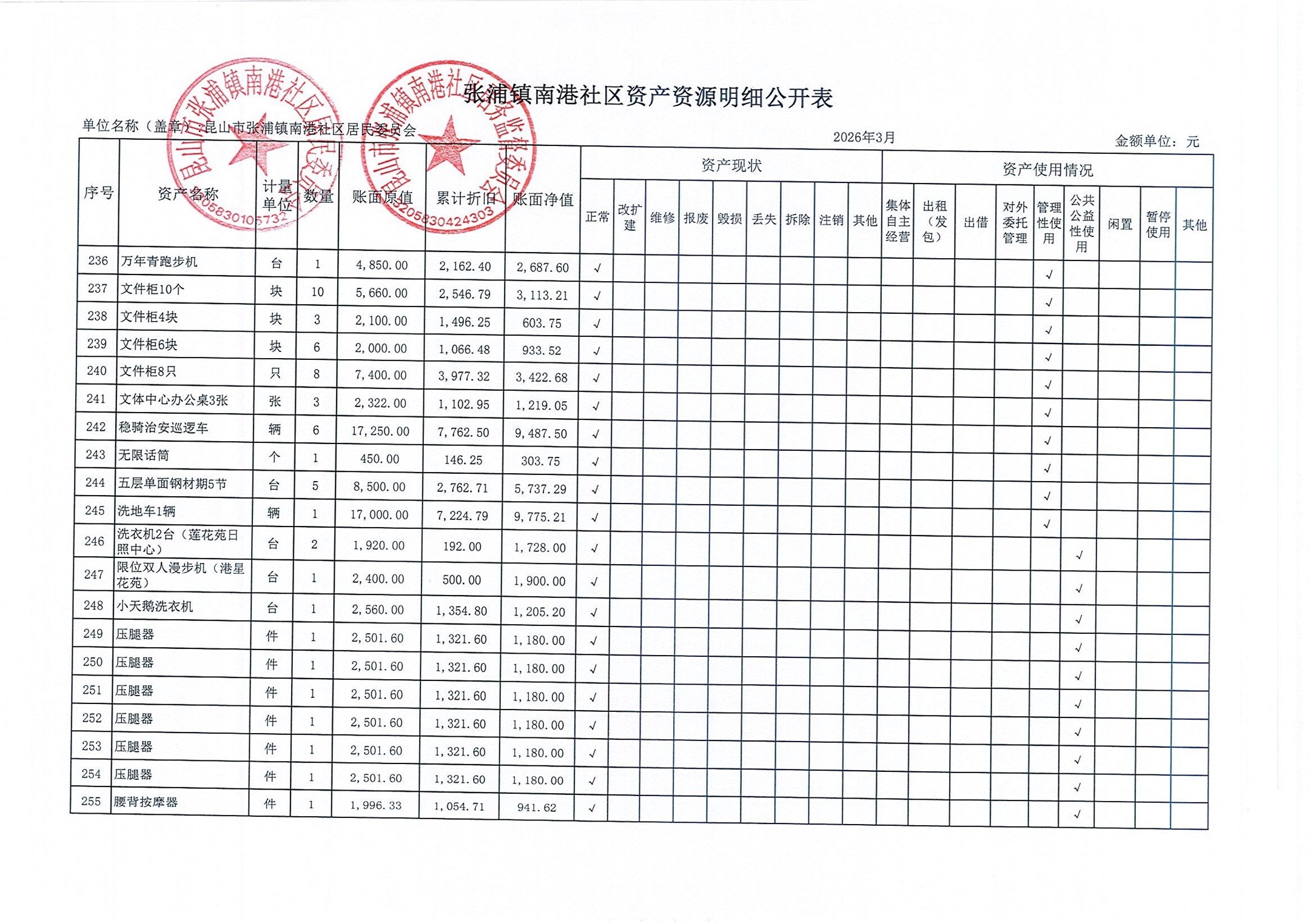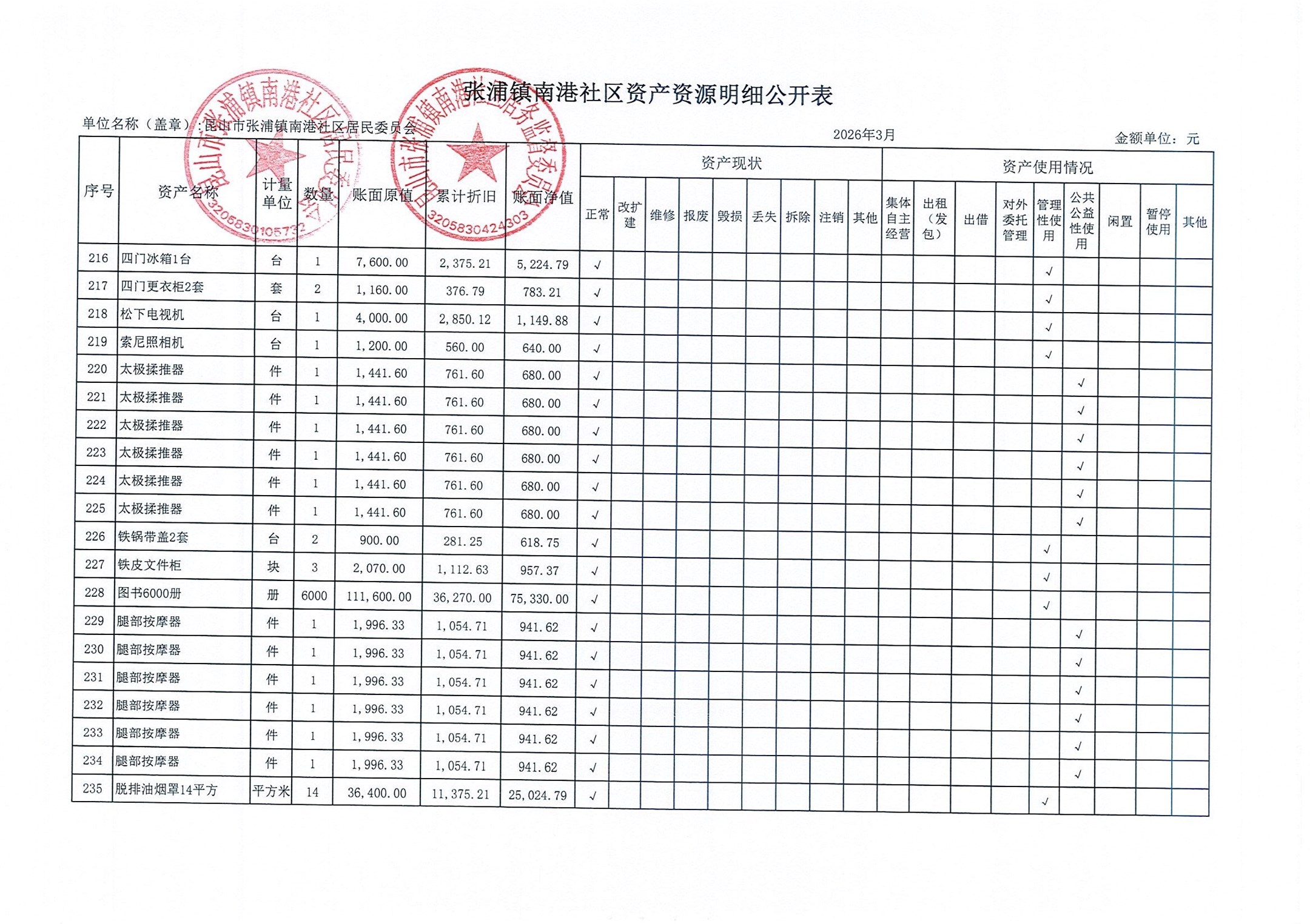 南港社区居委会2026年3月财务公开(定期公开)