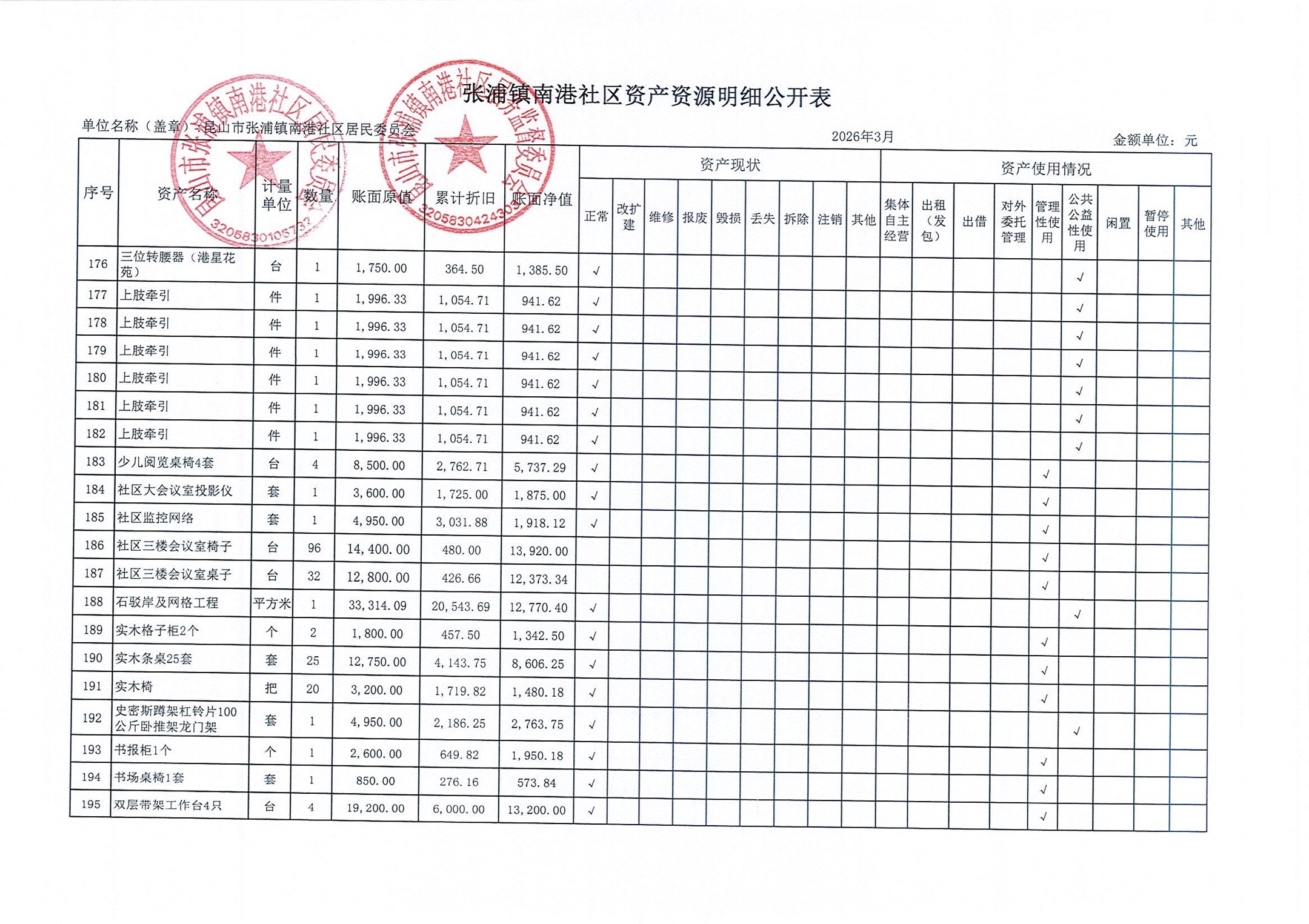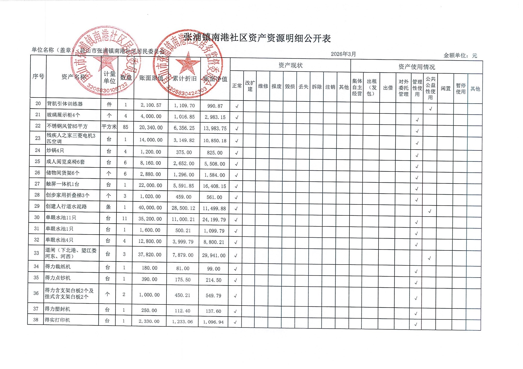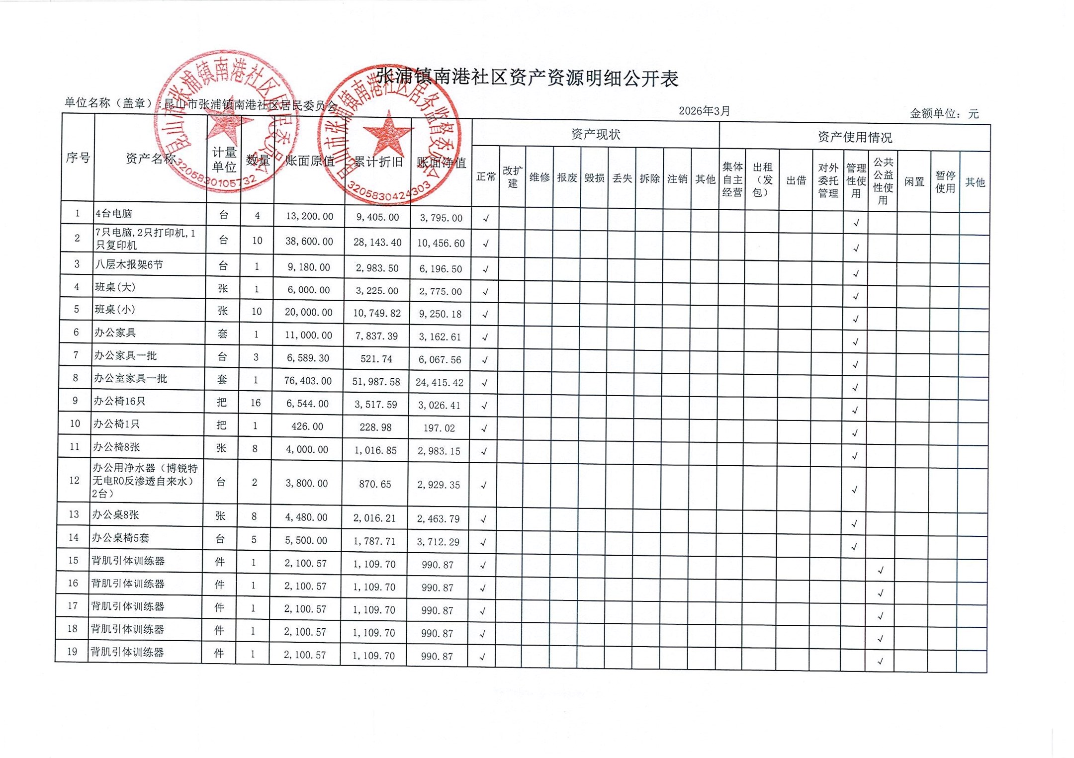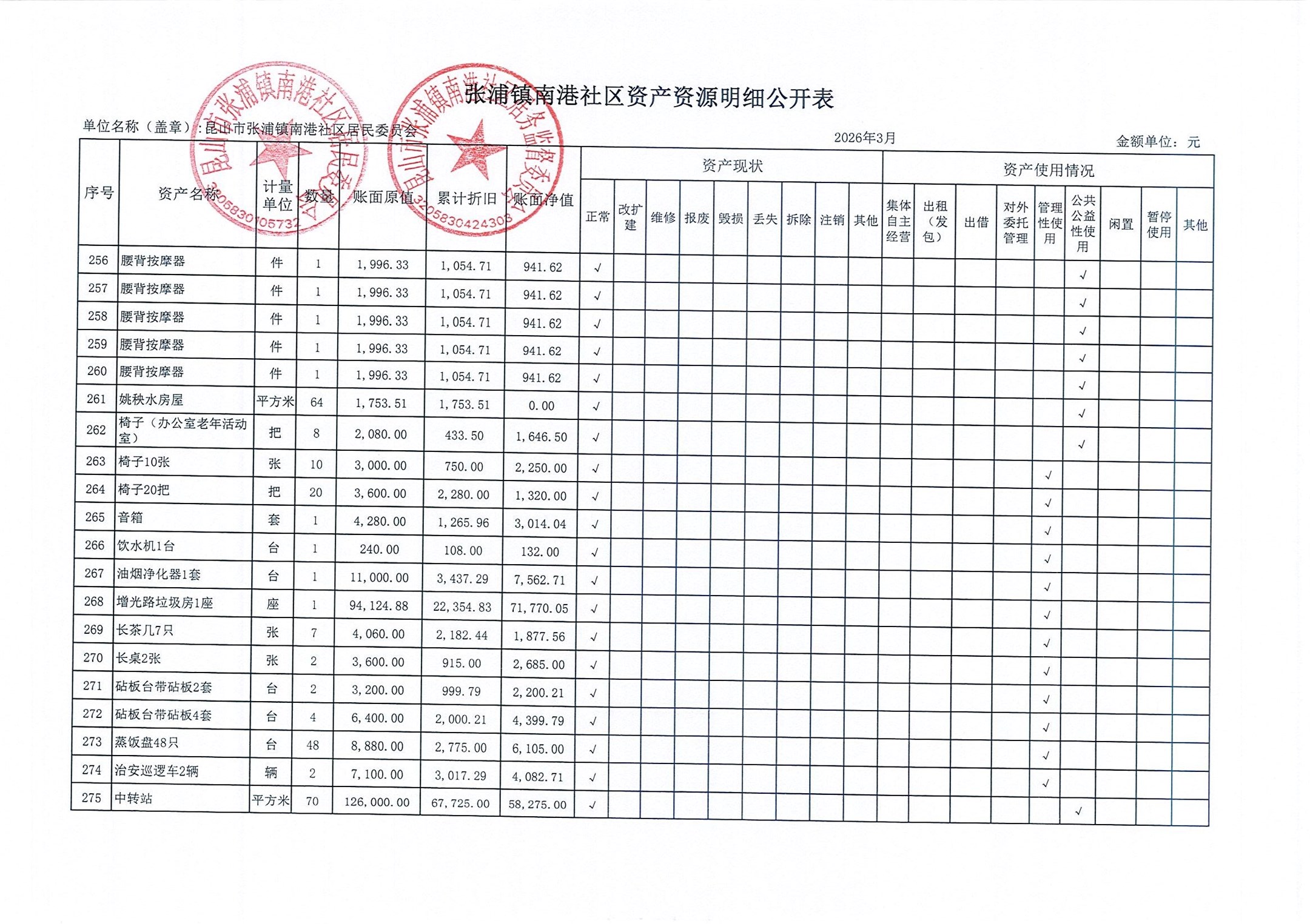 南港社区居委会2026年3月财务公开(定期公开)