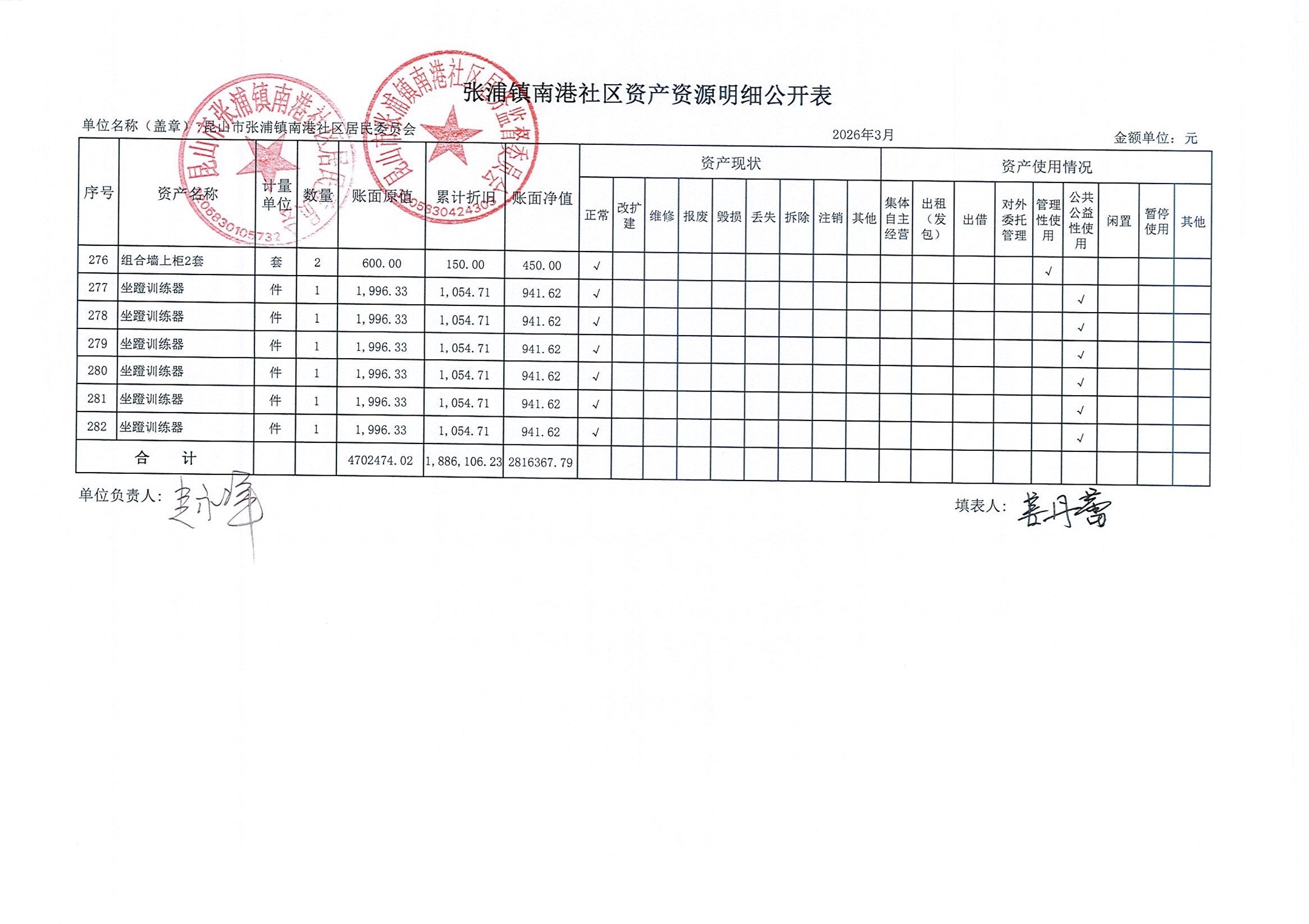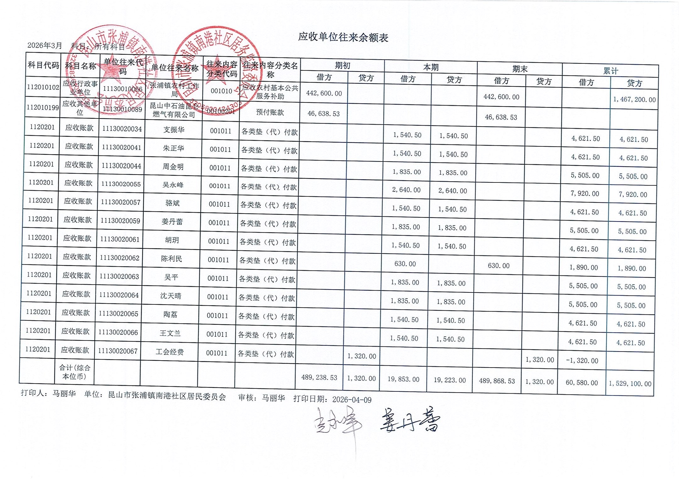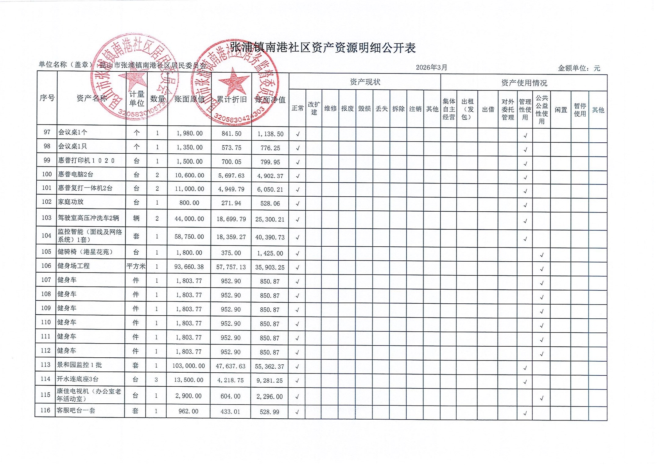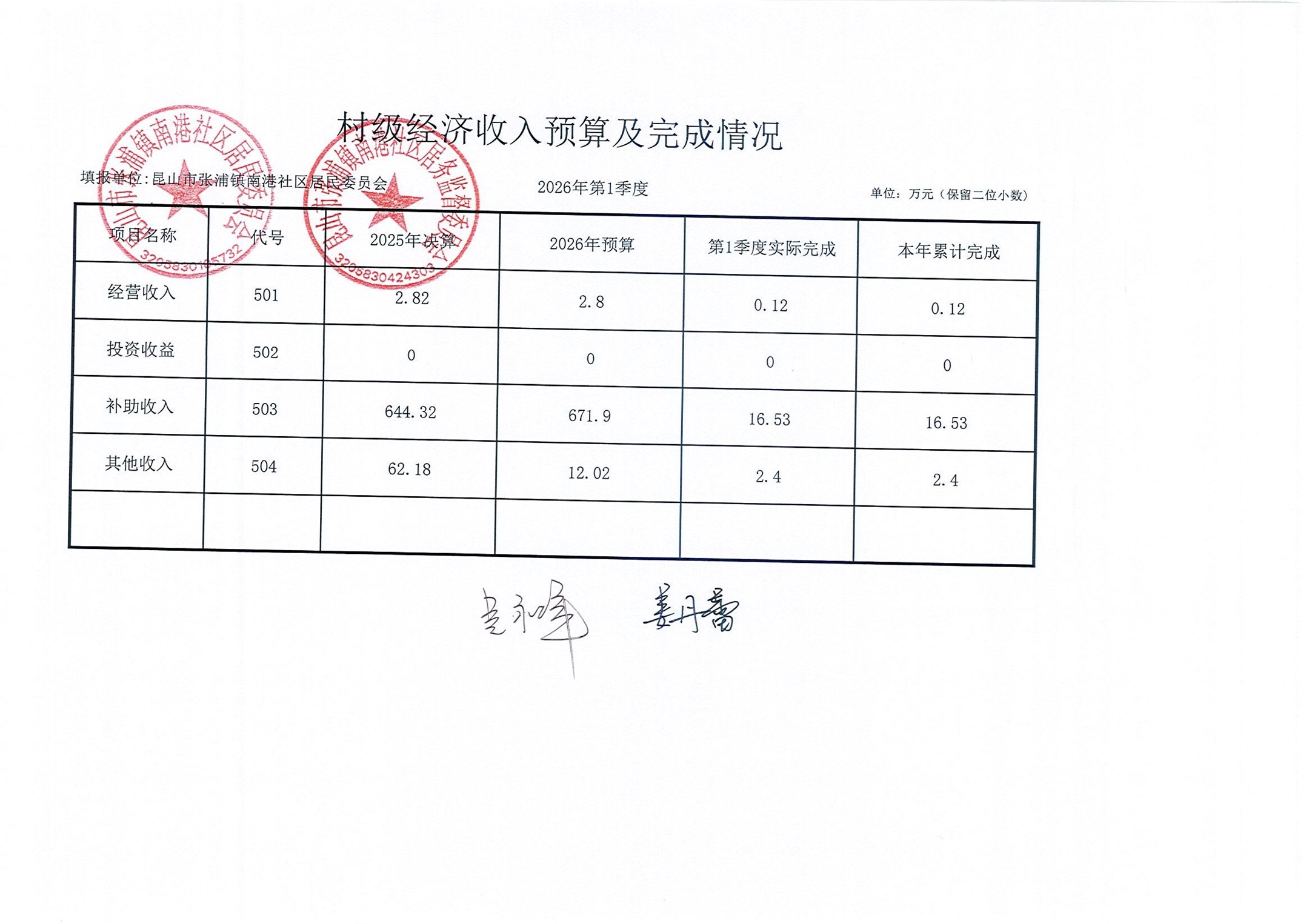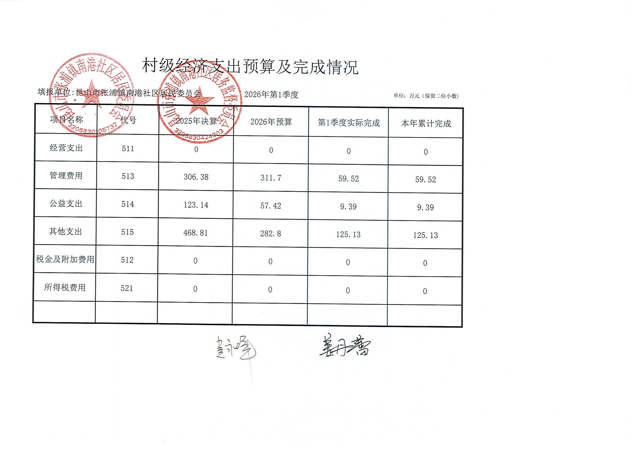 南港社区居委会2026年3月财务公开(定期公开)