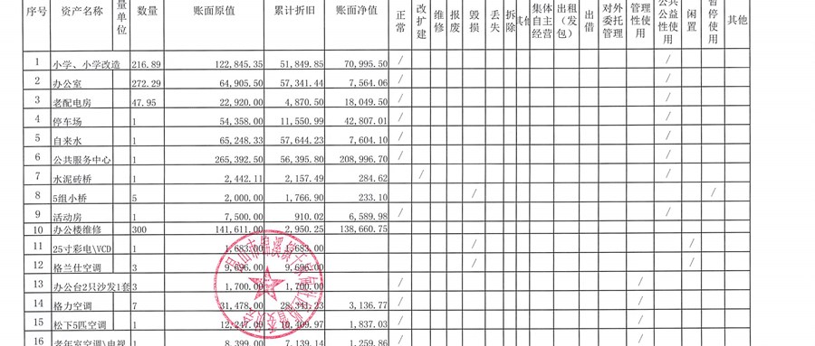 村盖章事项名录