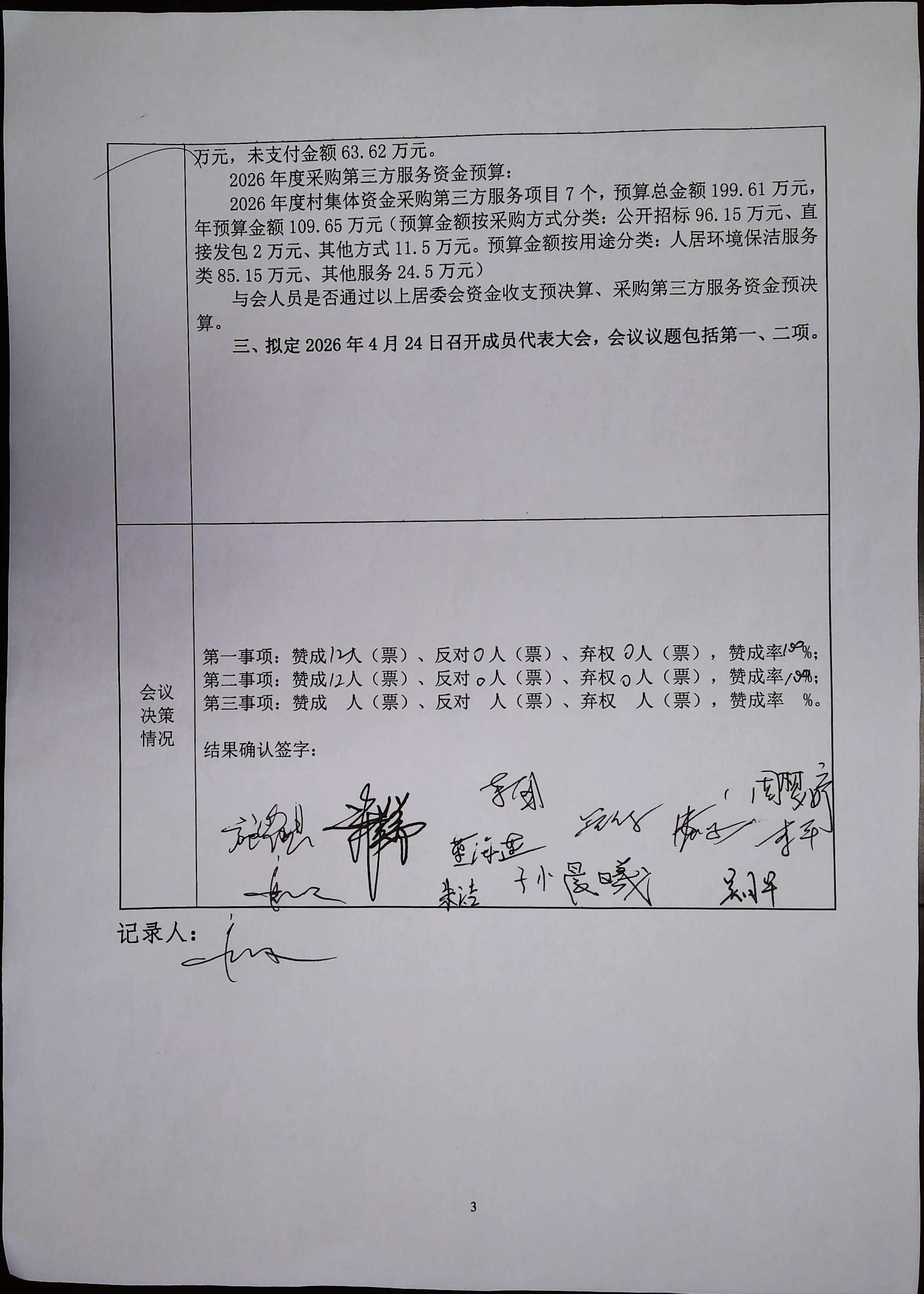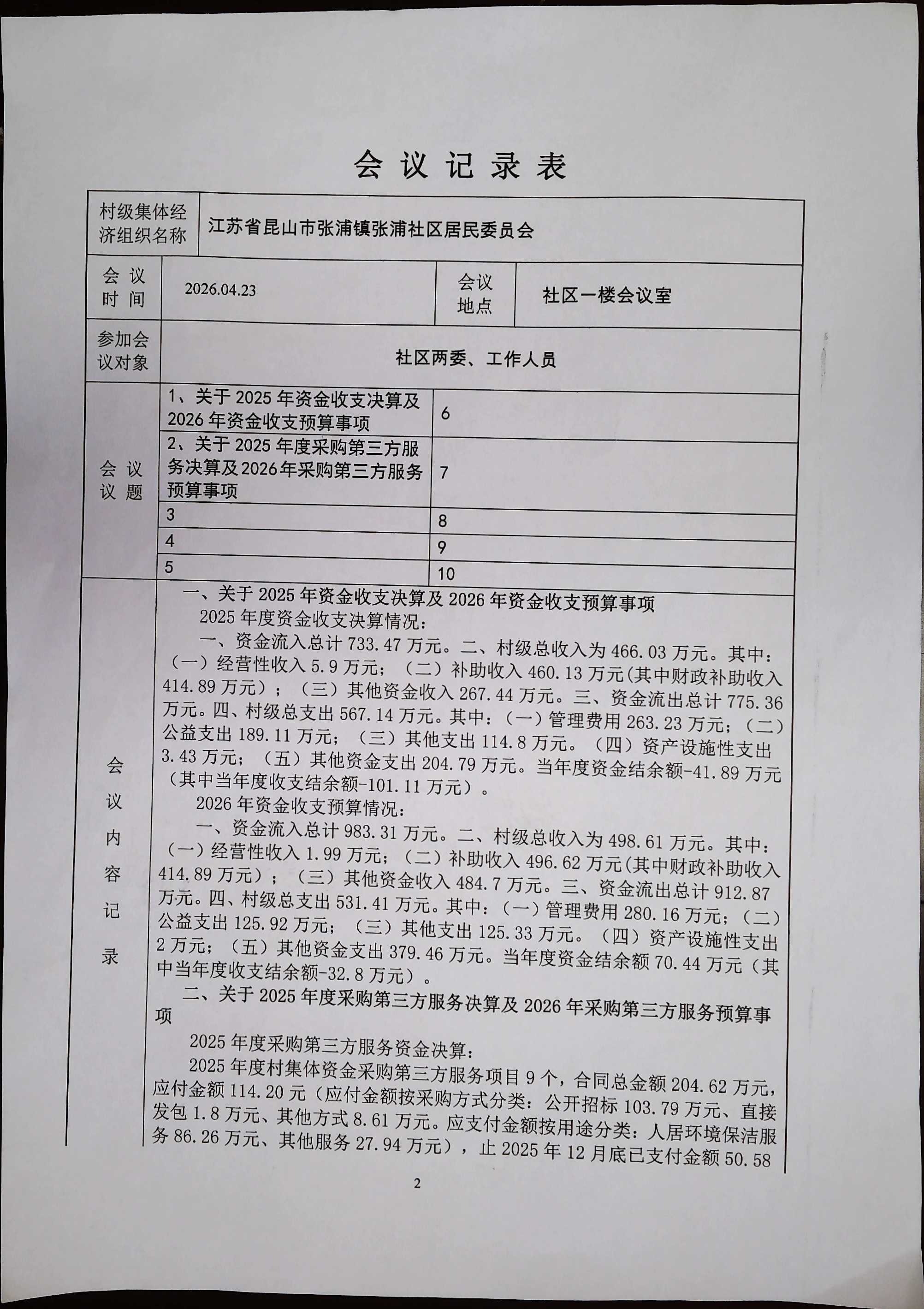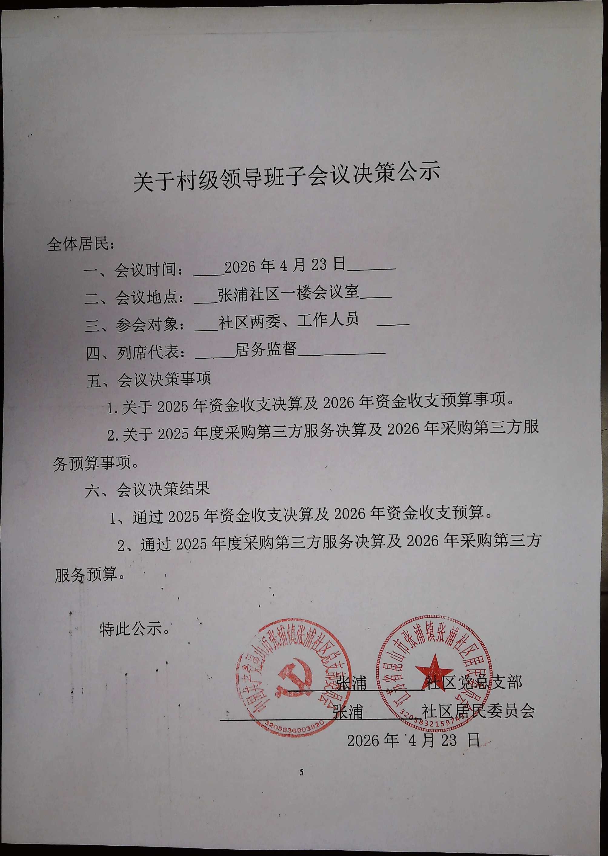 关于张浦社区居委会2025年资金收支决算及2026年资金收支预算等事项会议决策