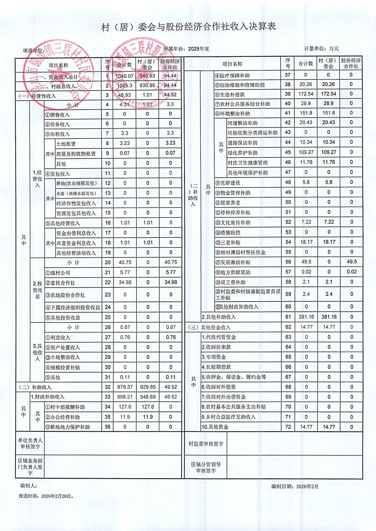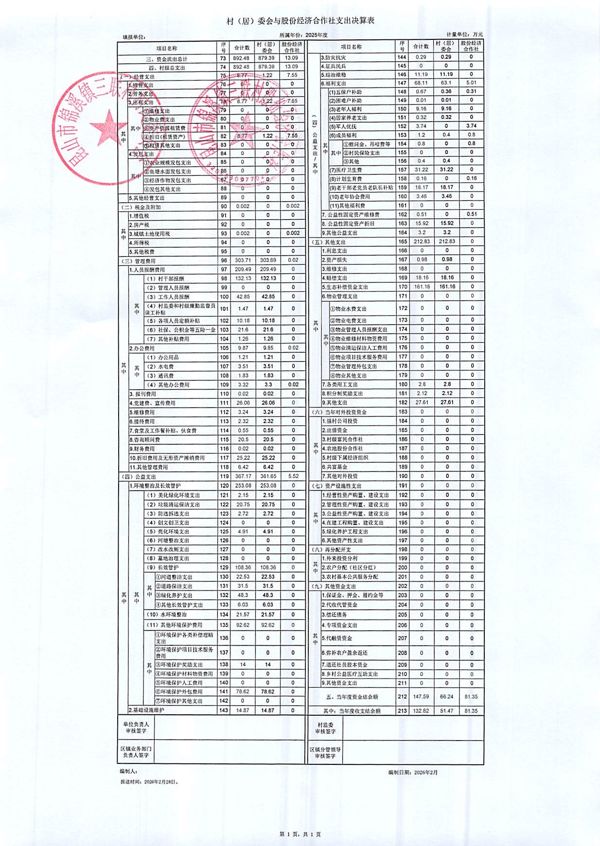 2025年村委会、股份经济合作社收支决算公开