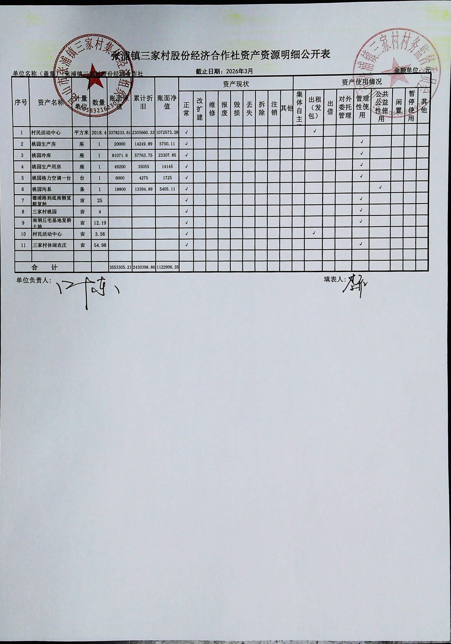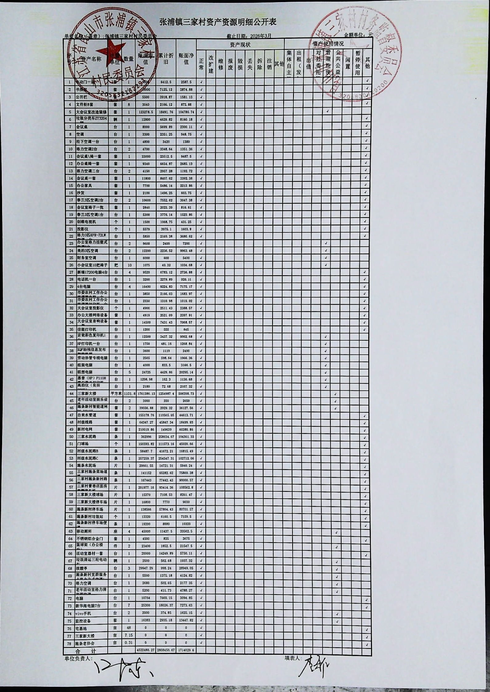 村盖章事项名录