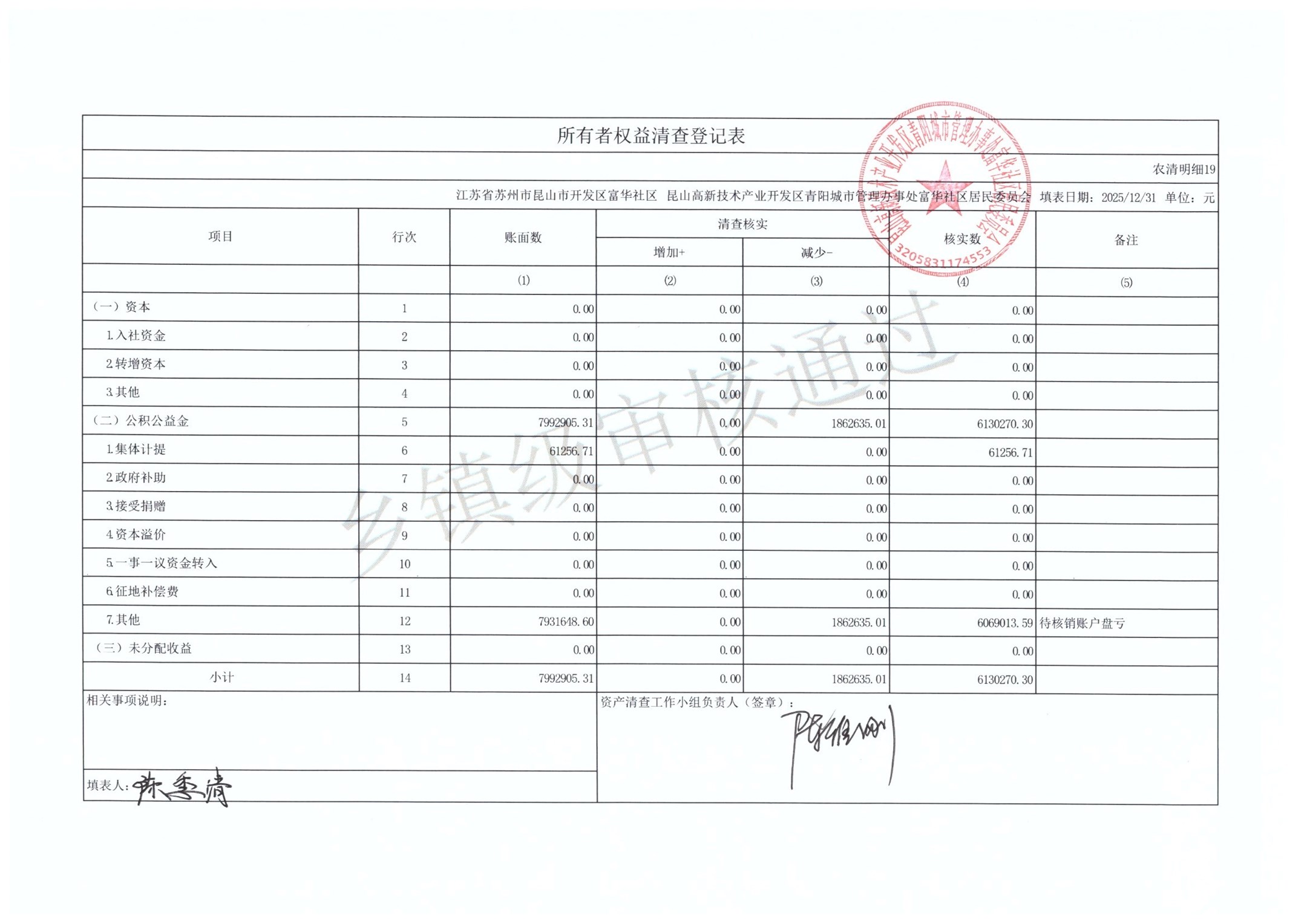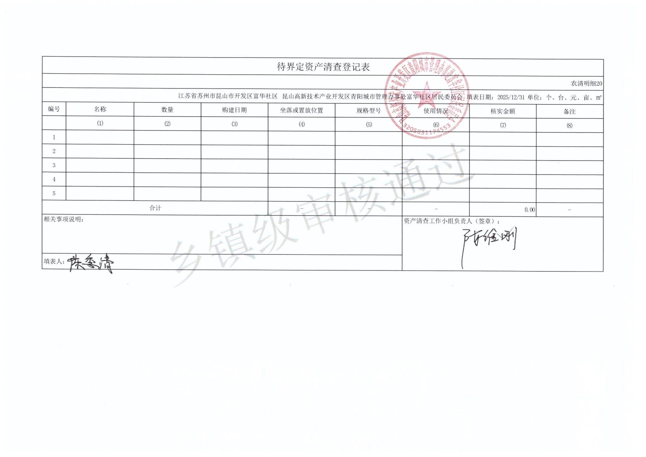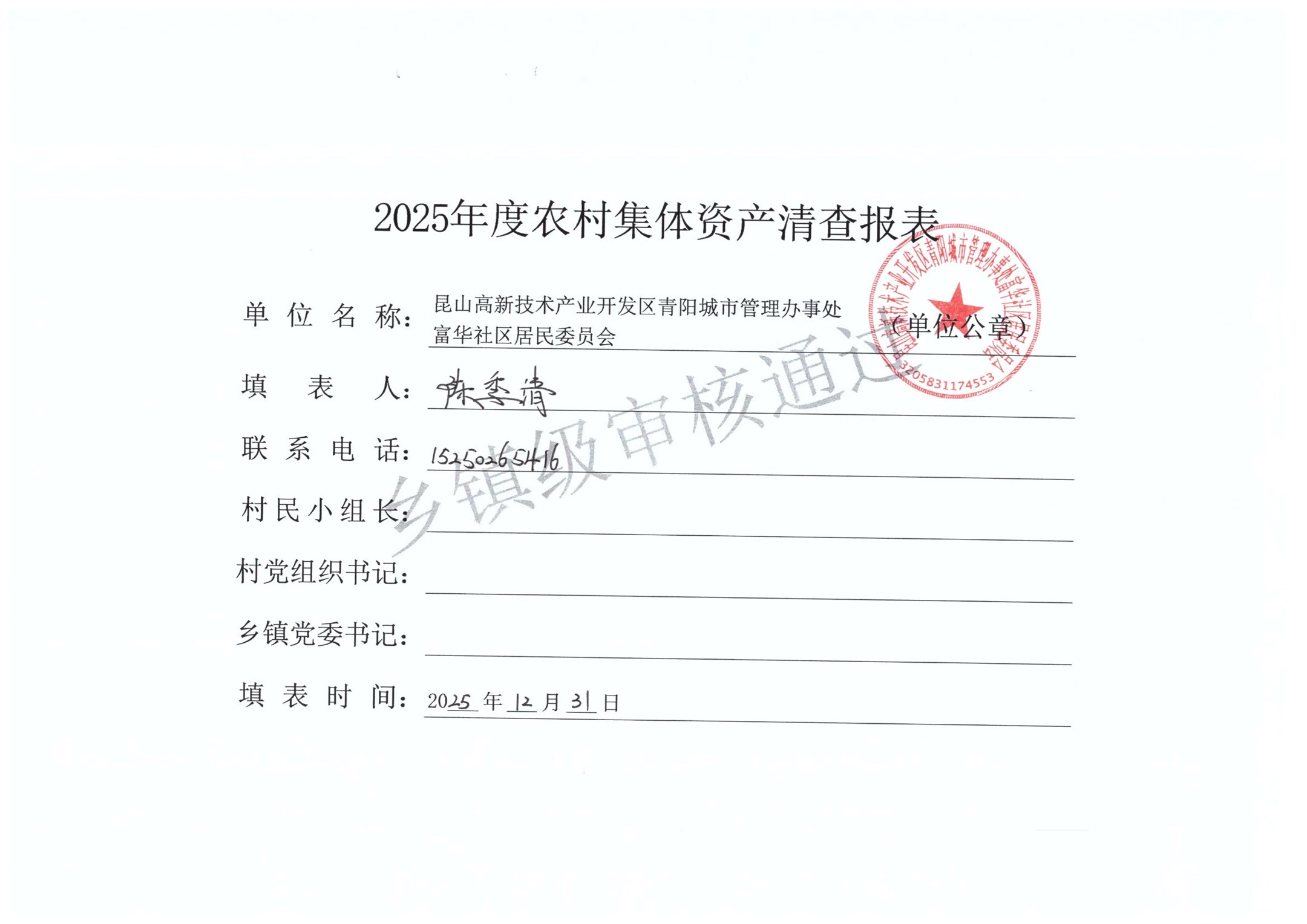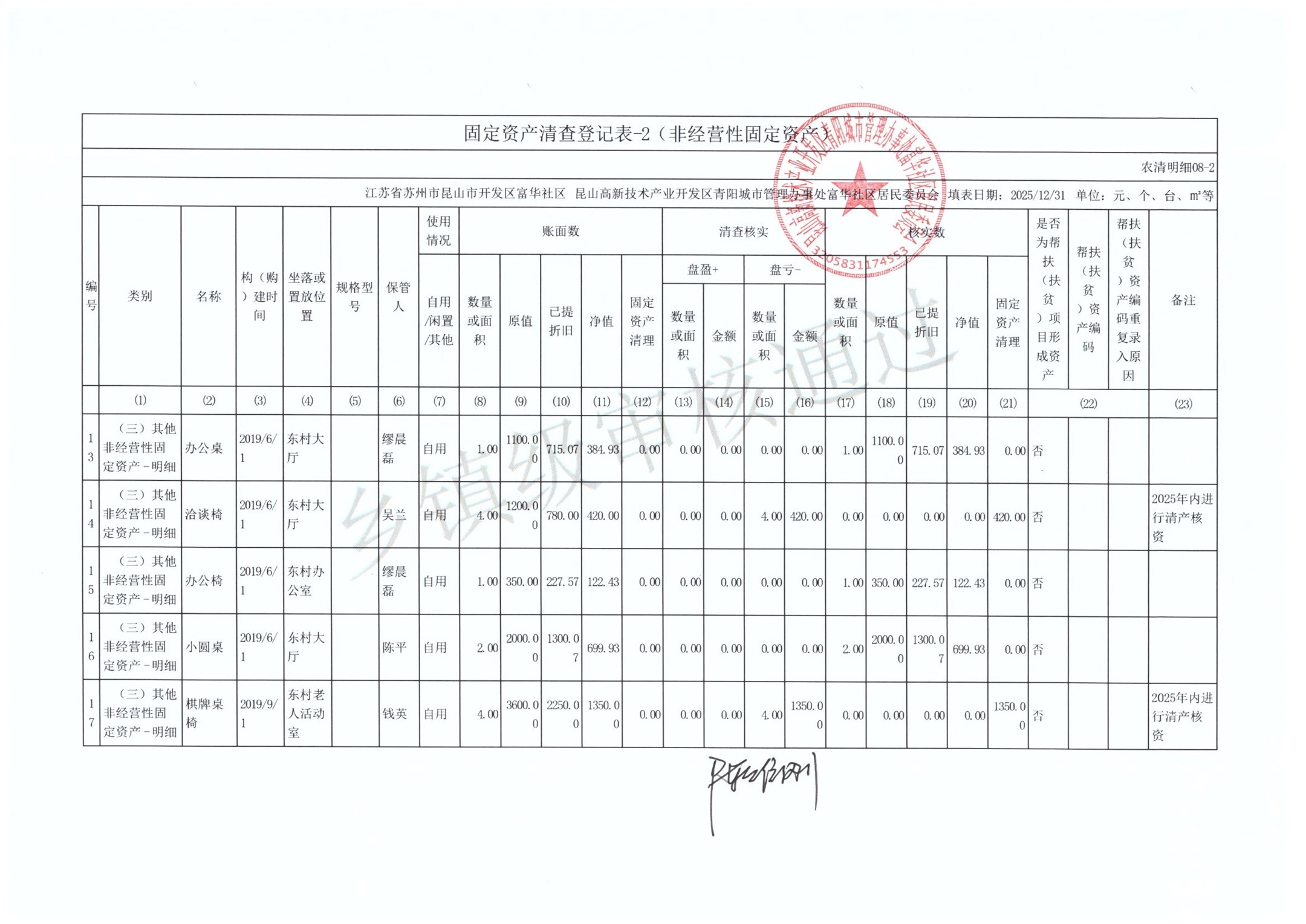 2025年富华社区居委会农村集体资产清查
