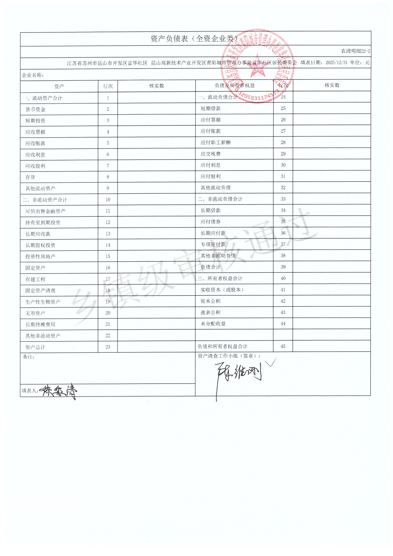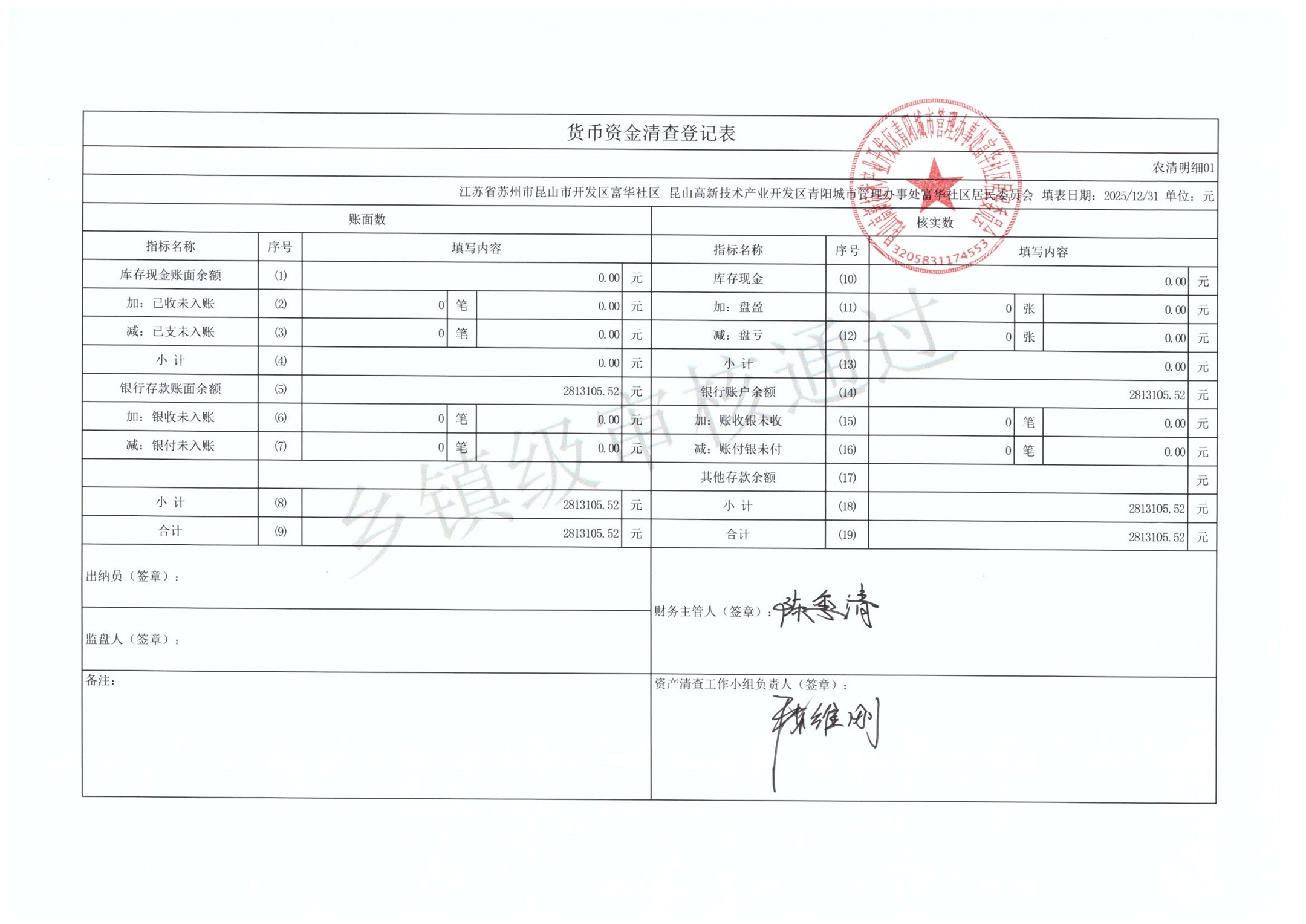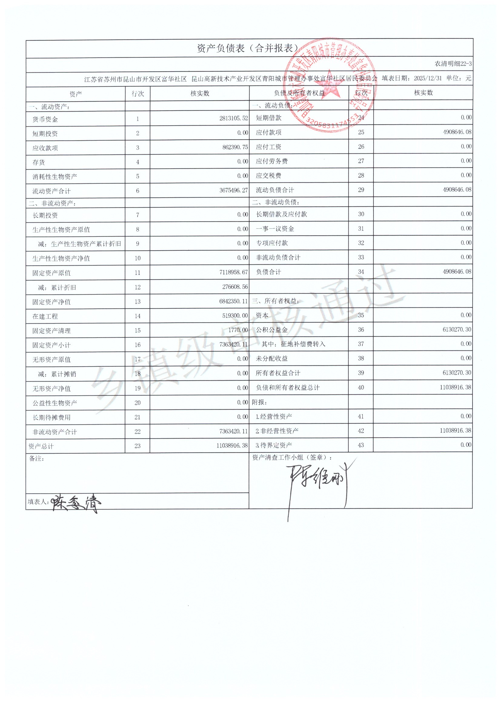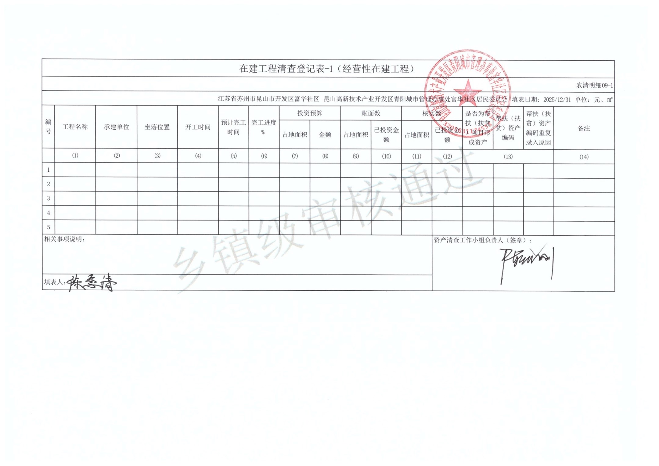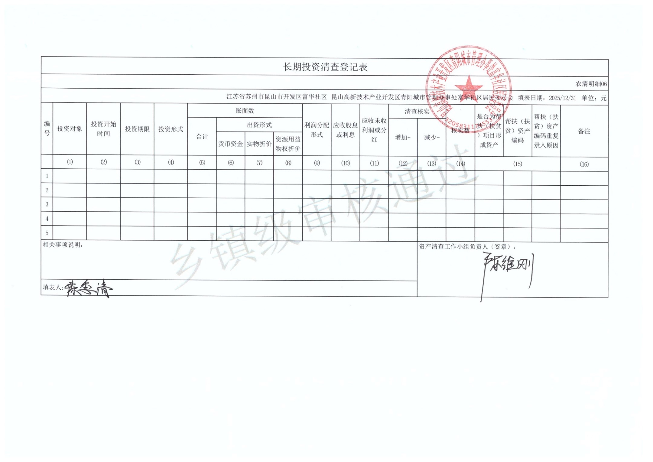 2025年富华社区居委会农村集体资产清查