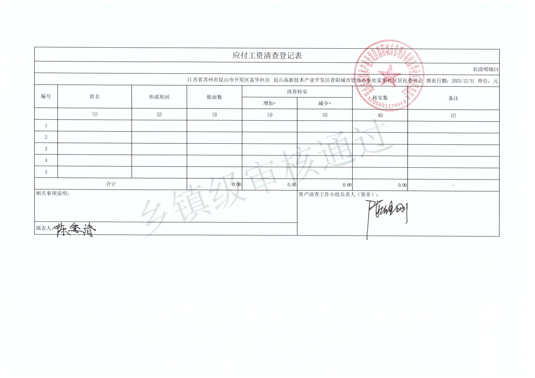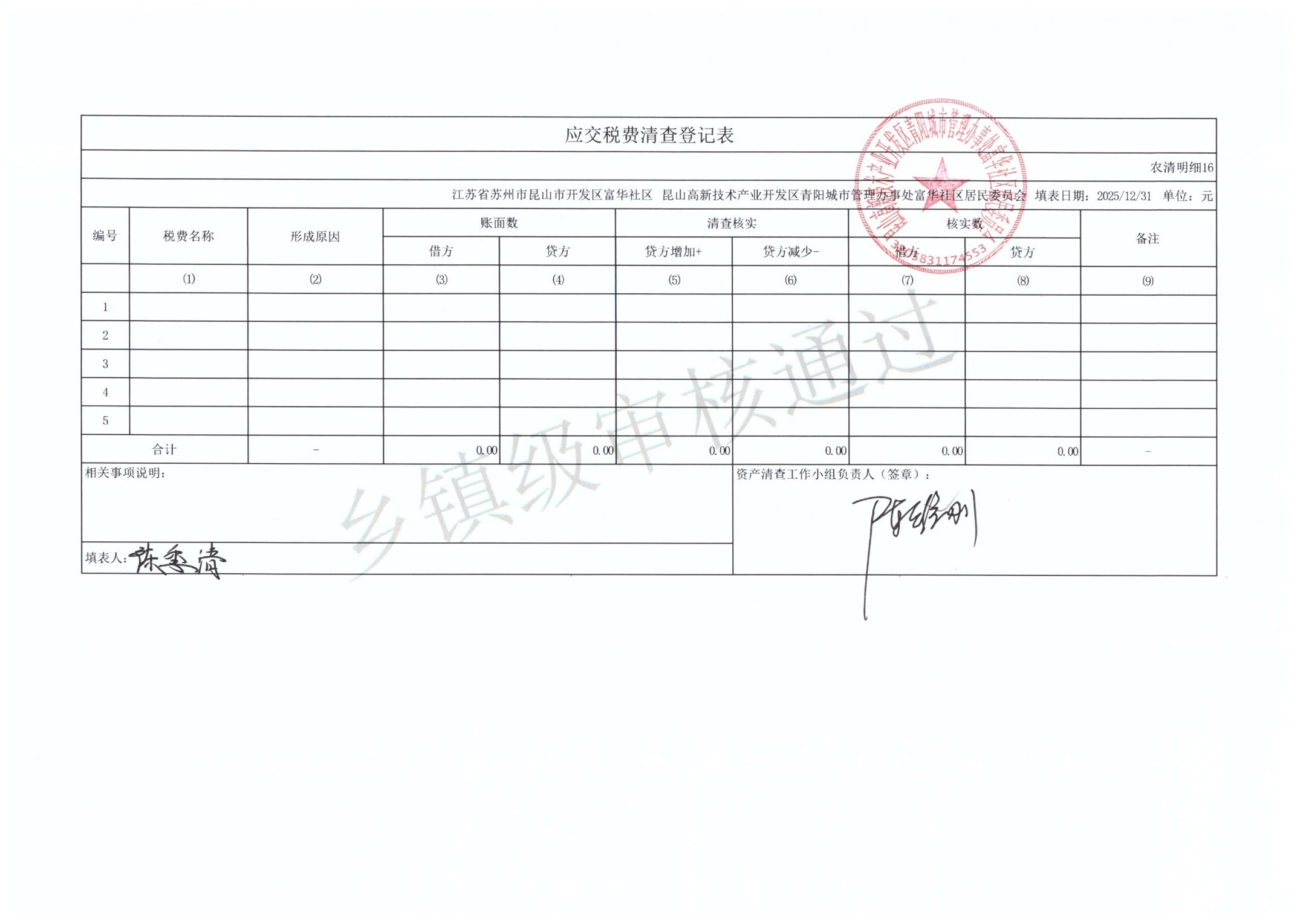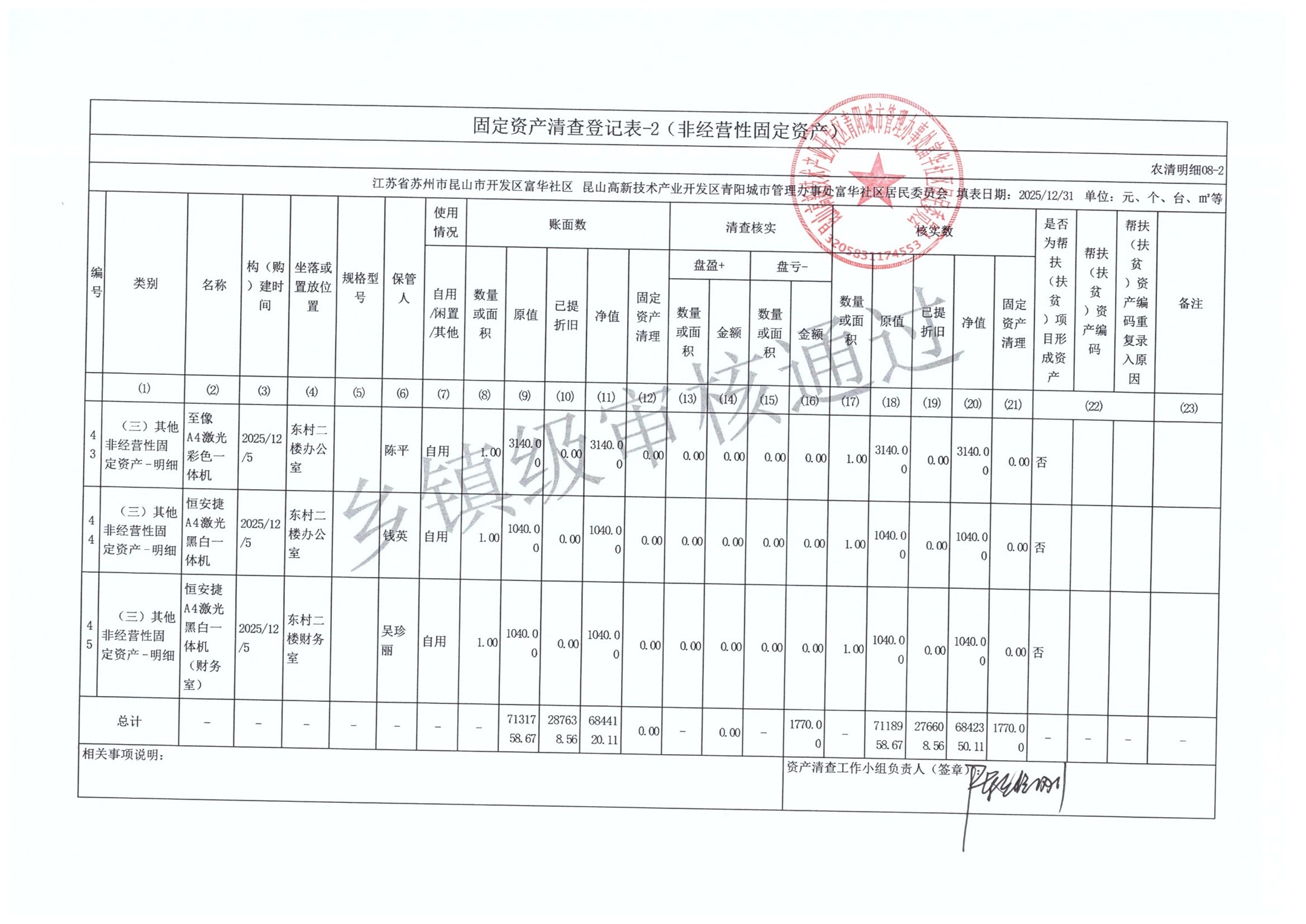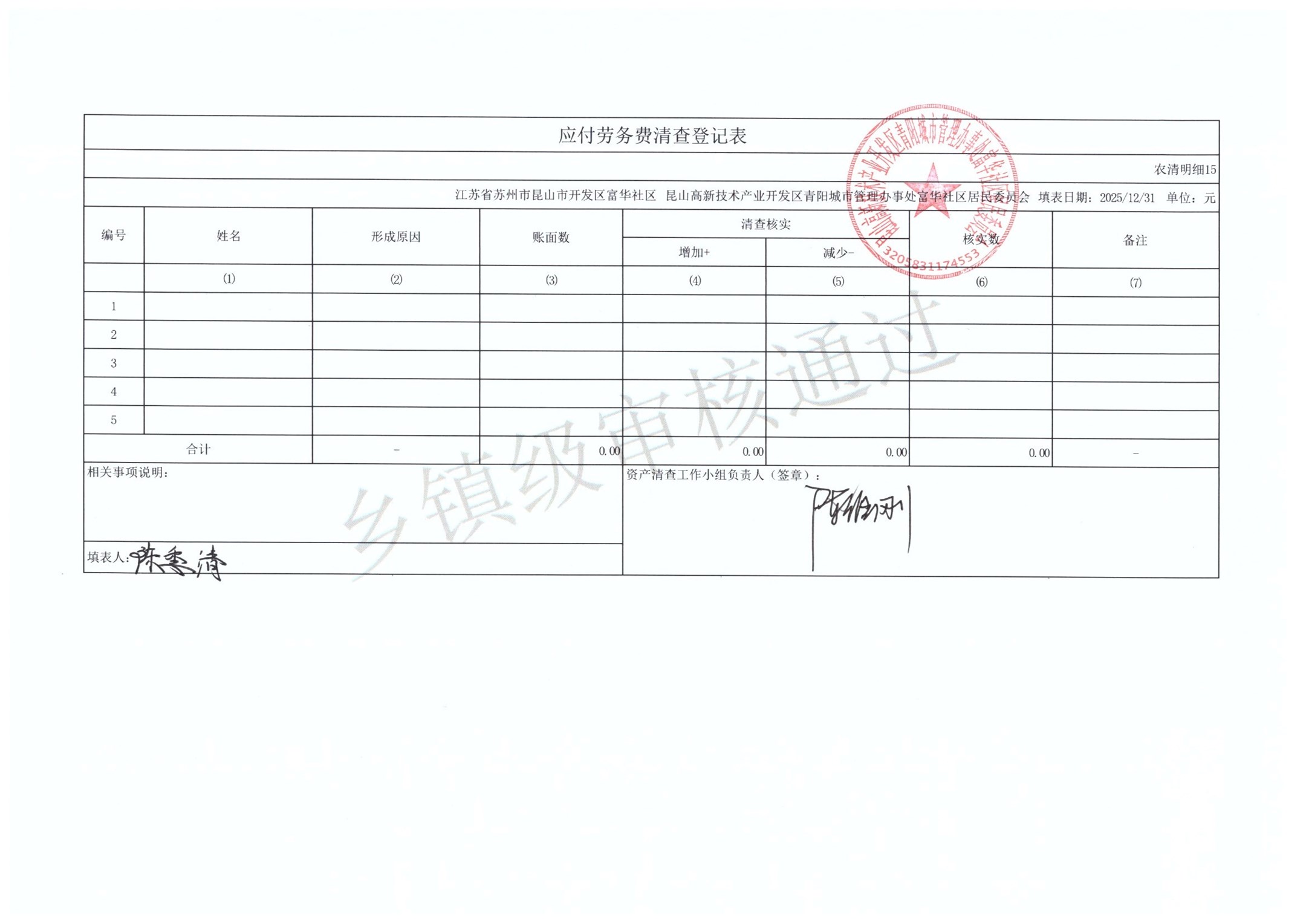2025年富华社区居委会农村集体资产清查