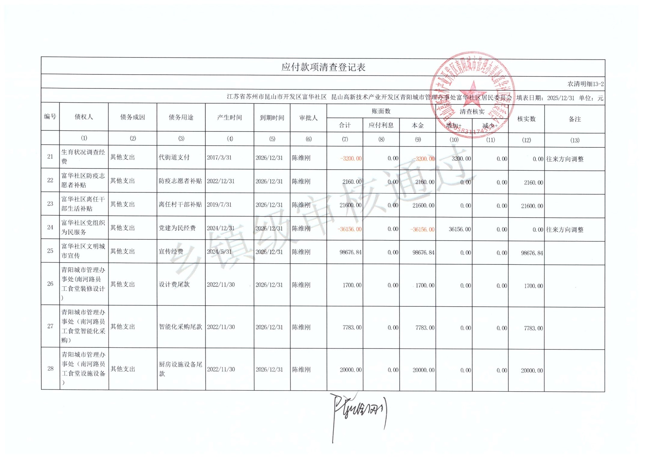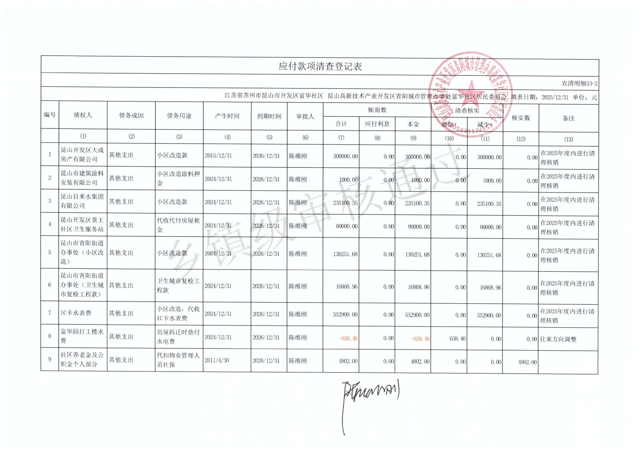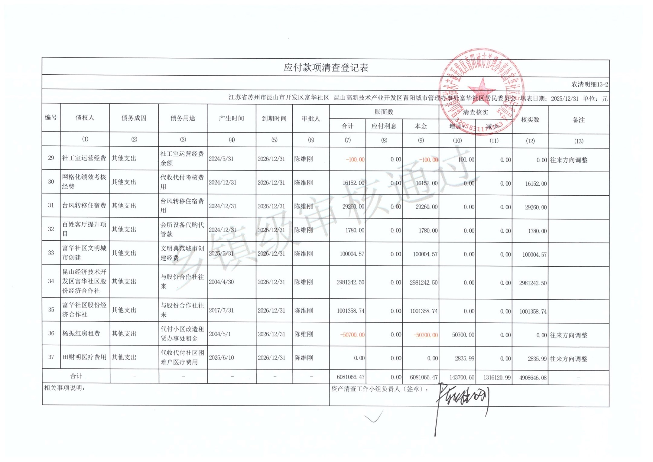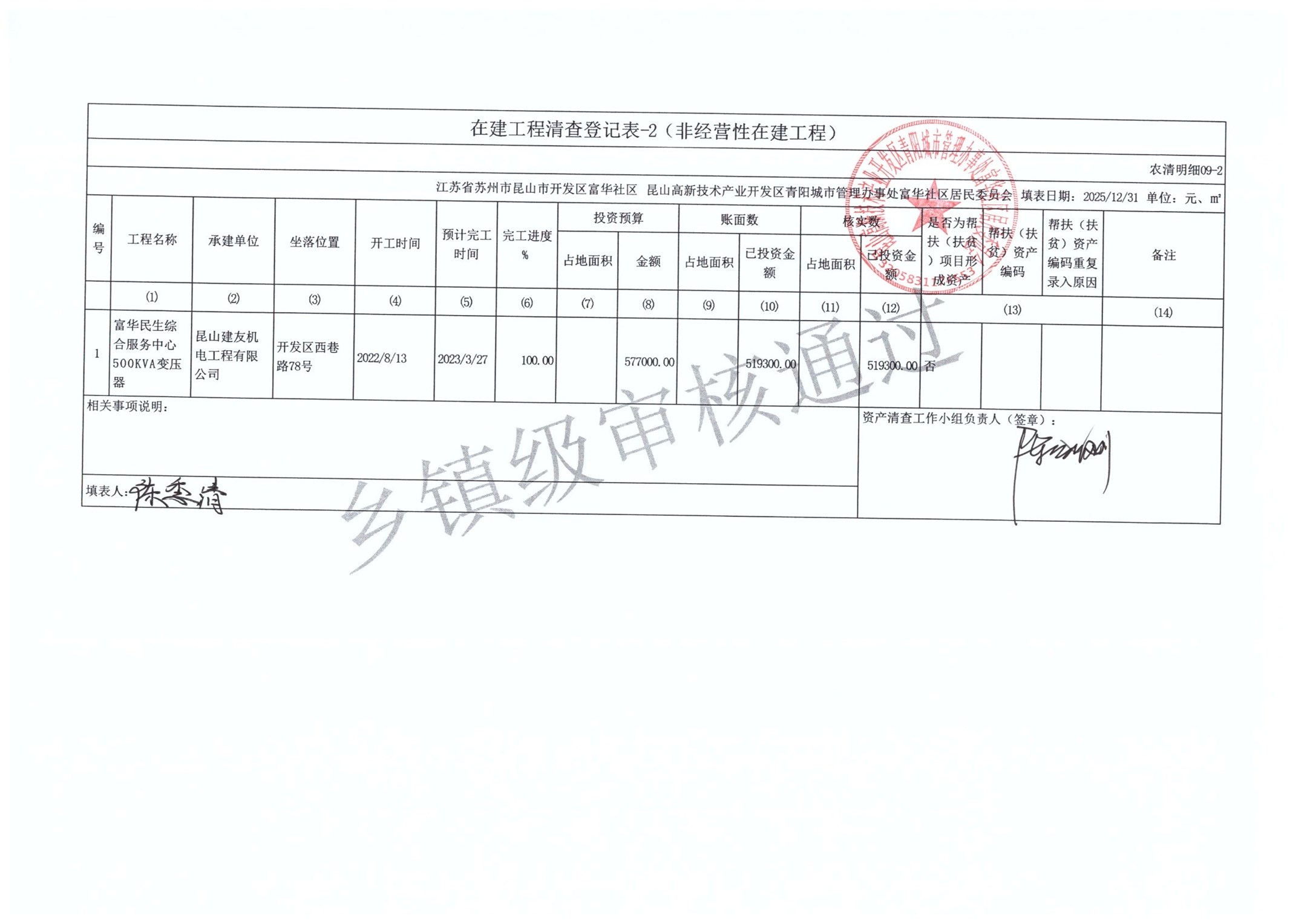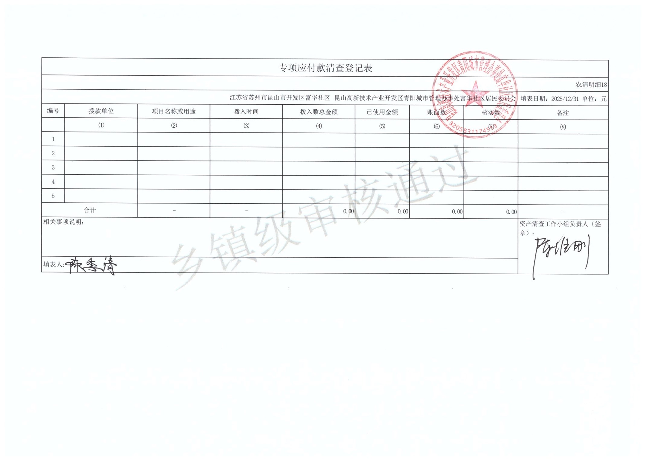 2025年富华社区居委会农村集体资产清查