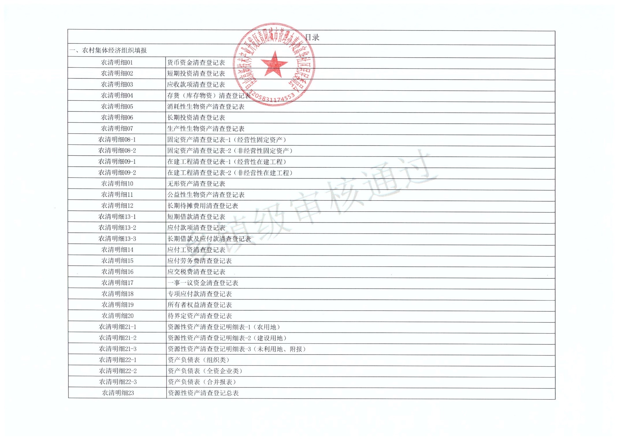 村盖章事项名录