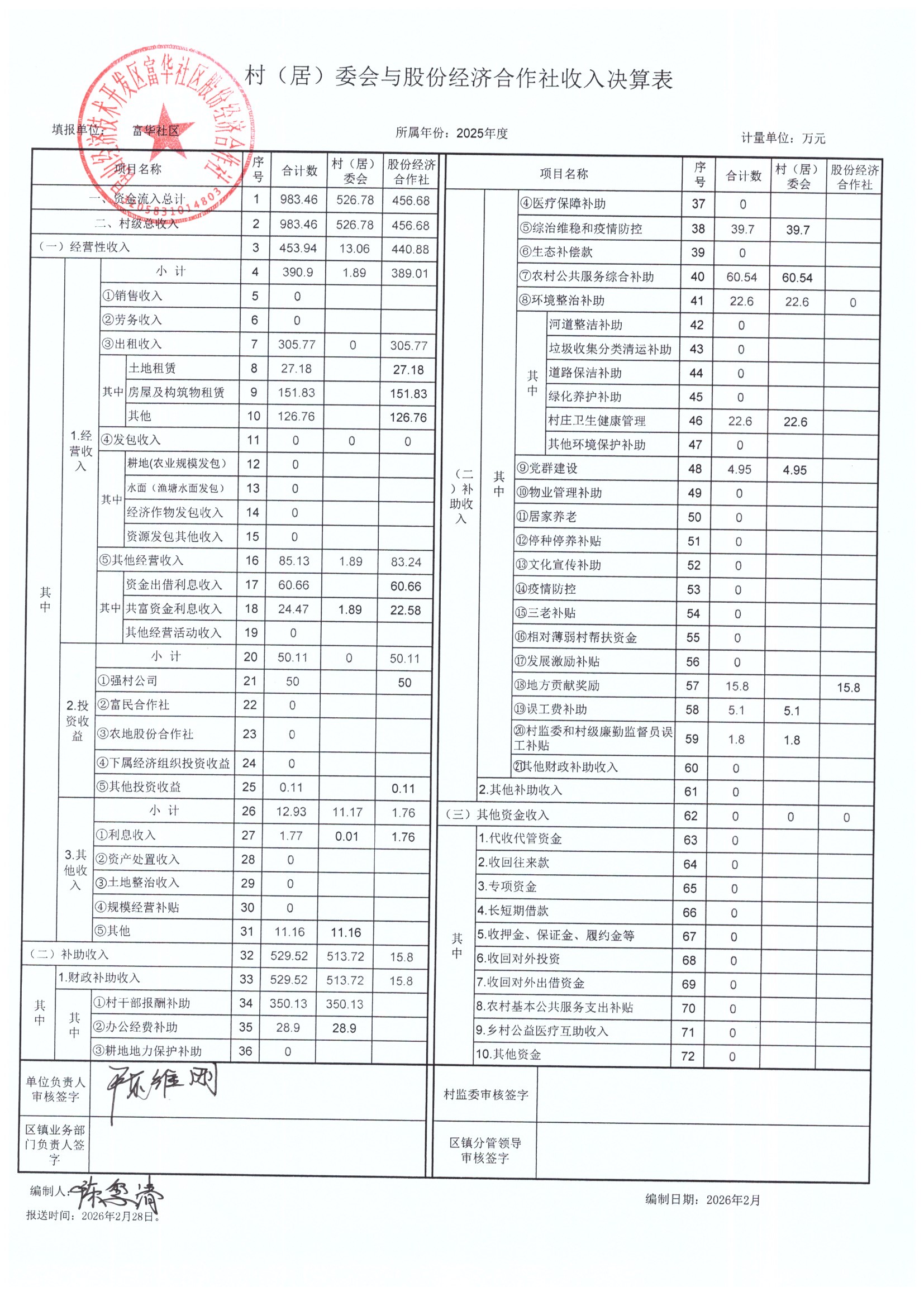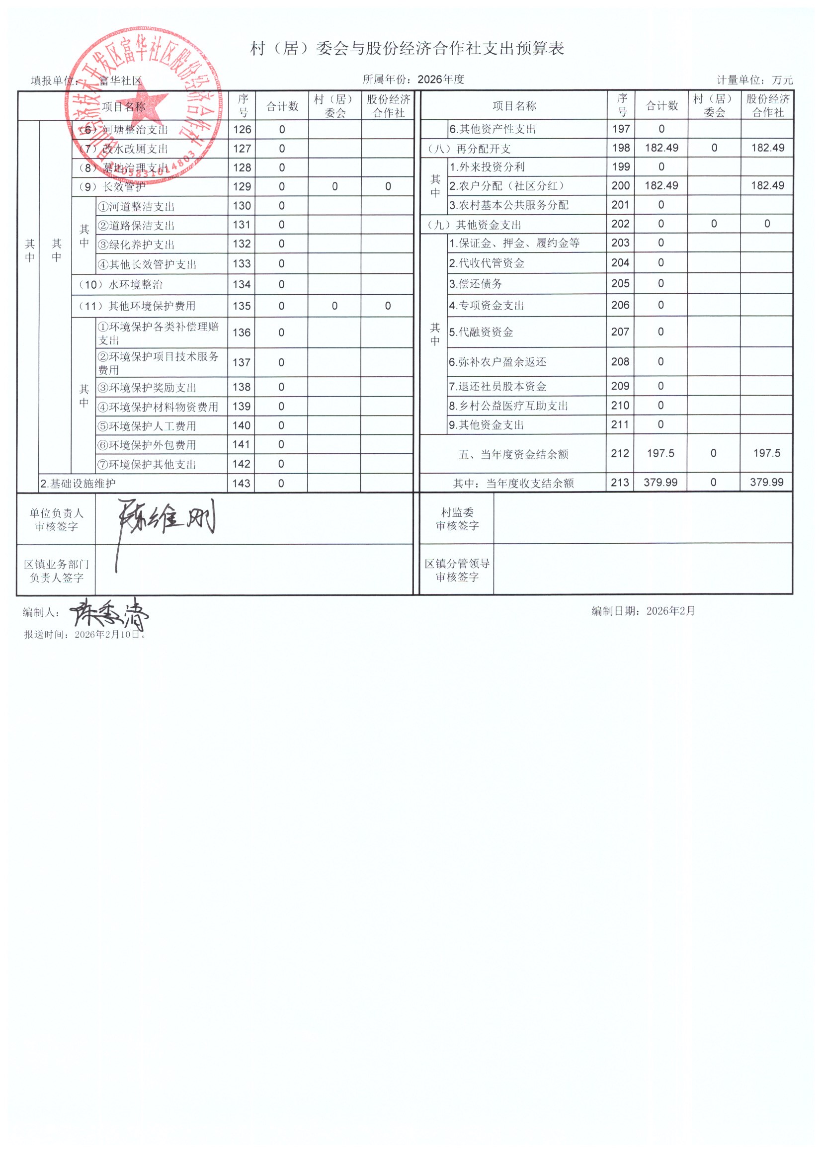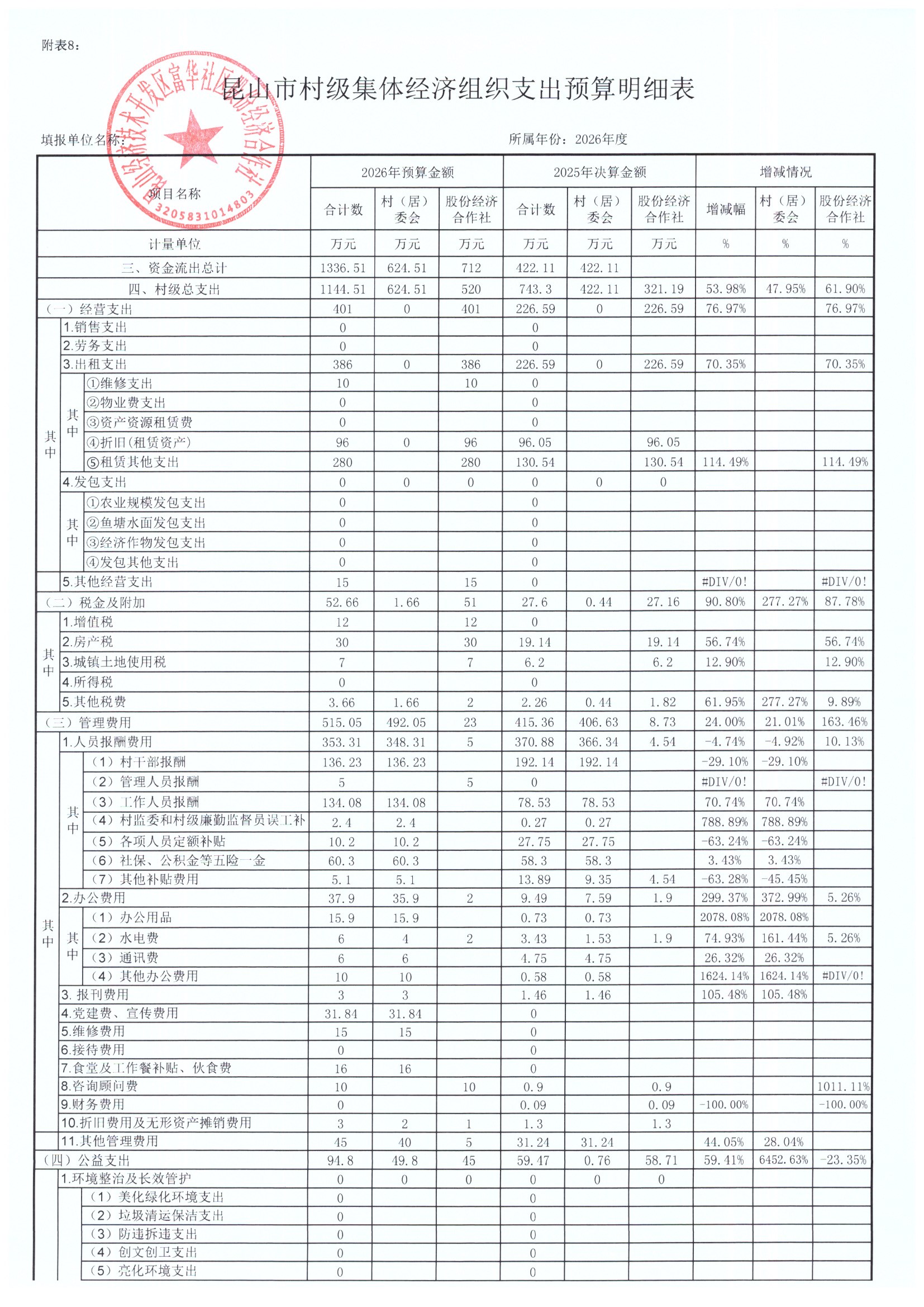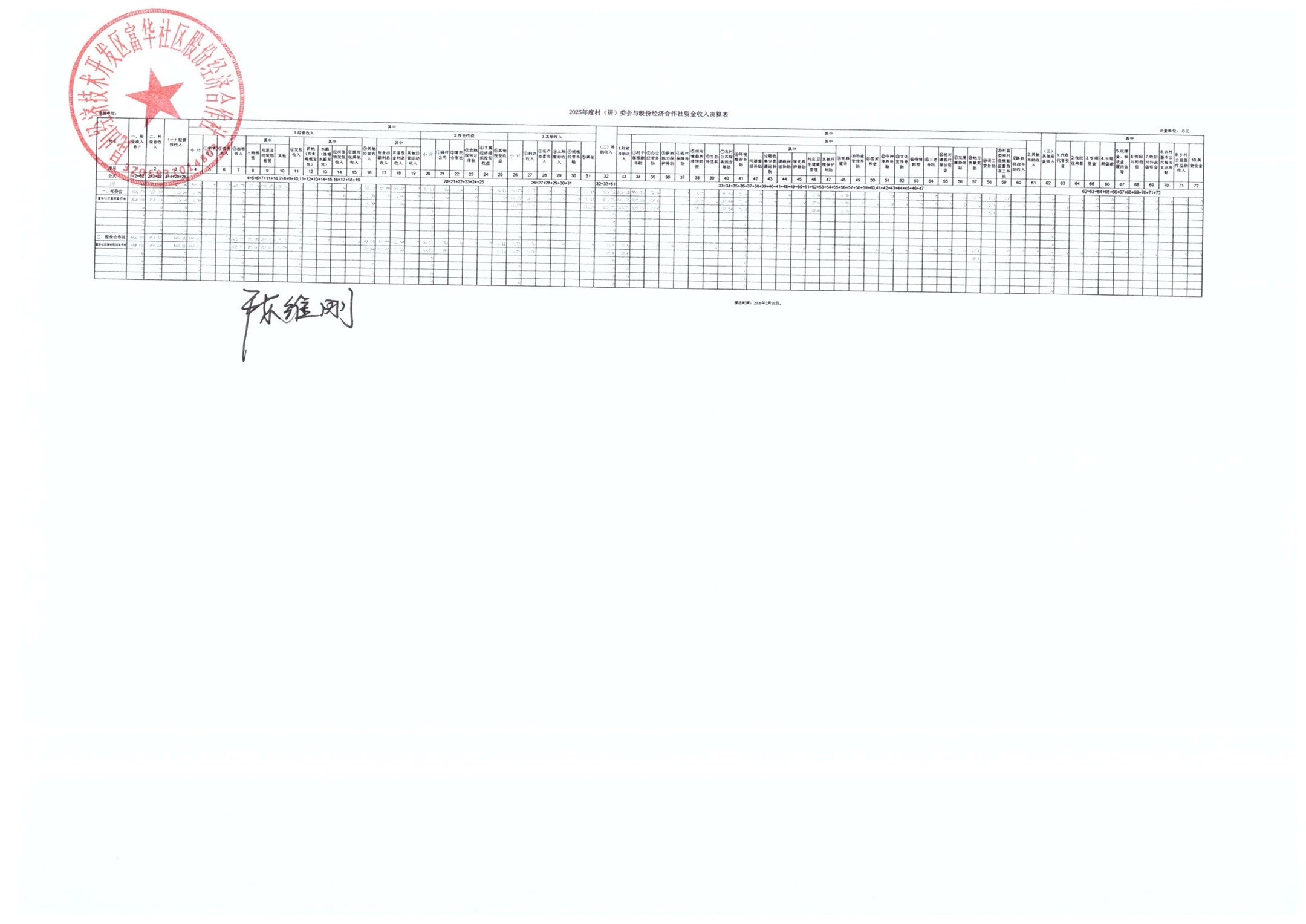 2025年居委会与股份经济合作社决算表及2026年预算表