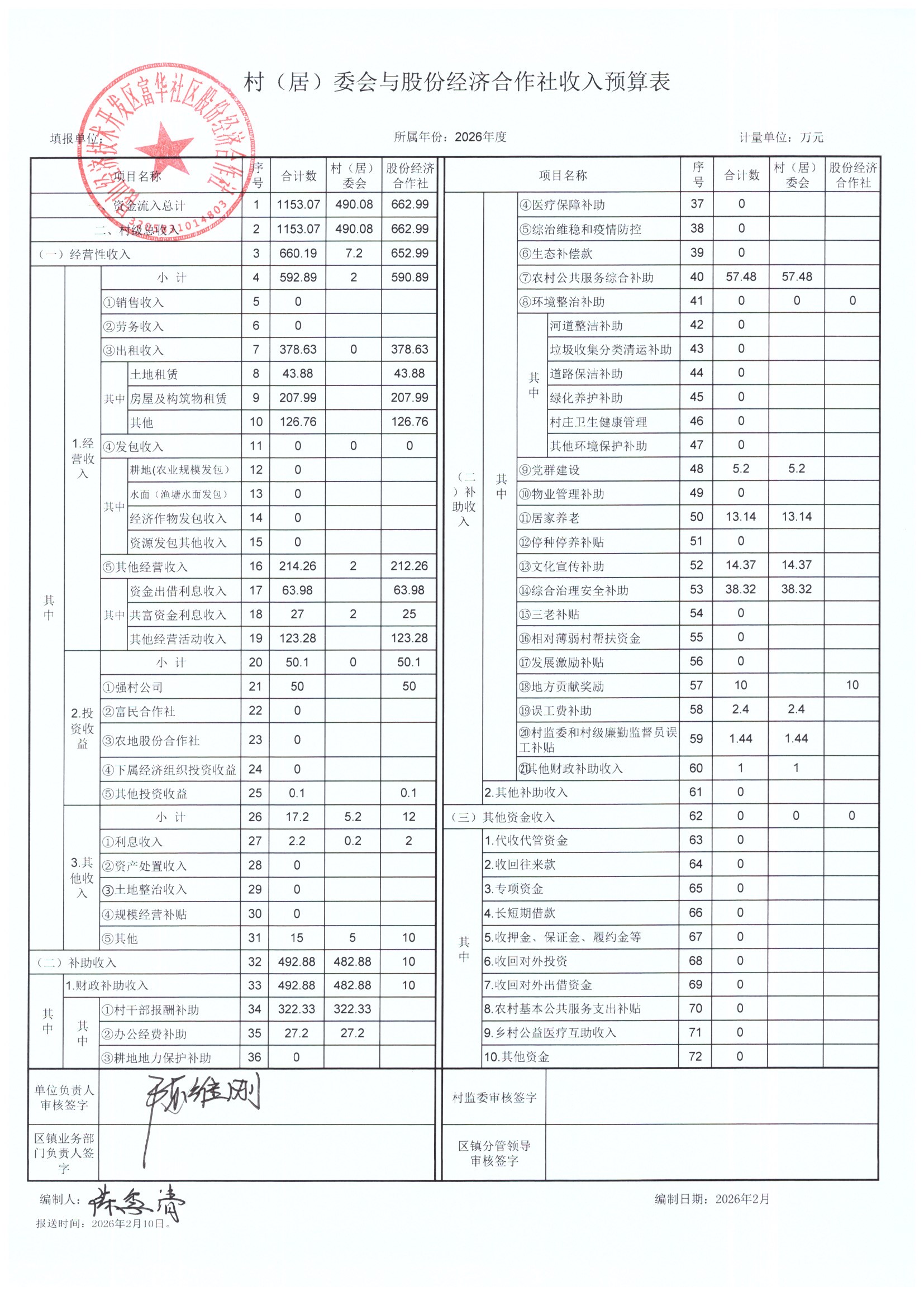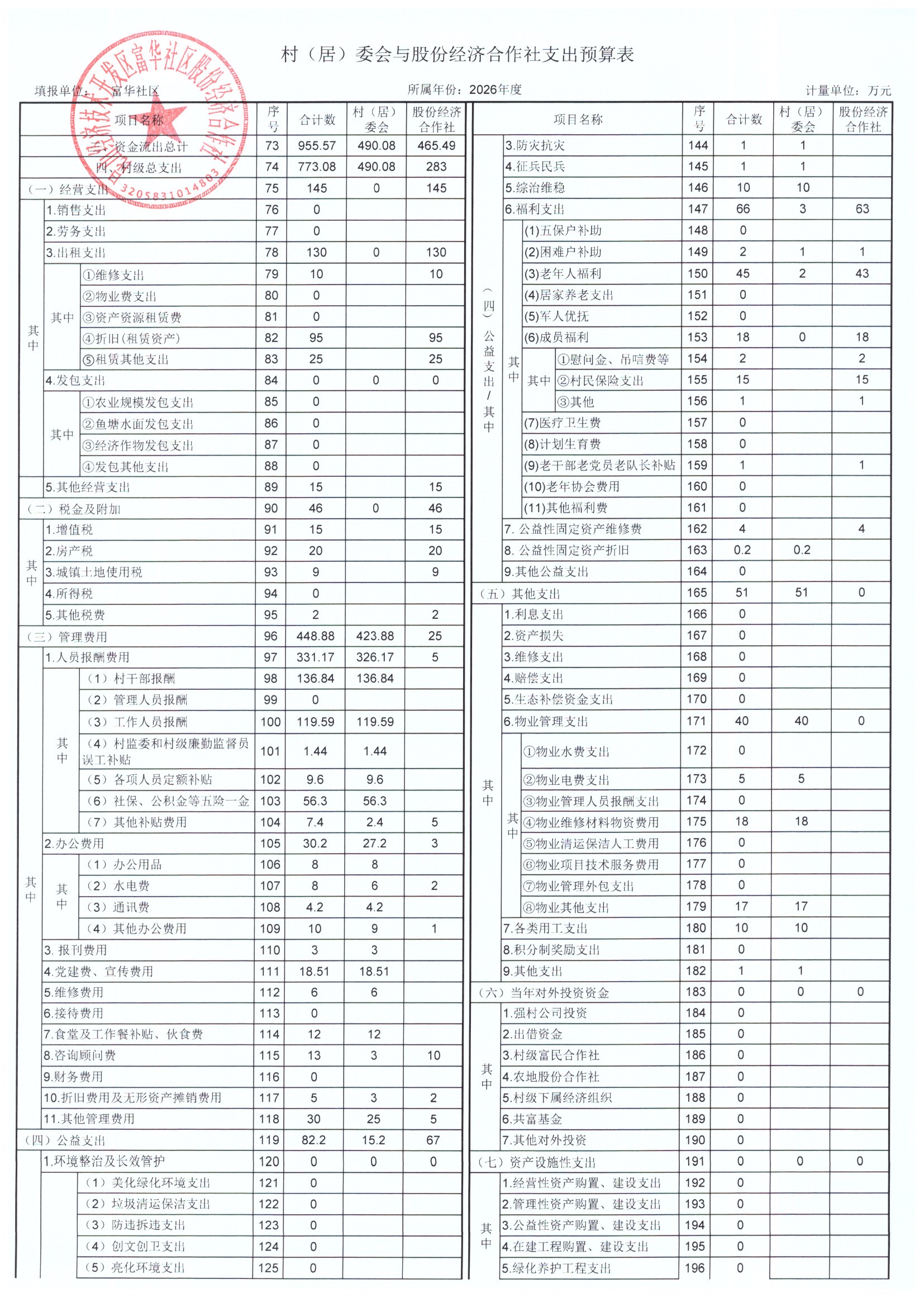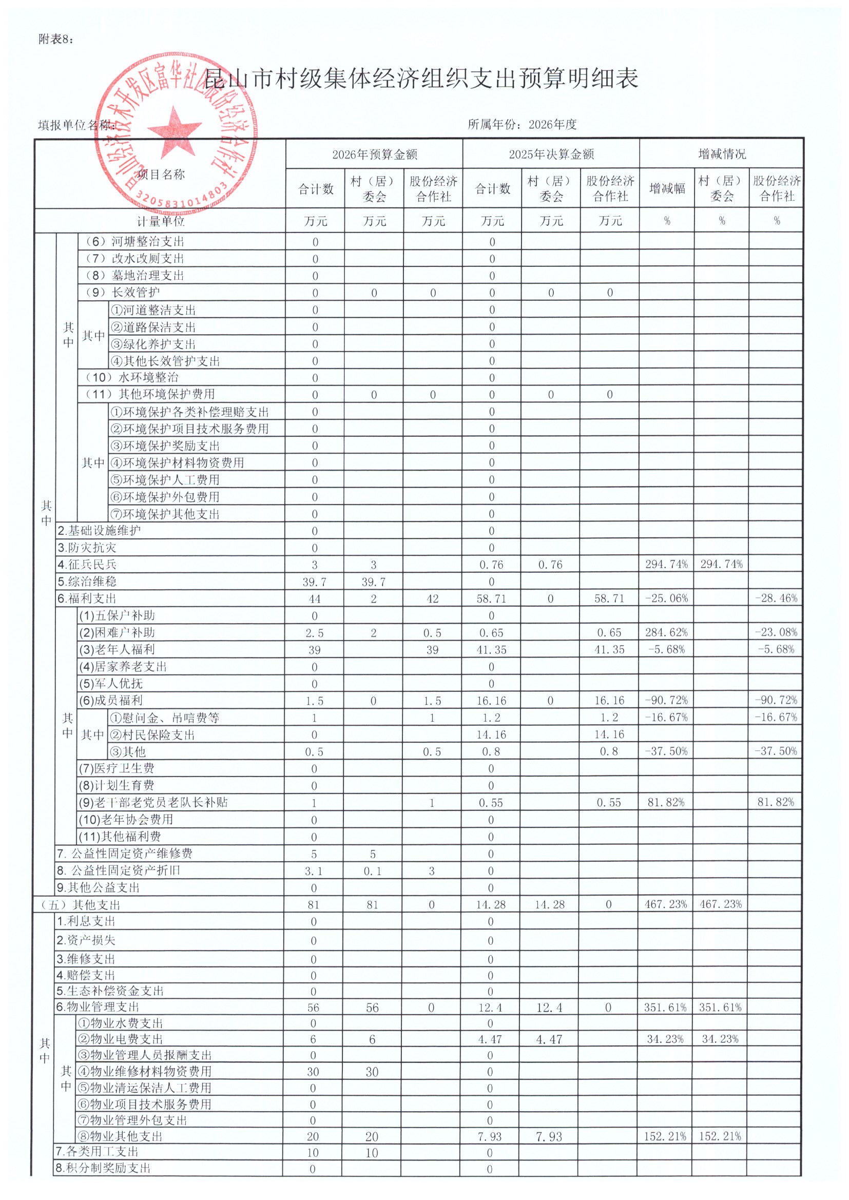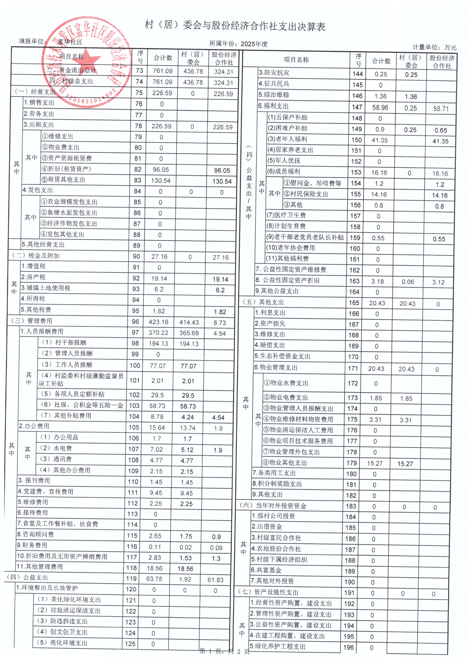 2025年居委会与股份经济合作社决算表及2026年预算表