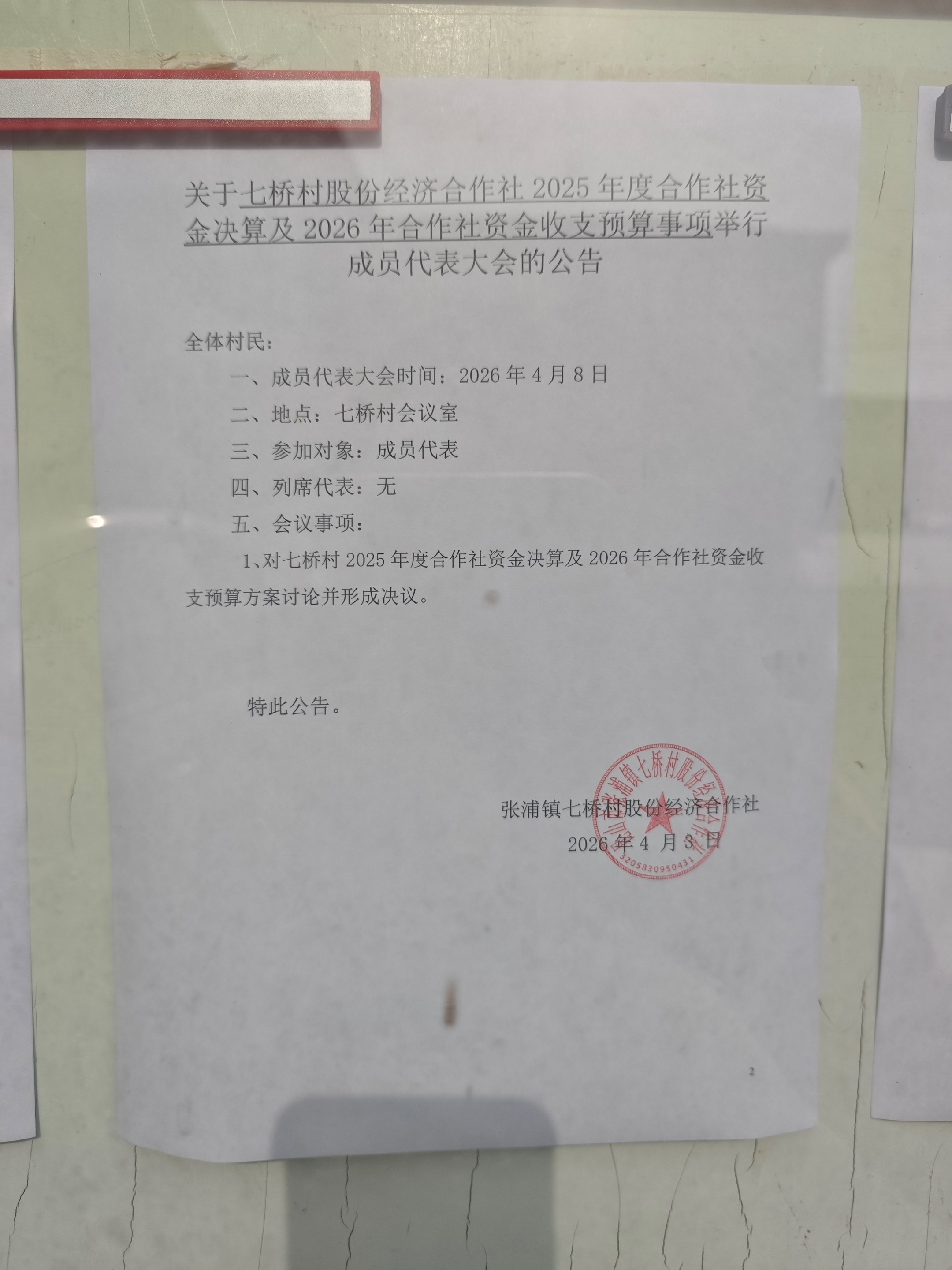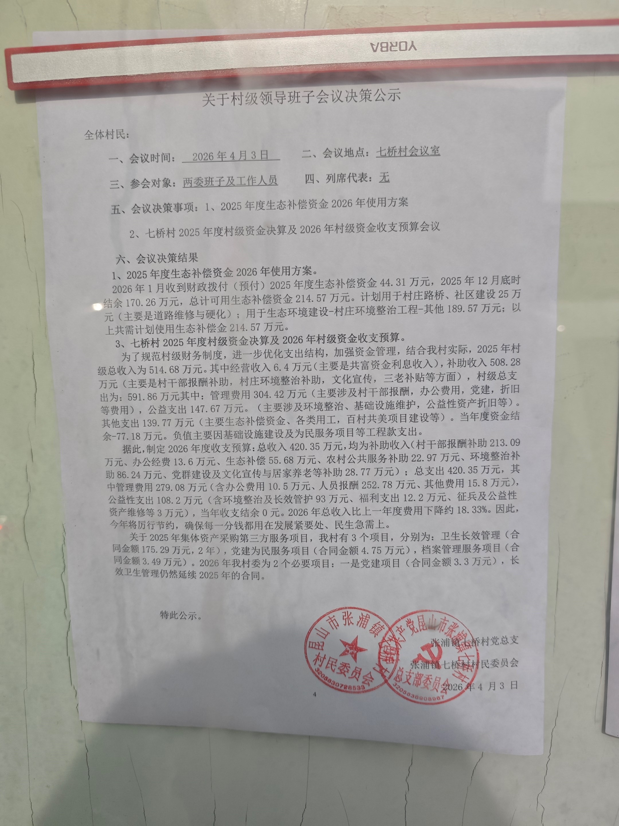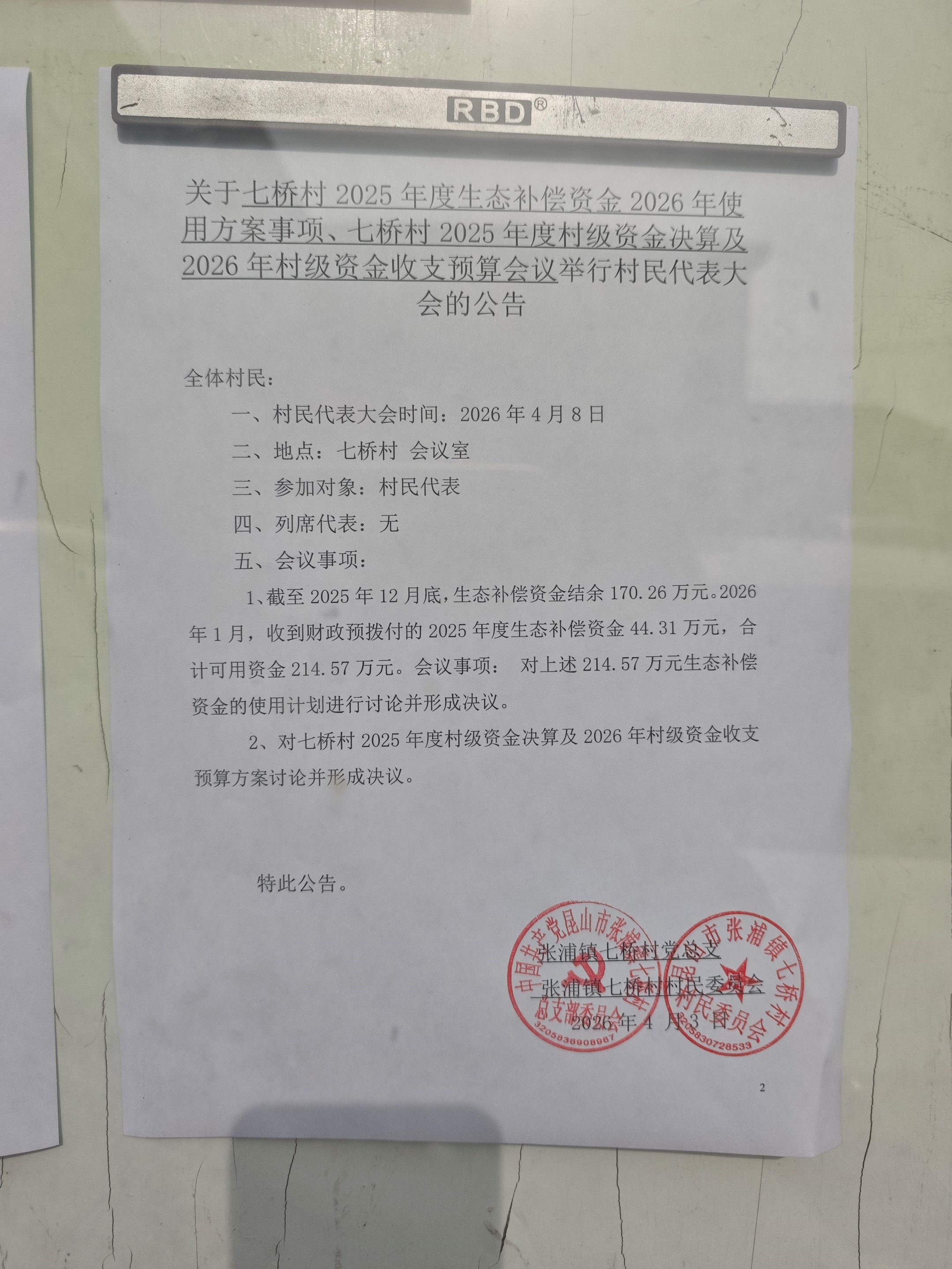 七桥村民委员会生态补2025年决算和2026年预算及股份经济合作社预决算会议决议