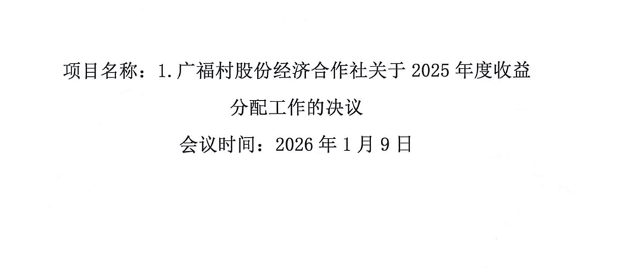 广福村股份经济合作社关于2025年度收益分配工作的决议事项成员(代表)大会结果公示